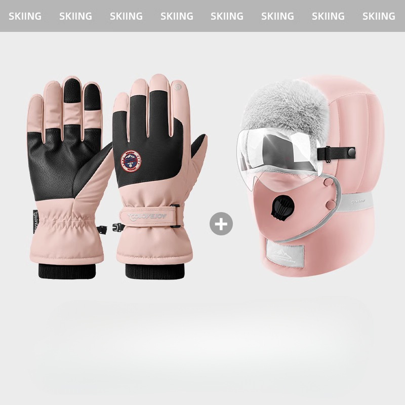 • 스키장갑/핑크+레이펑 모자/핑크(투명 고글)