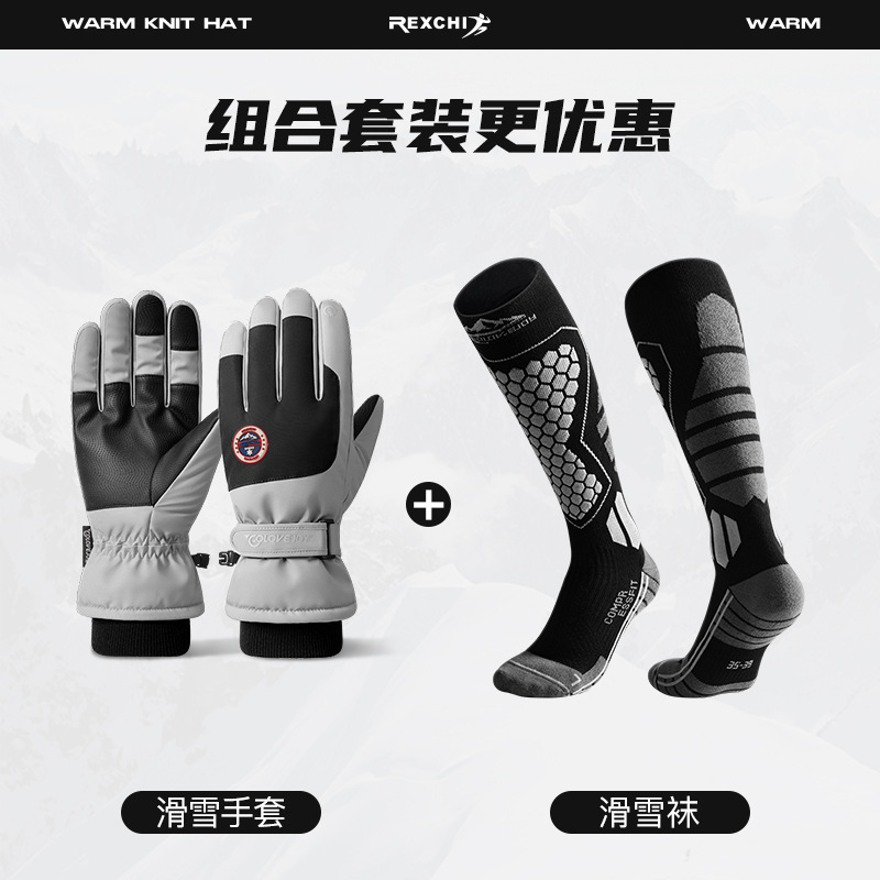 • 【여성 조합】글레이셔 그레이 L⭐스키장갑/방수가방 내장 + 블랙앤그레이⭐스키양말(35-39)