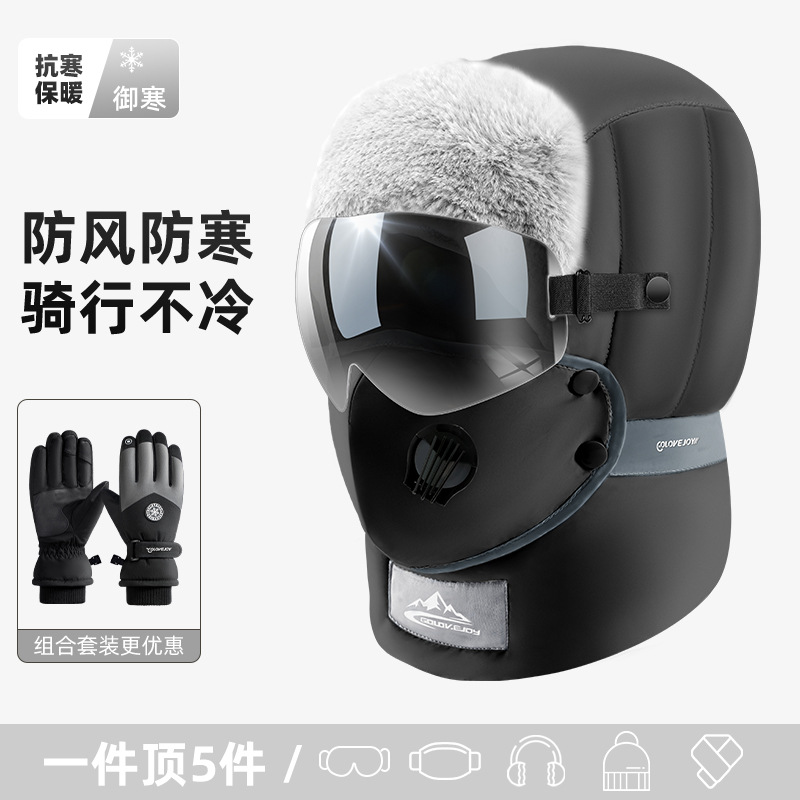 • 스키장갑/블랙+레이펑 모자/블랙(투명 고글)