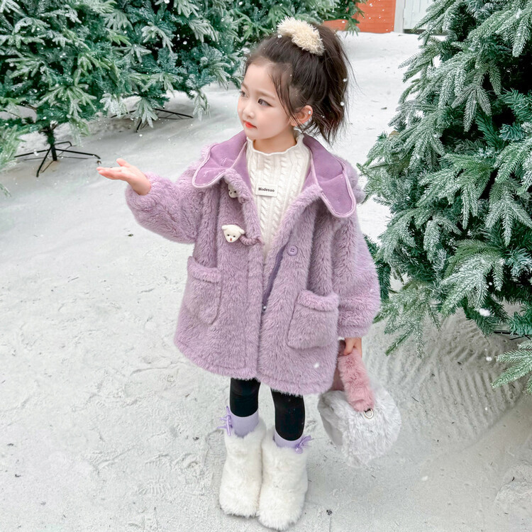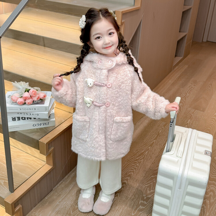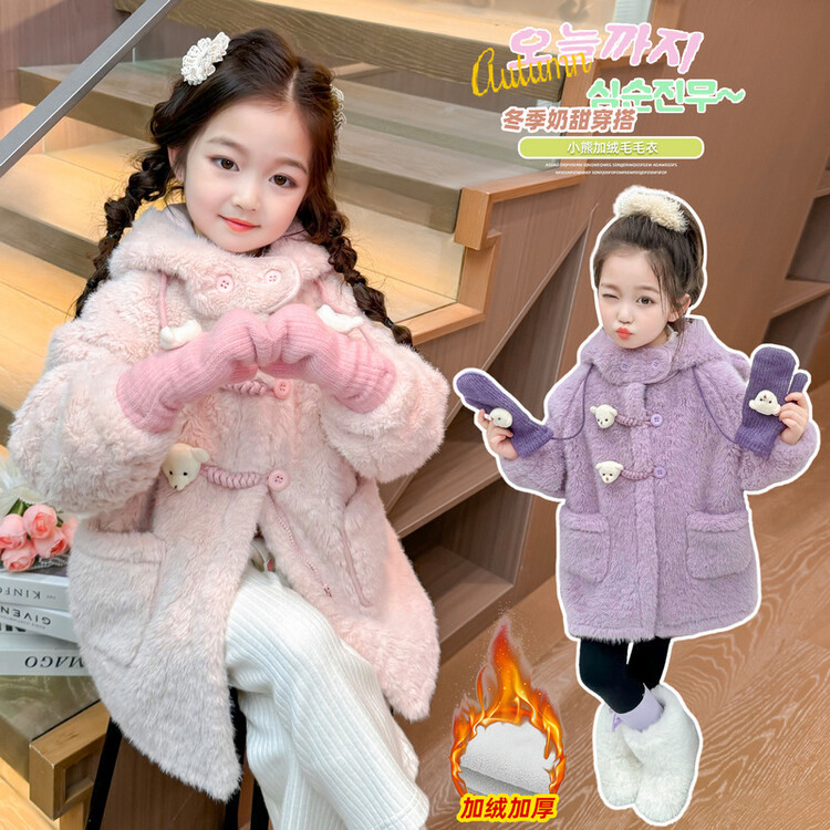 여아용 플리스 자켓 가을 겨울 모피 일체형 2025 신상 아동용 두꺼운 코트 유아 겨울옷 모피 스웨터스토어 가기