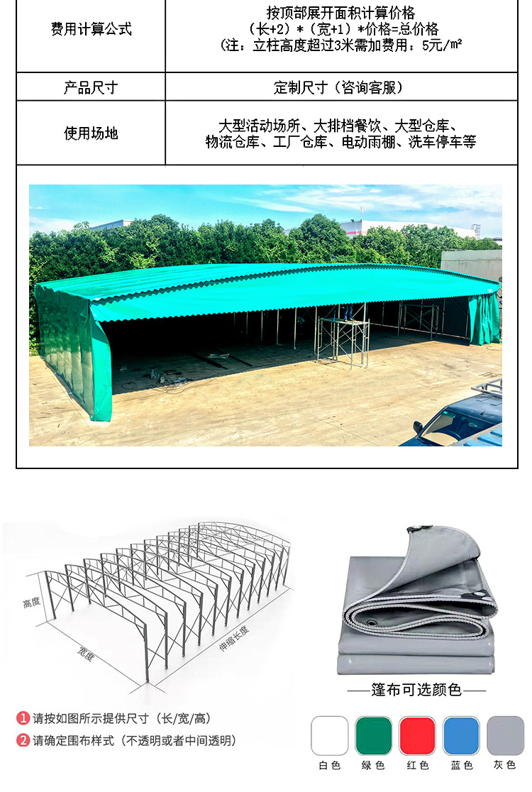 대형 야외 모바일 푸시 풀 차양 개폐식 창고 창고 바베큐 저녁 마구간 텐트스토어 가기