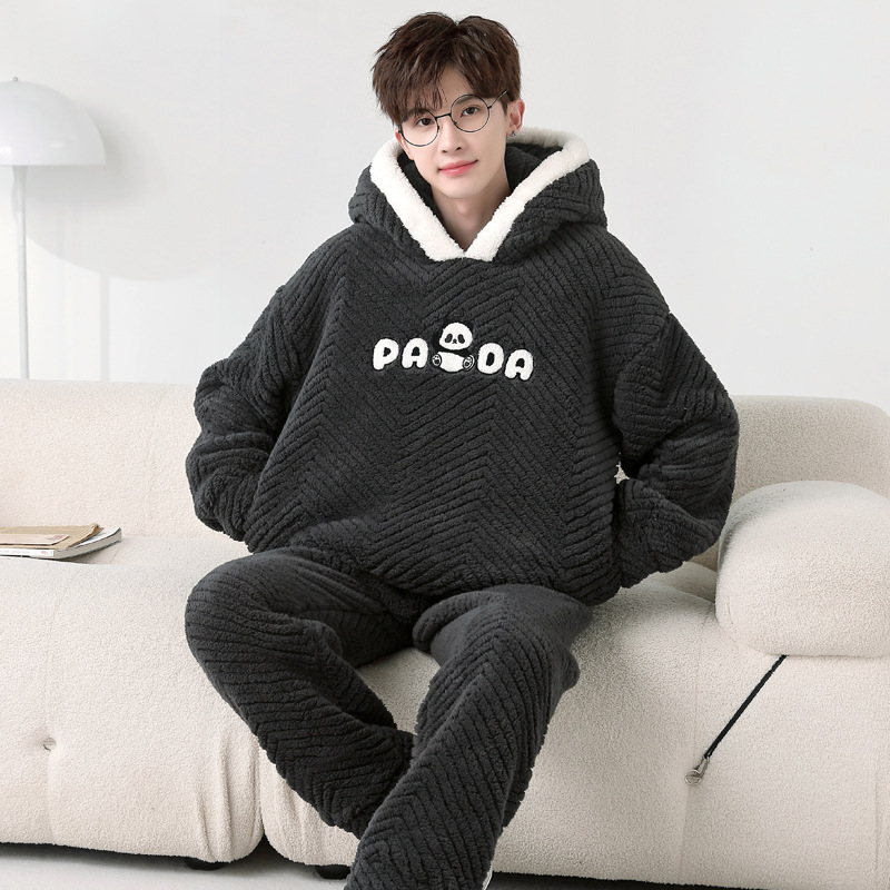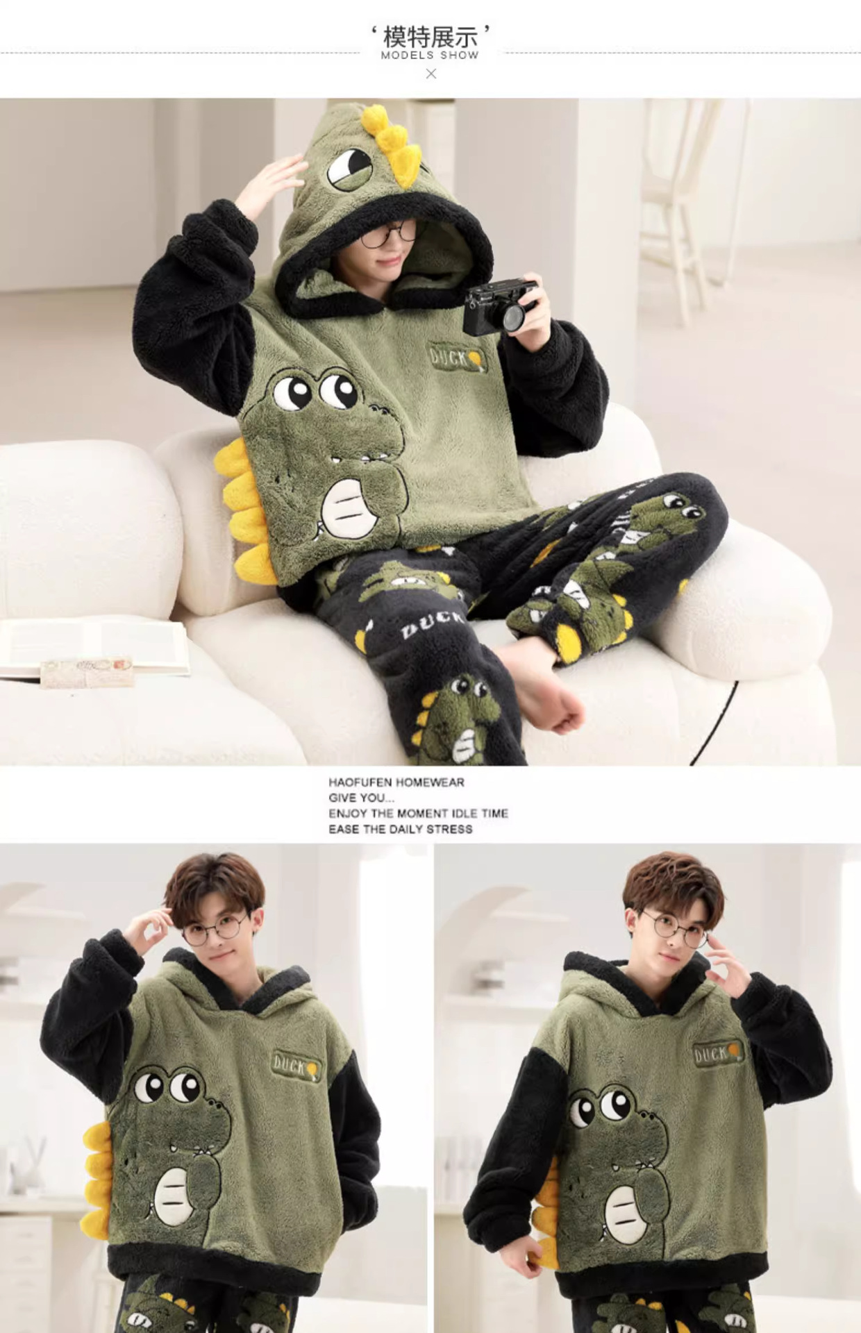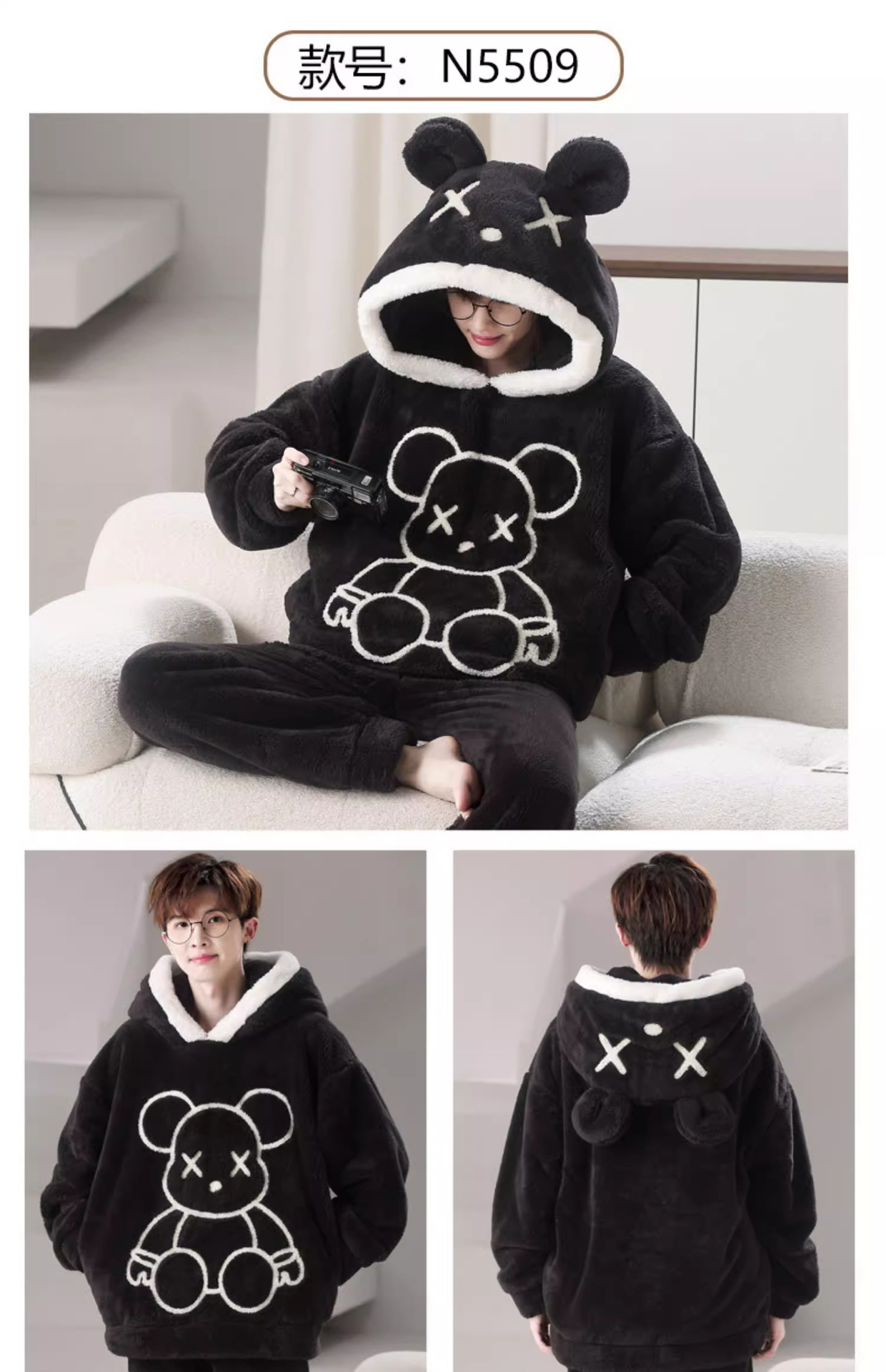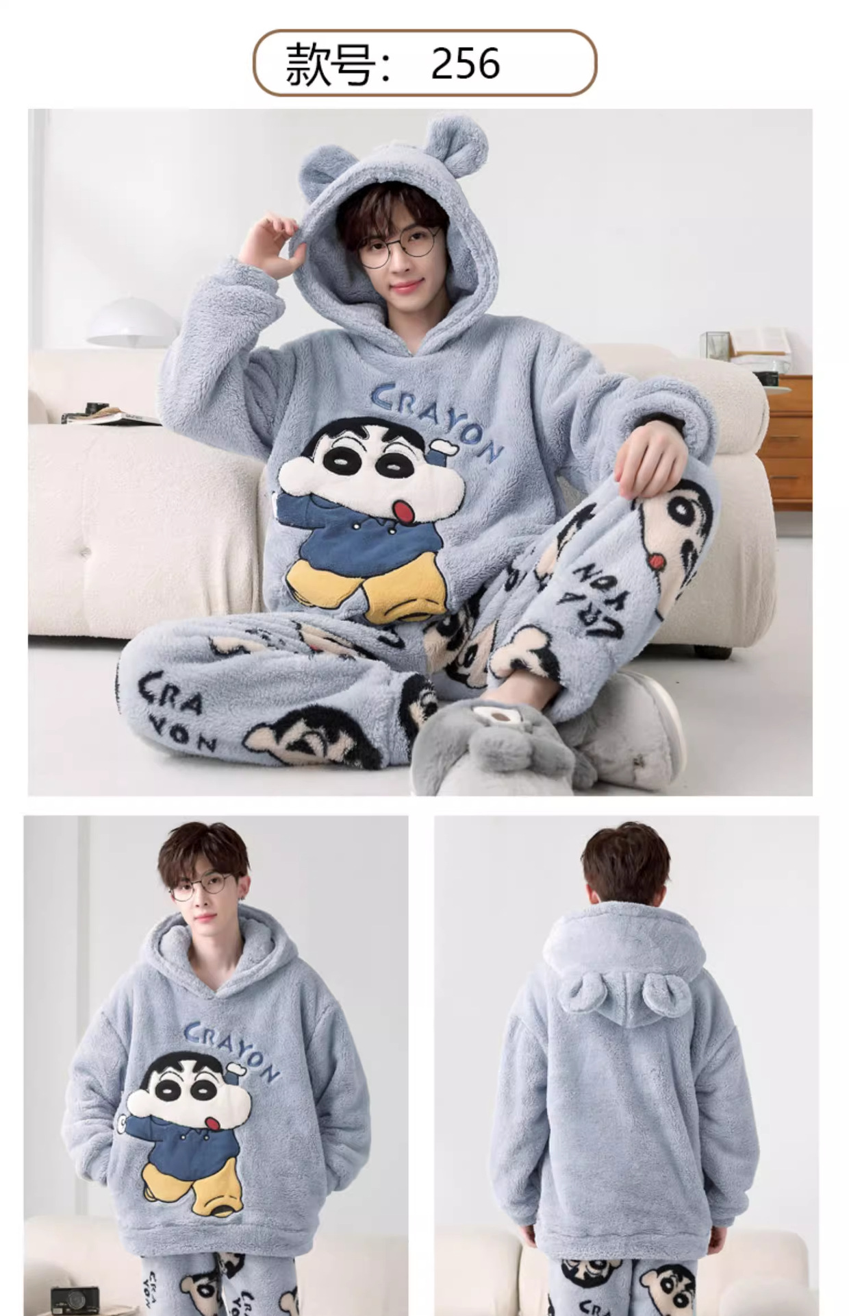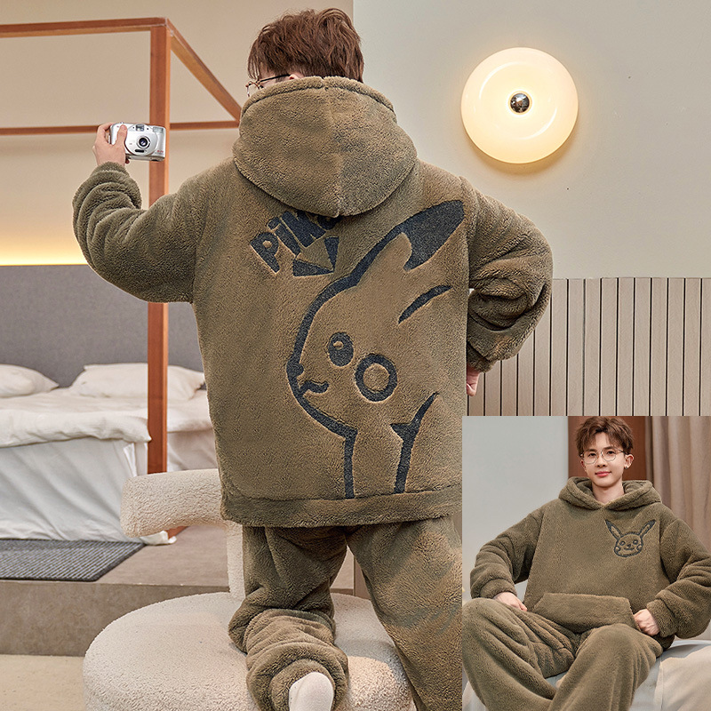 남자 잠옷 가을과 겨울 겨울 산호 양털 두꺼운 기모 플란넬 만화 집 옷 남자의 겨울 세트