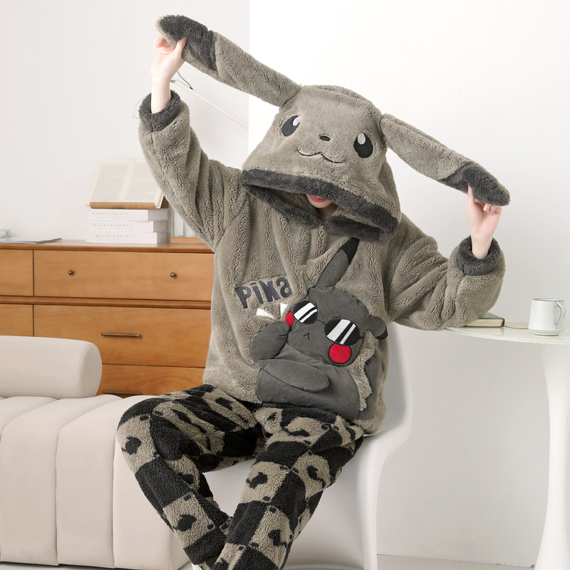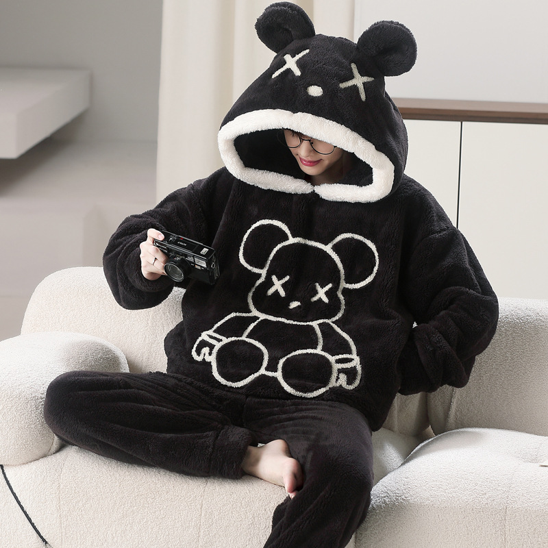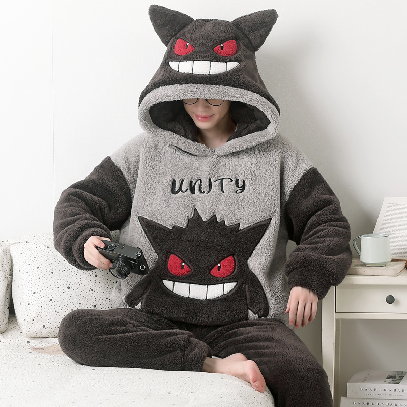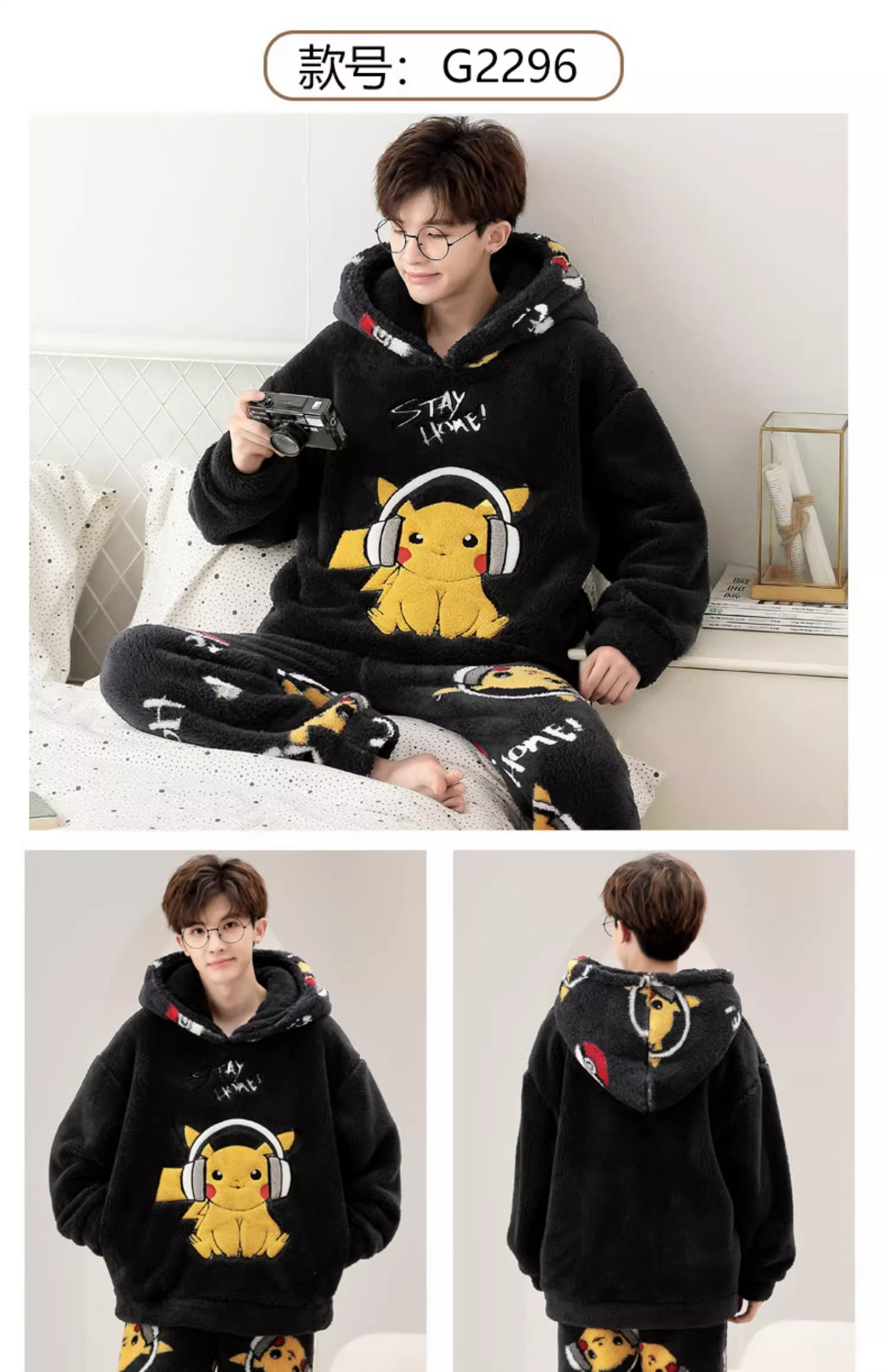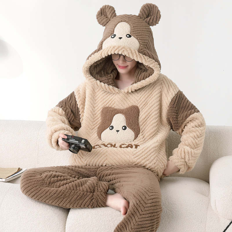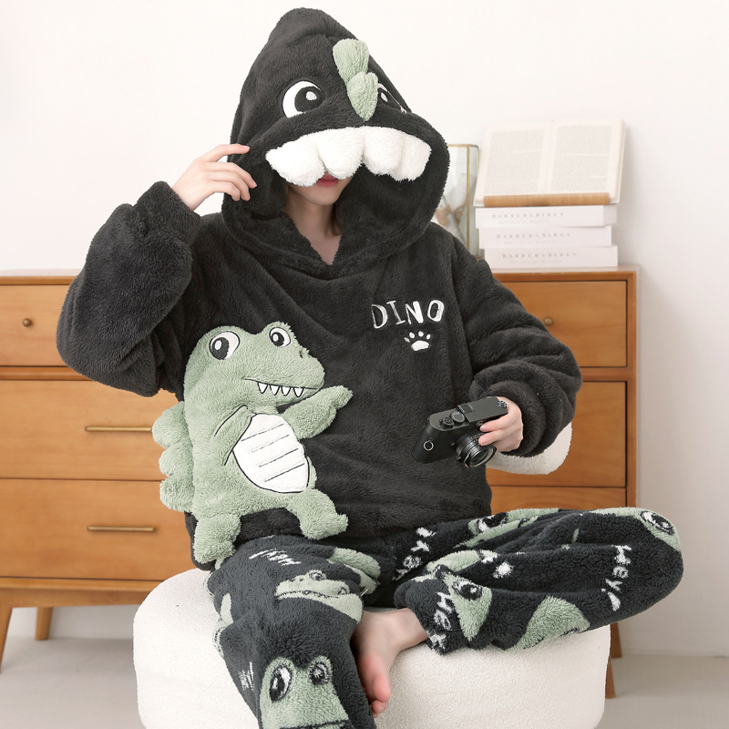 남자 잠옷 가을과 겨울 겨울 산호 양털 두꺼운 기모 플란넬 만화 집 옷 남자의 겨울 세트