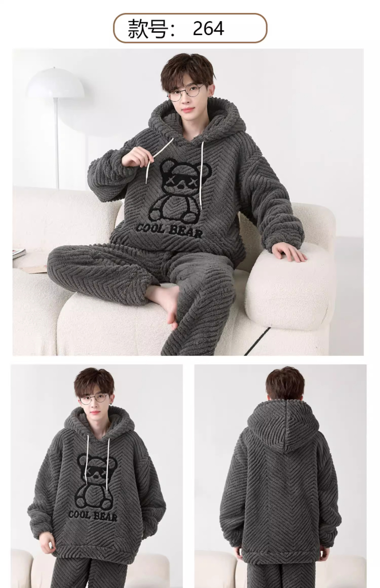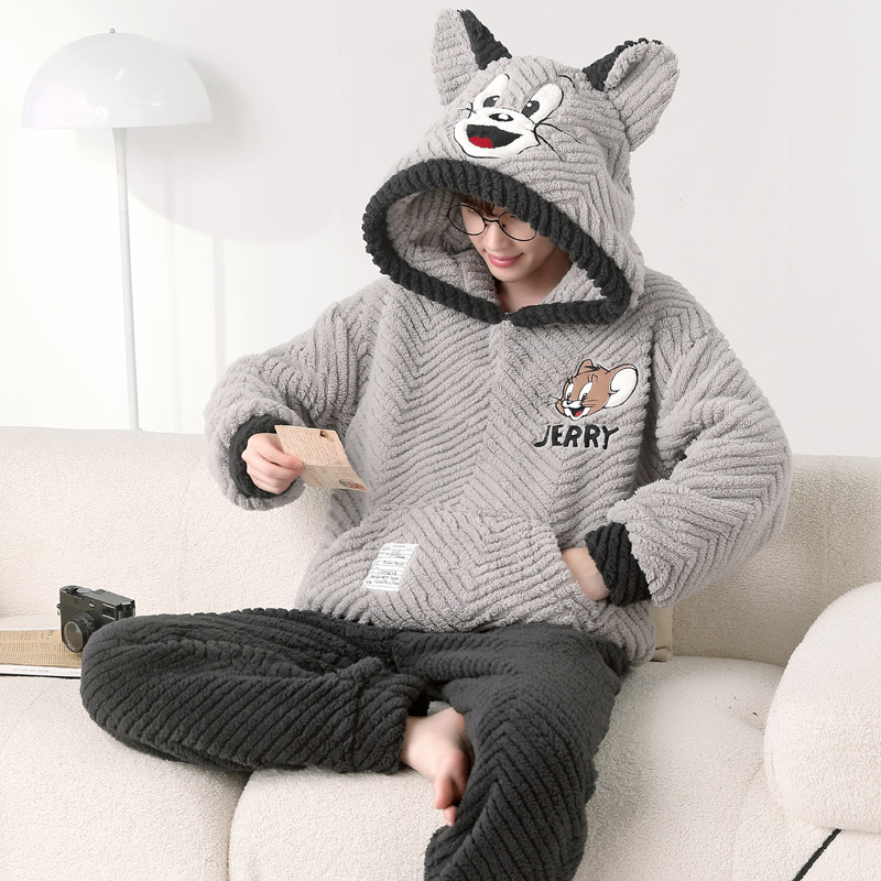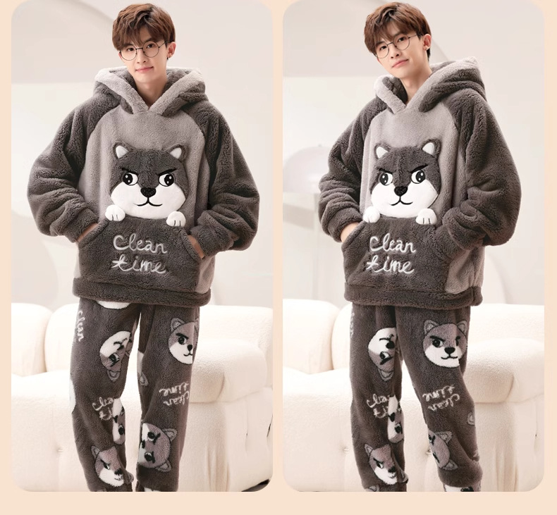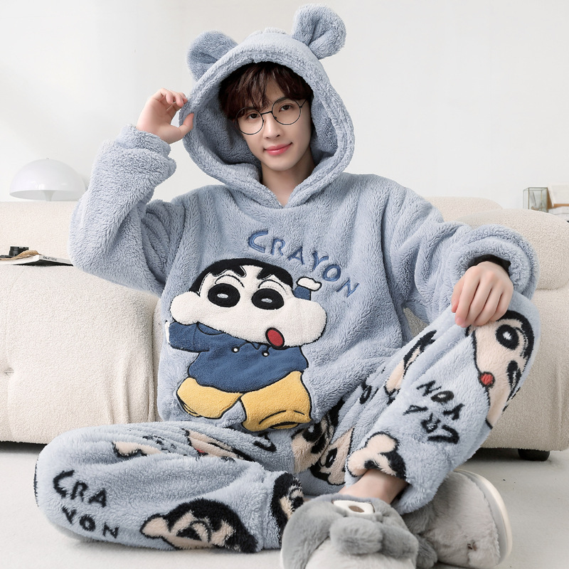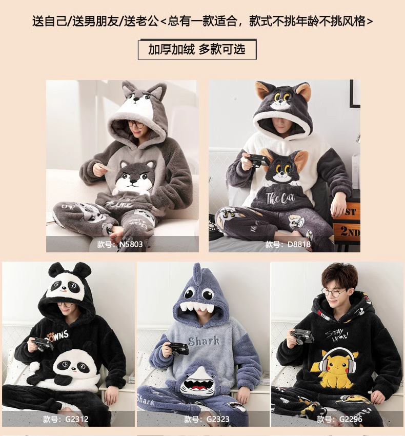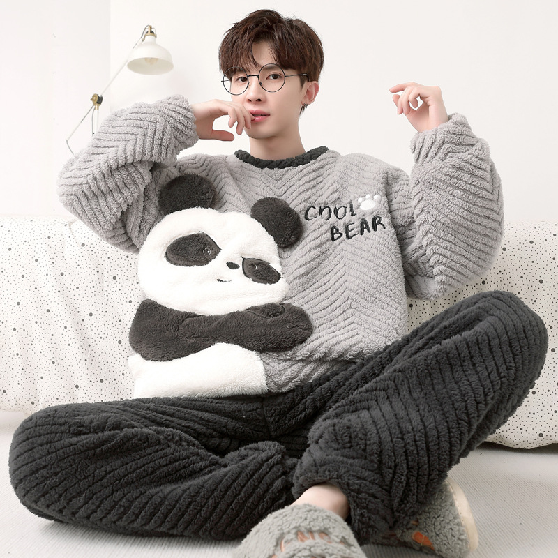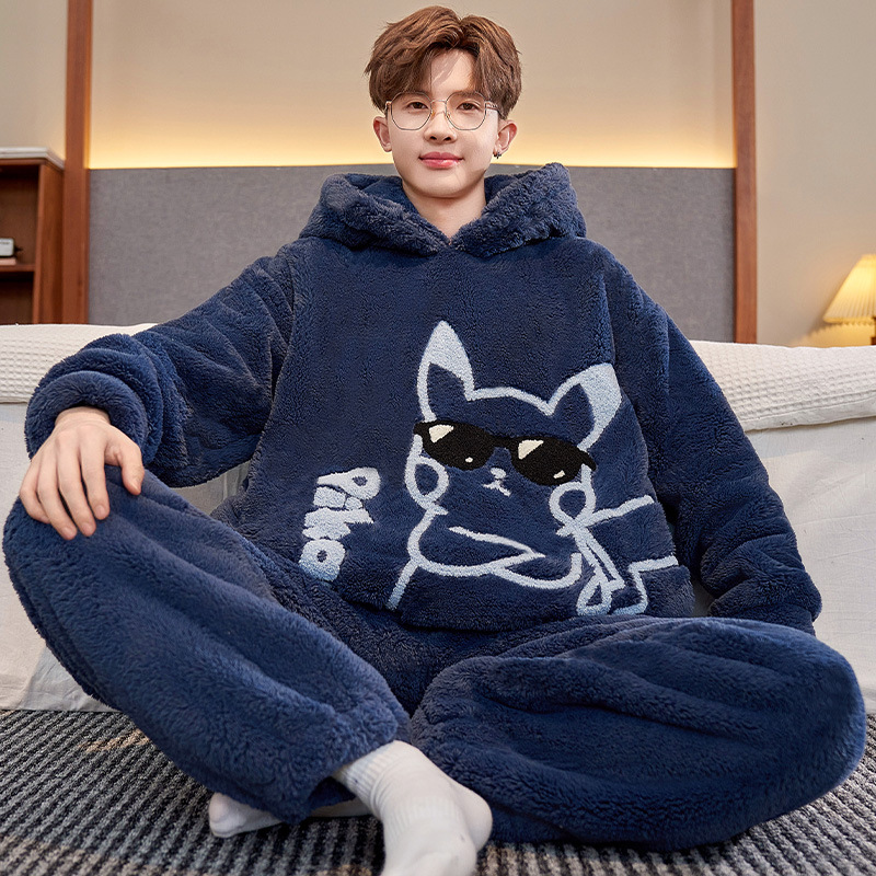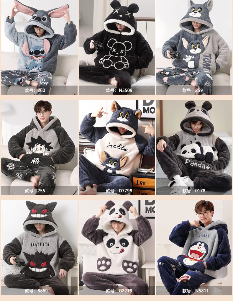남자 잠옷 가을과 겨울 겨울 산호 양털 두꺼운 기모 플란넬 만화 집 옷 남자의 겨울 세트스토어 가기