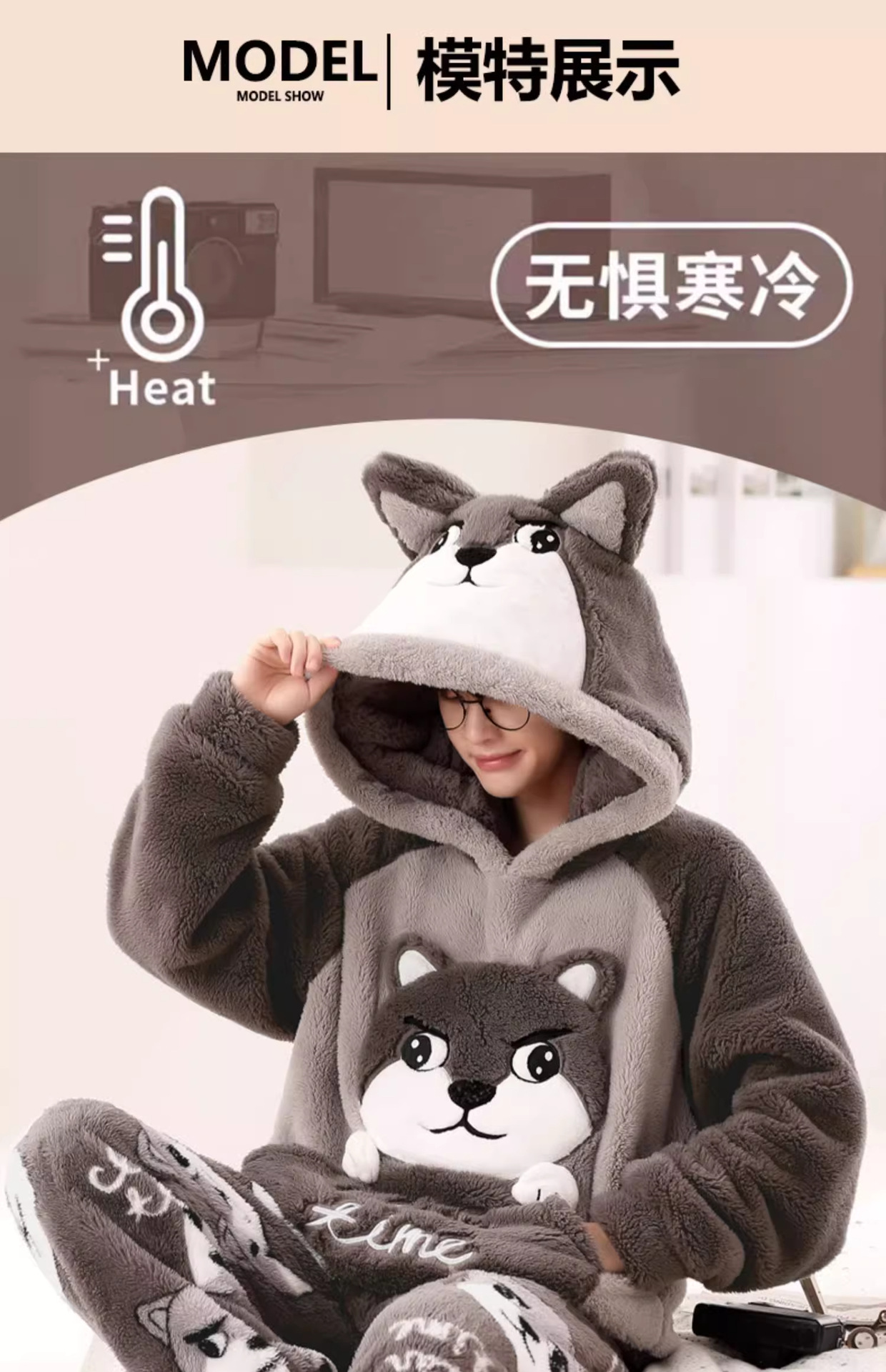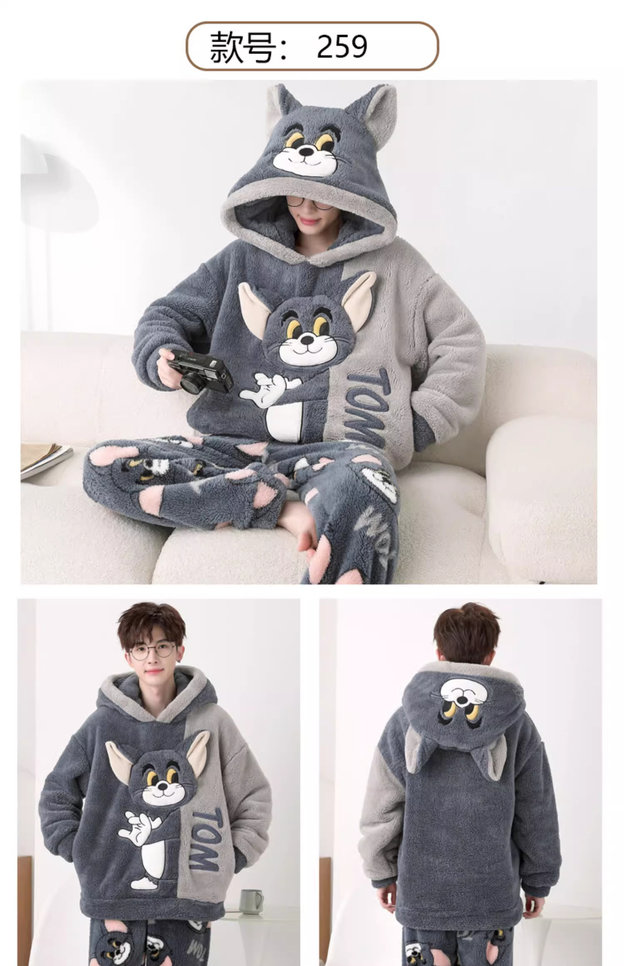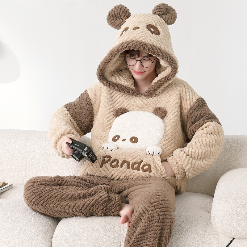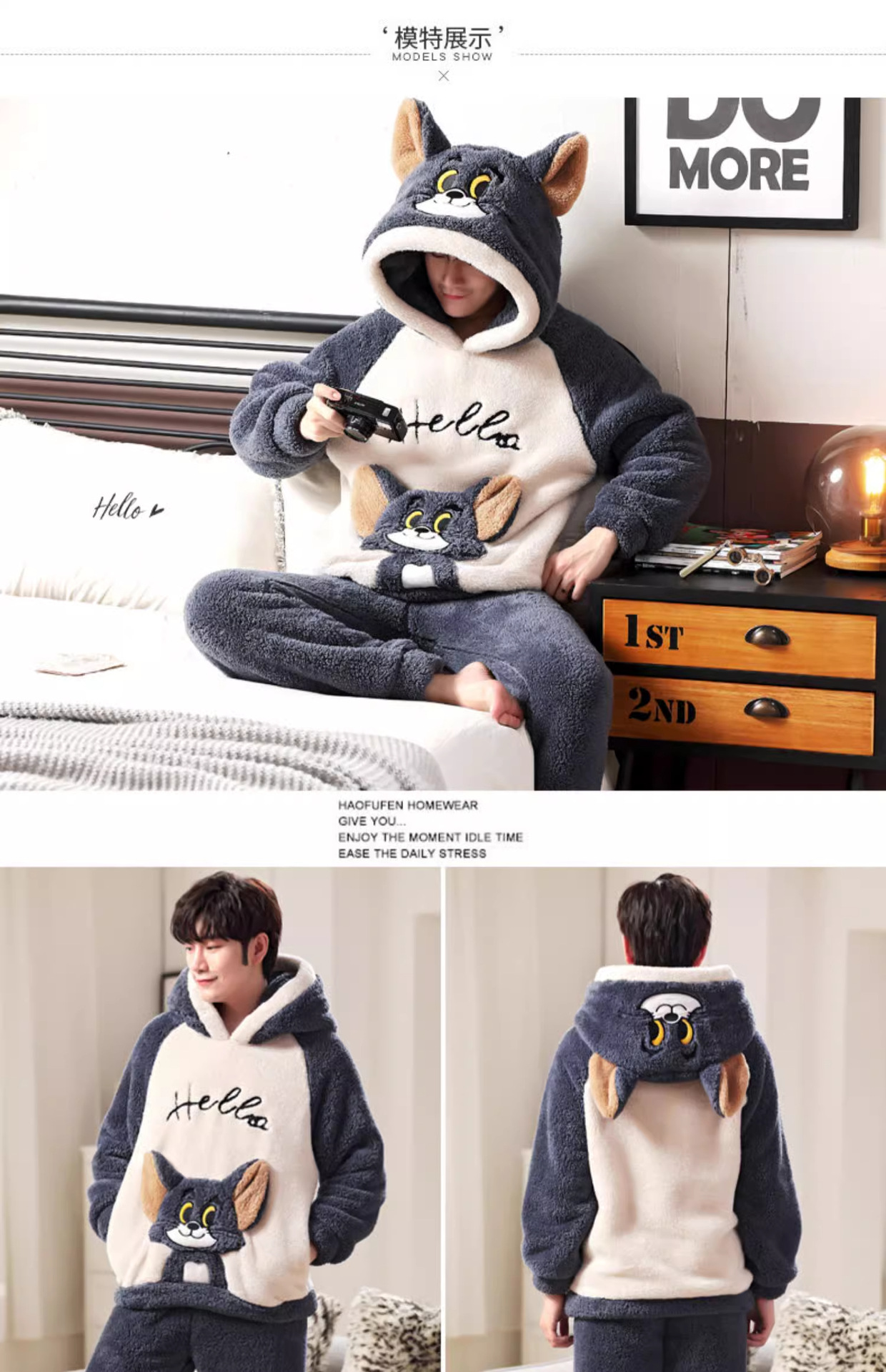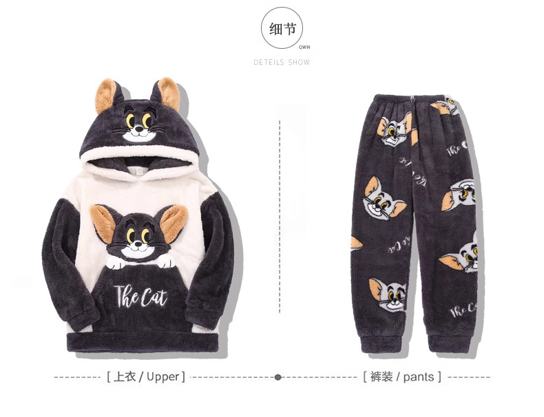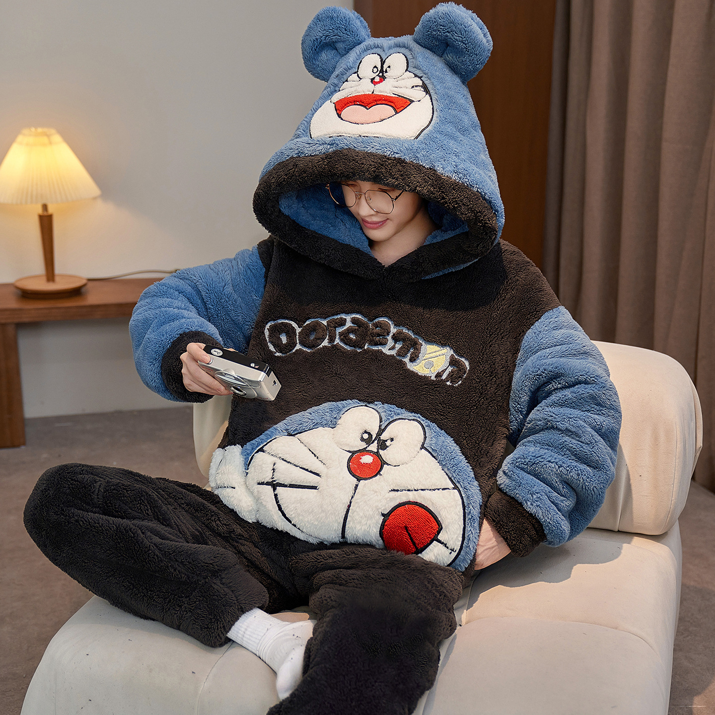 남자 잠옷 가을과 겨울 겨울 산호 양털 두꺼운 기모 플란넬 만화 집 옷 남자의 겨울 세트스토어 가기