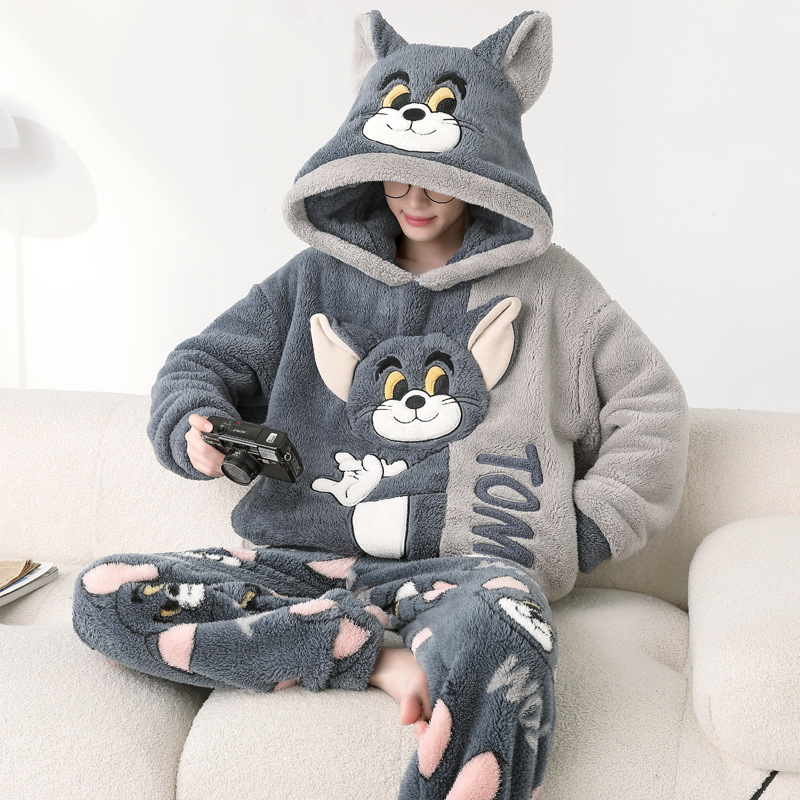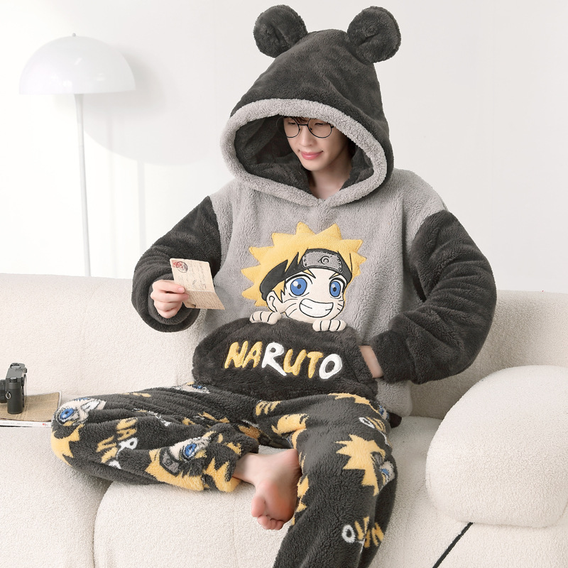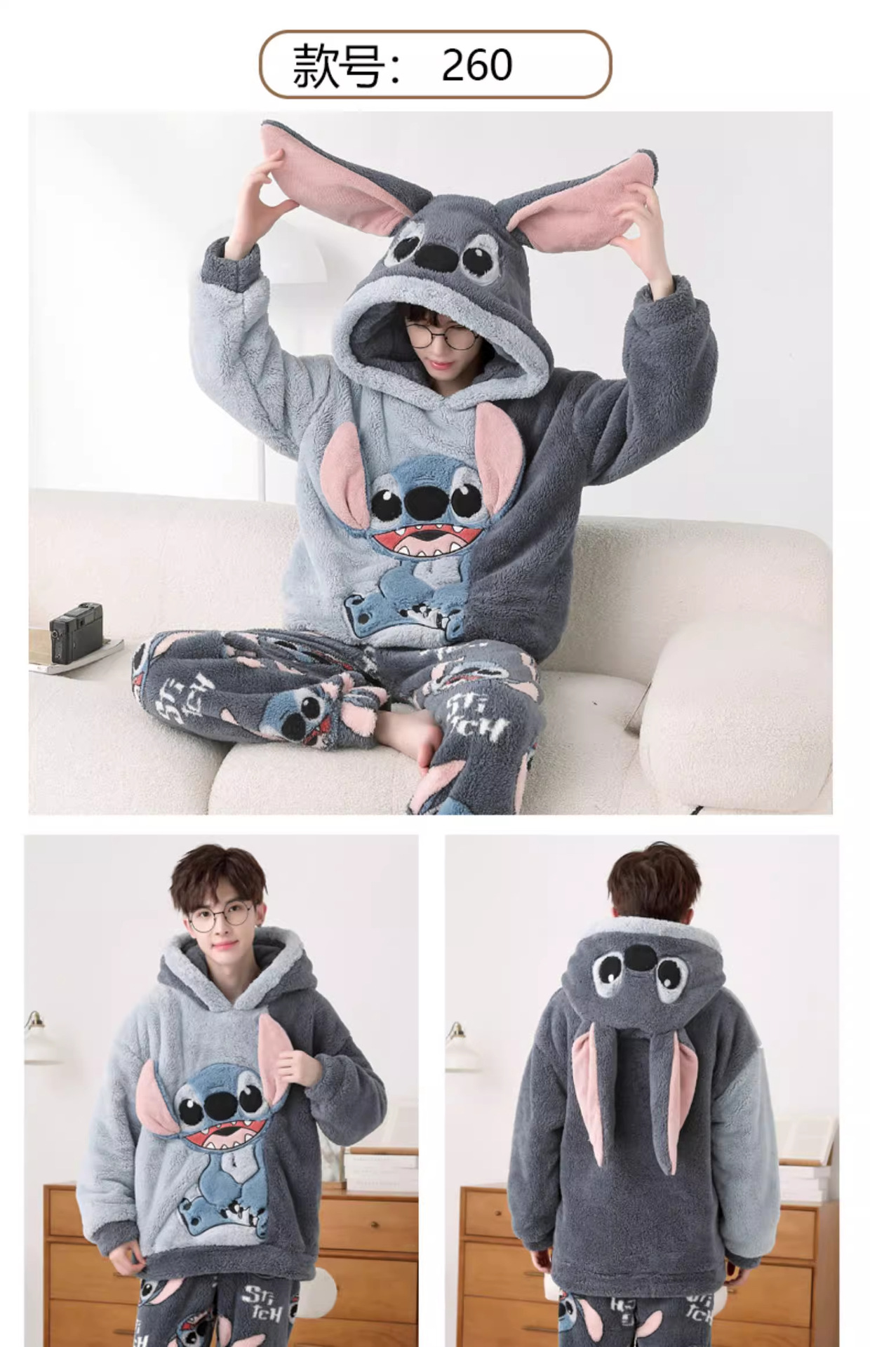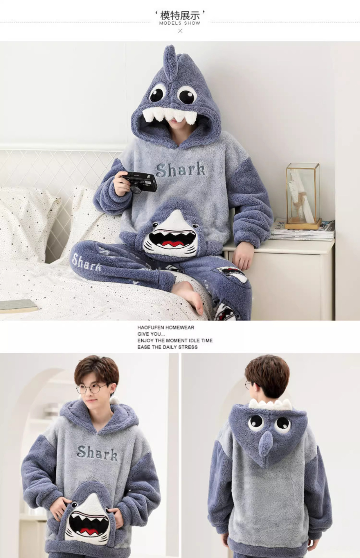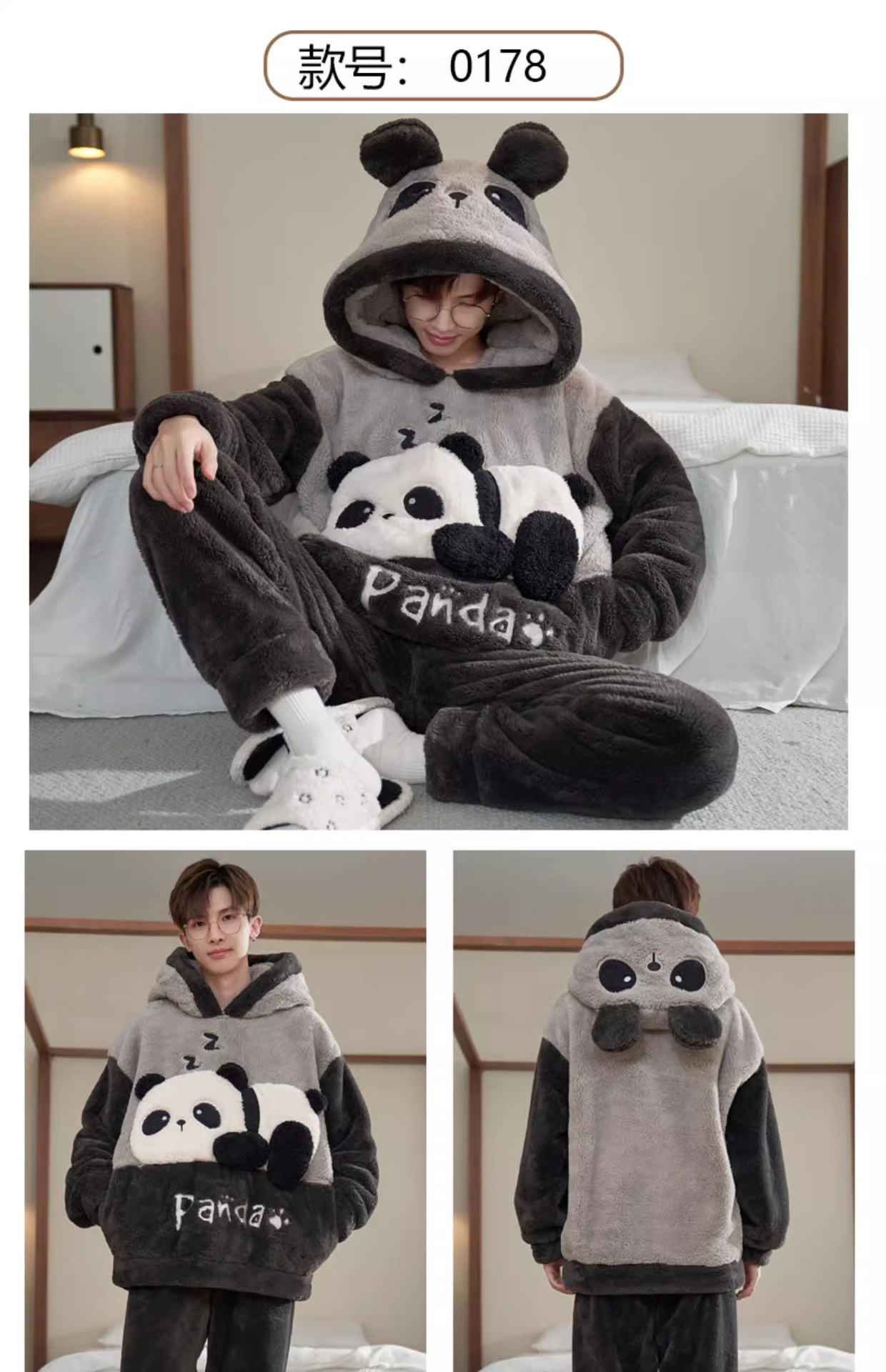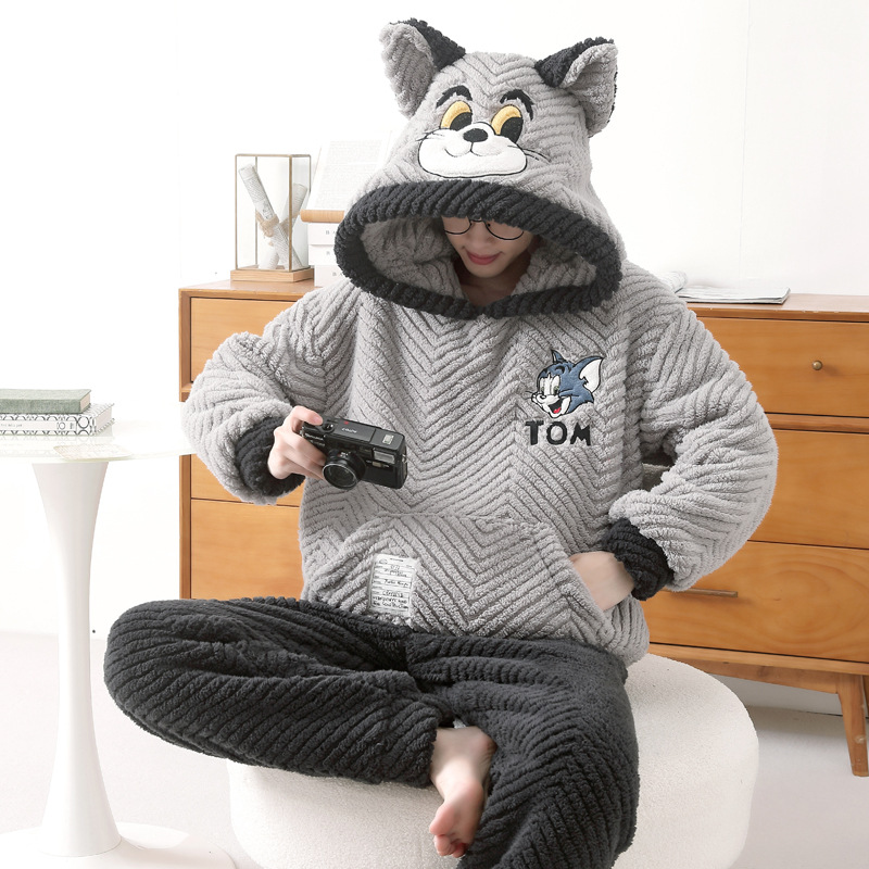 남자 잠옷 가을과 겨울 겨울 산호 양털 두꺼운 기모 플란넬 만화 집 옷 남자의 겨울 세트스토어 가기