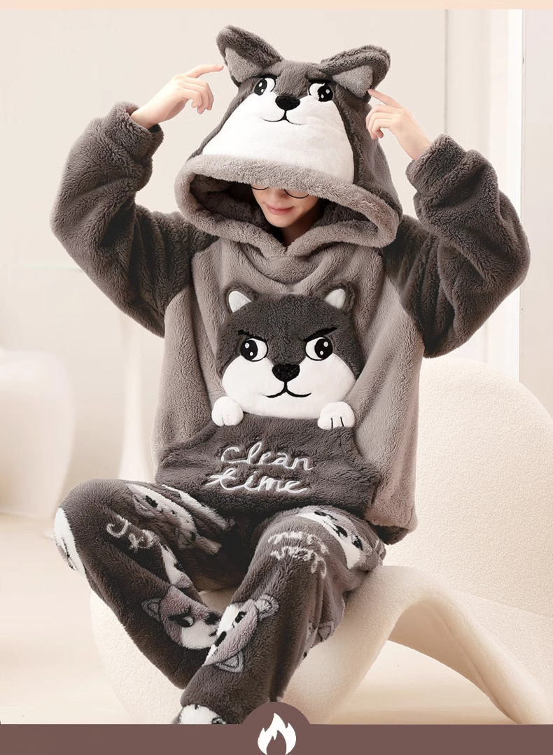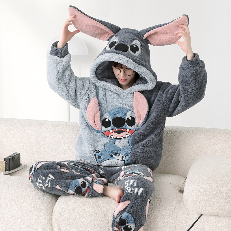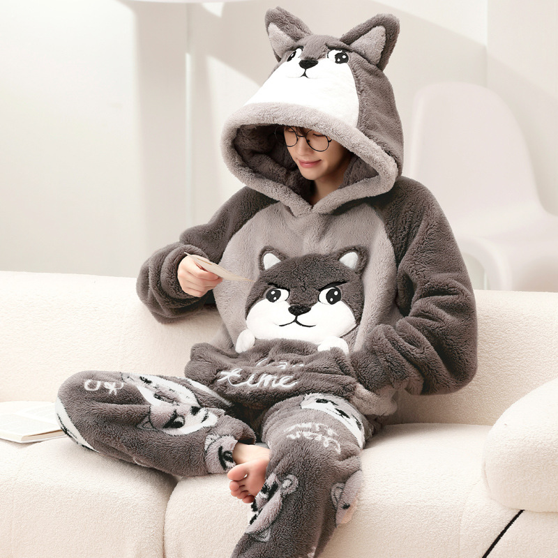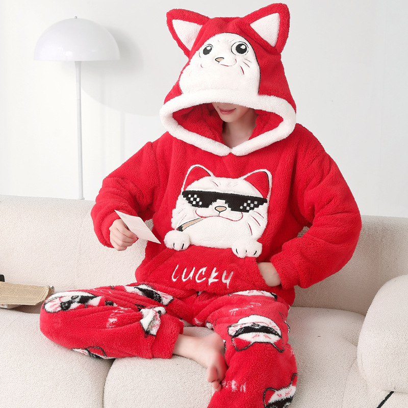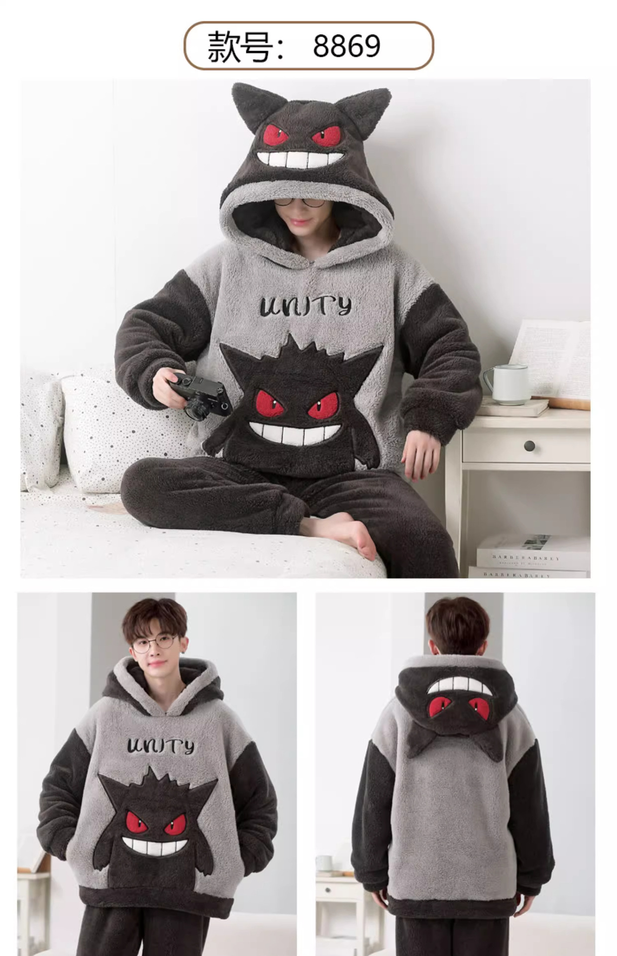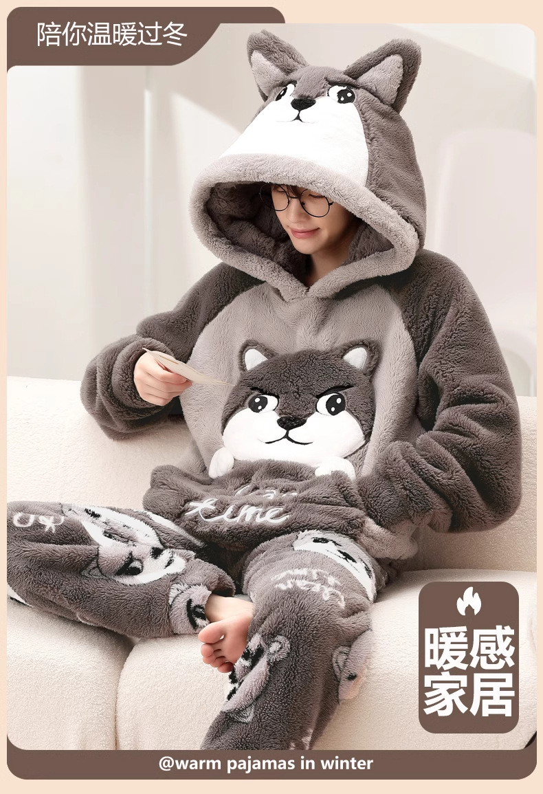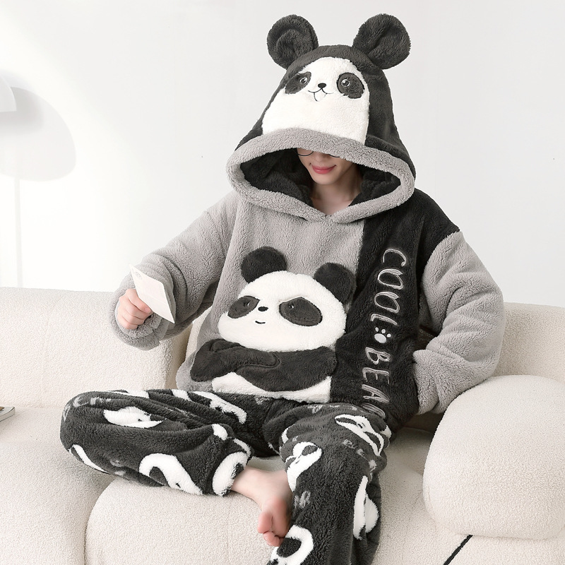 남자 잠옷 가을과 겨울 겨울 산호 양털 두꺼운 기모 플란넬 만화 집 옷 남자의 겨울 세트스토어 가기