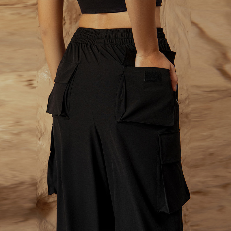 유행 멋진 스테레오 포켓 크레인 바지 피트니스 훈련 빠른 건조 스포츠 조끼 마이크로 플레어 바지 야외 스포츠 세트 여성스토어 가기