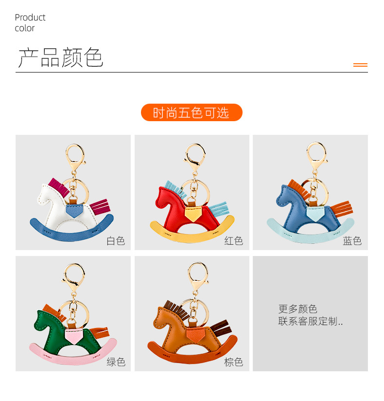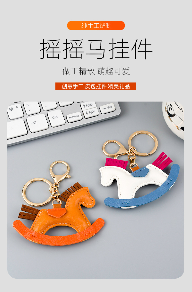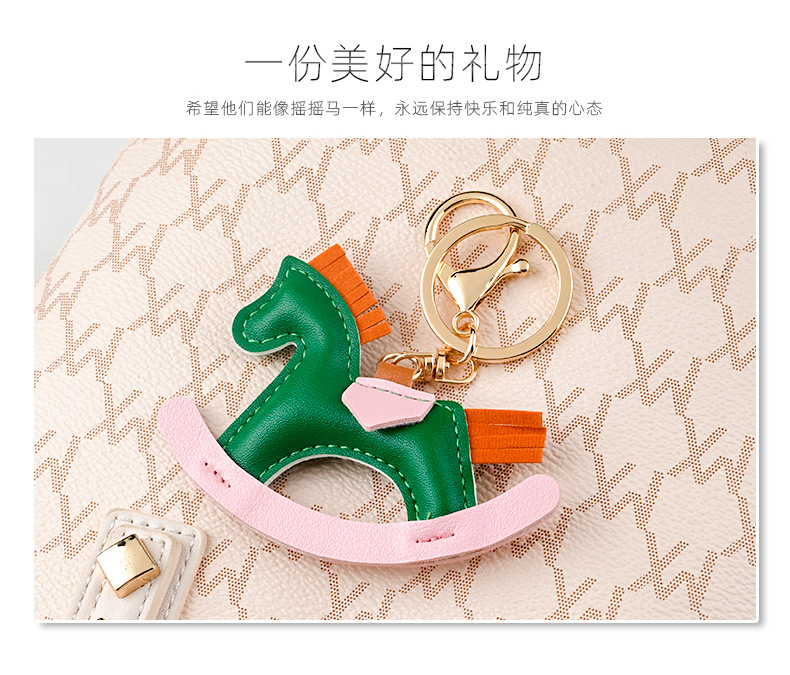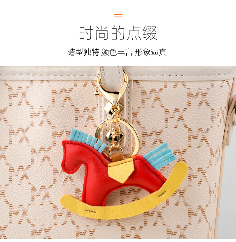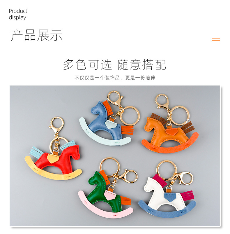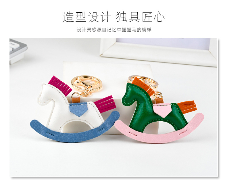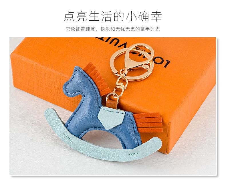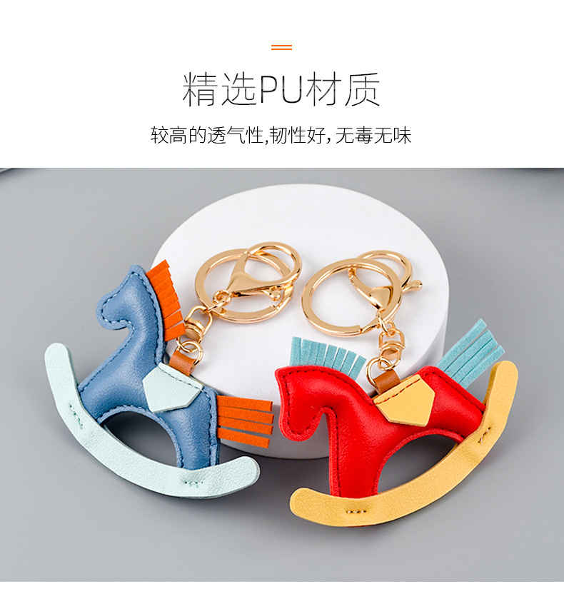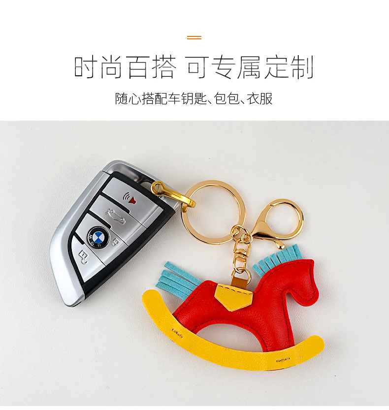 어린 시절 작은 트로이 목마 키 체인 펜던트 만화 로킹 말 가죽 걸이 수제 가죽 가방 자동차 키 체인스토어 가기