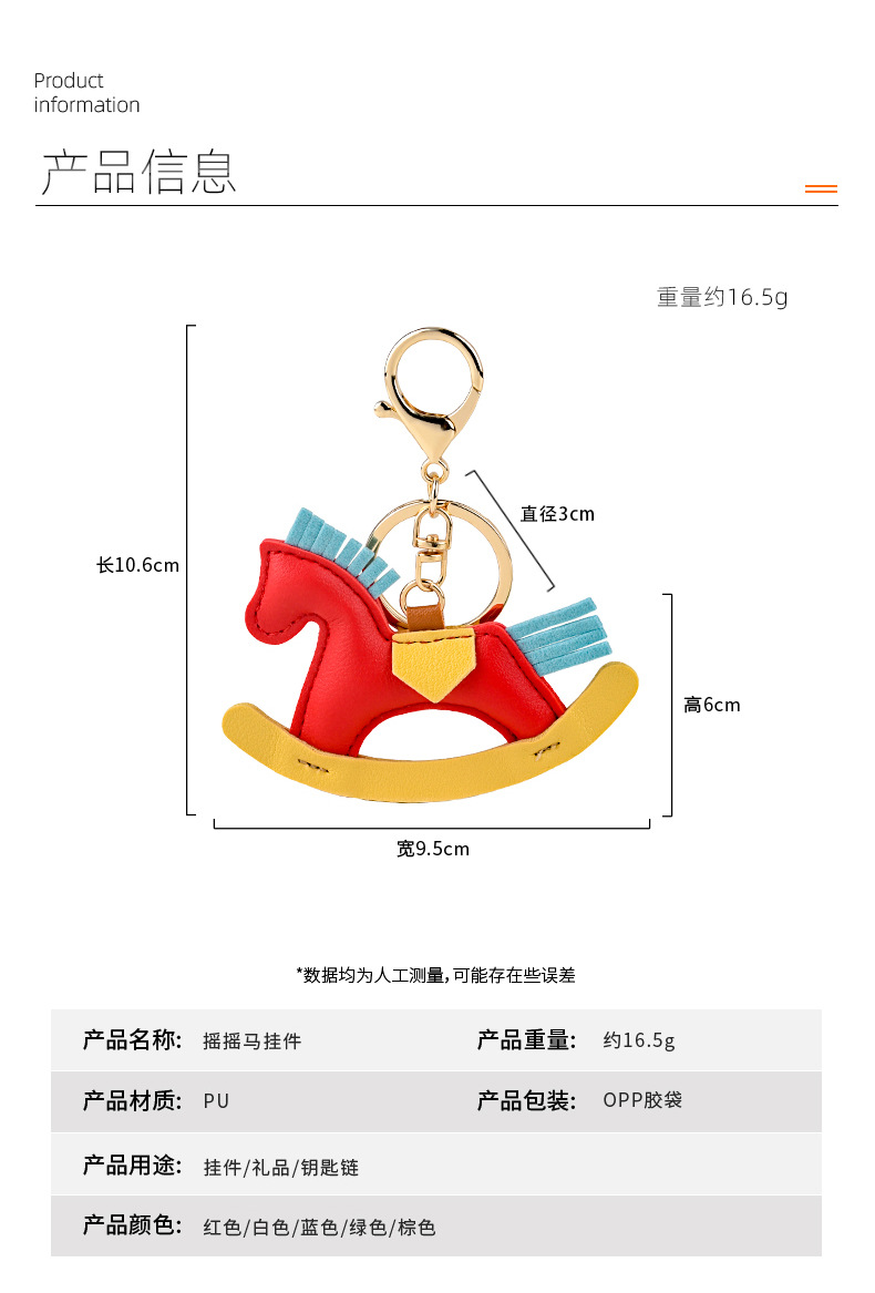 어린 시절 작은 트로이 목마 키 체인 펜던트 만화 로킹 말 가죽 걸이 수제 가죽 가방 자동차 키 체인