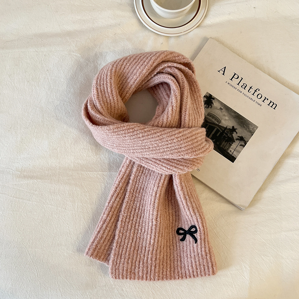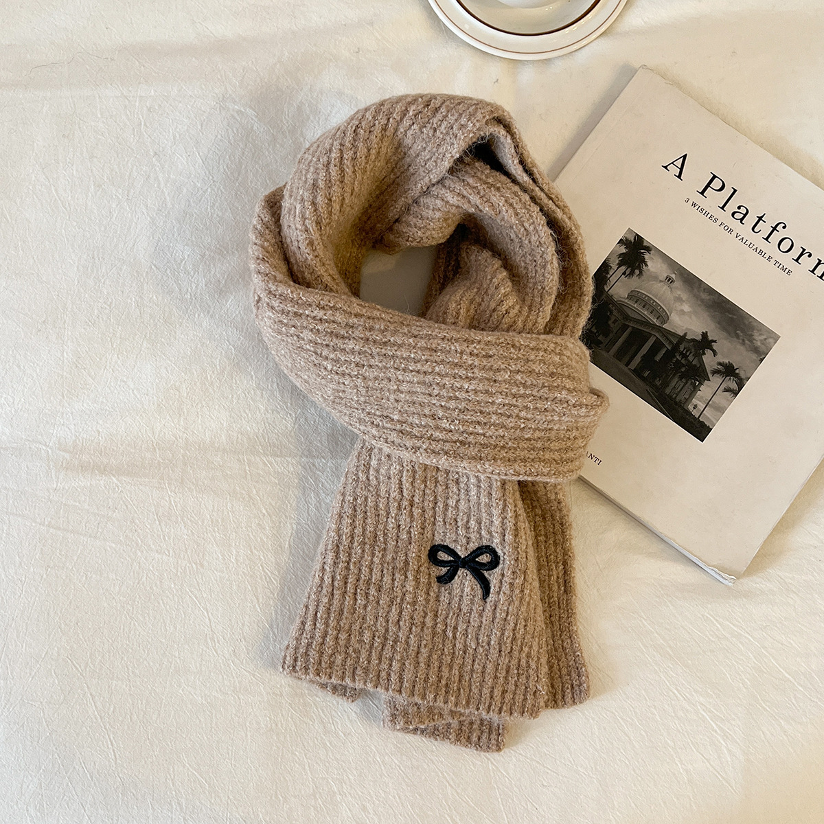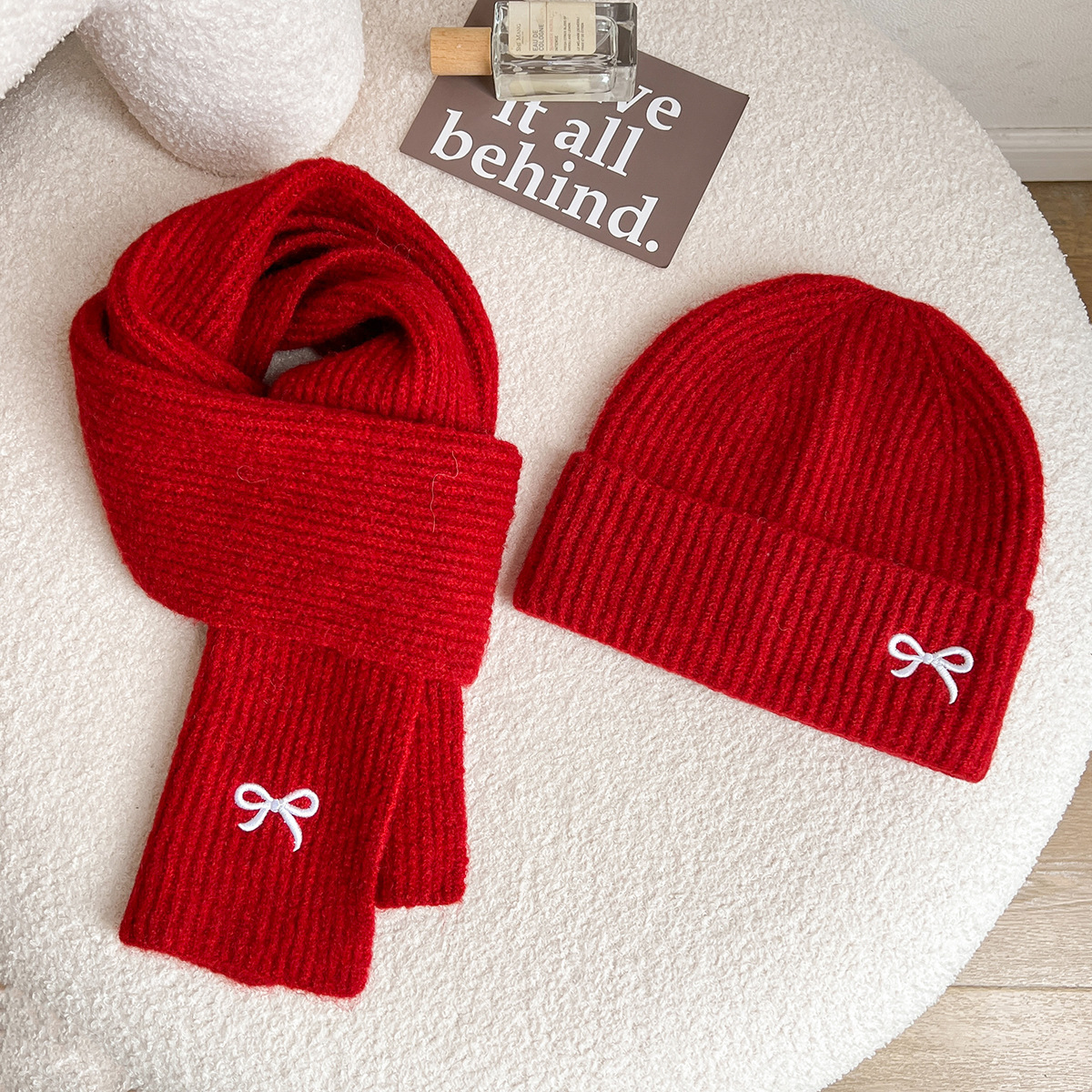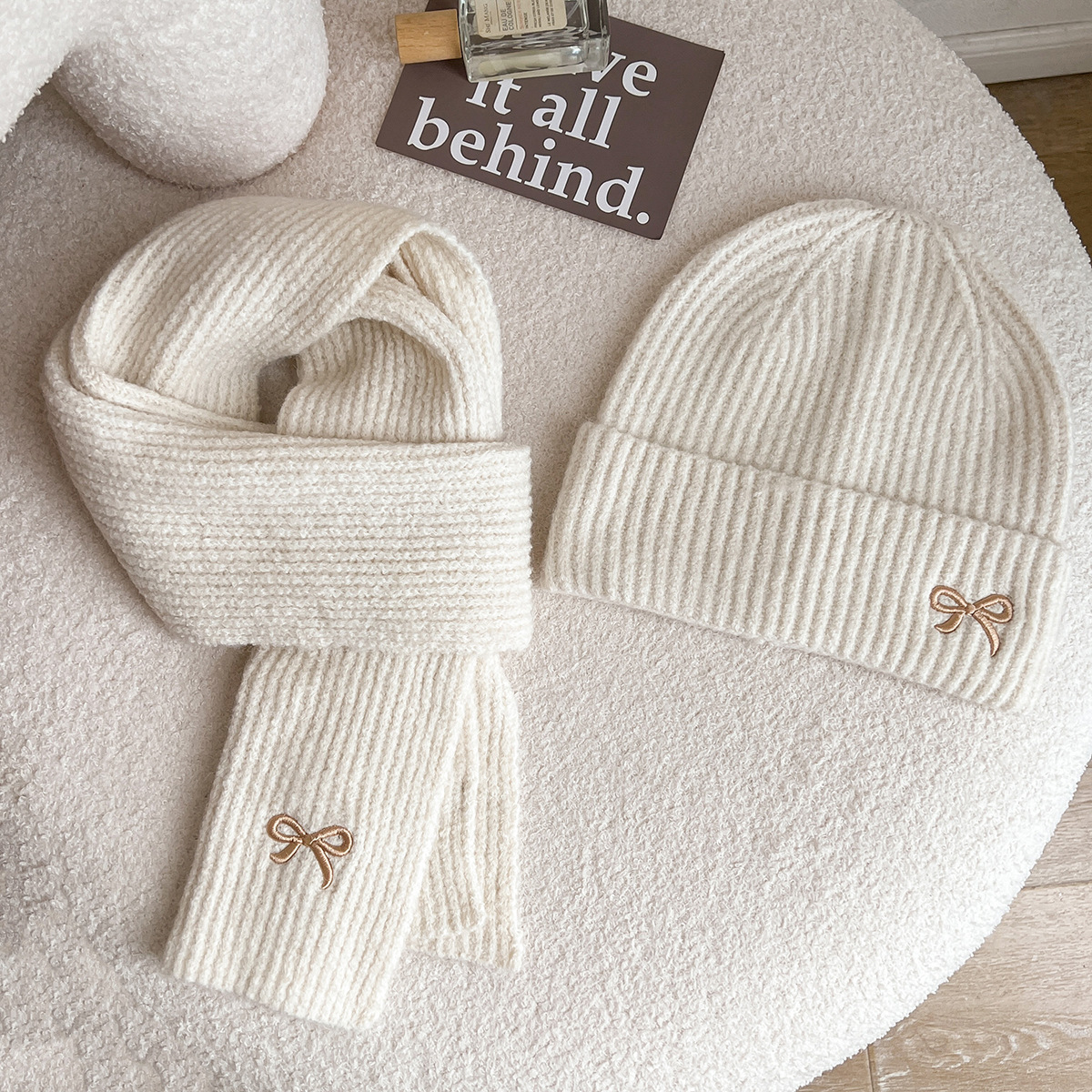 가을과 겨울 부모-자식 모자 스카프 투피스 세트 어린이 자수 단색 활 니트 울 따뜻한