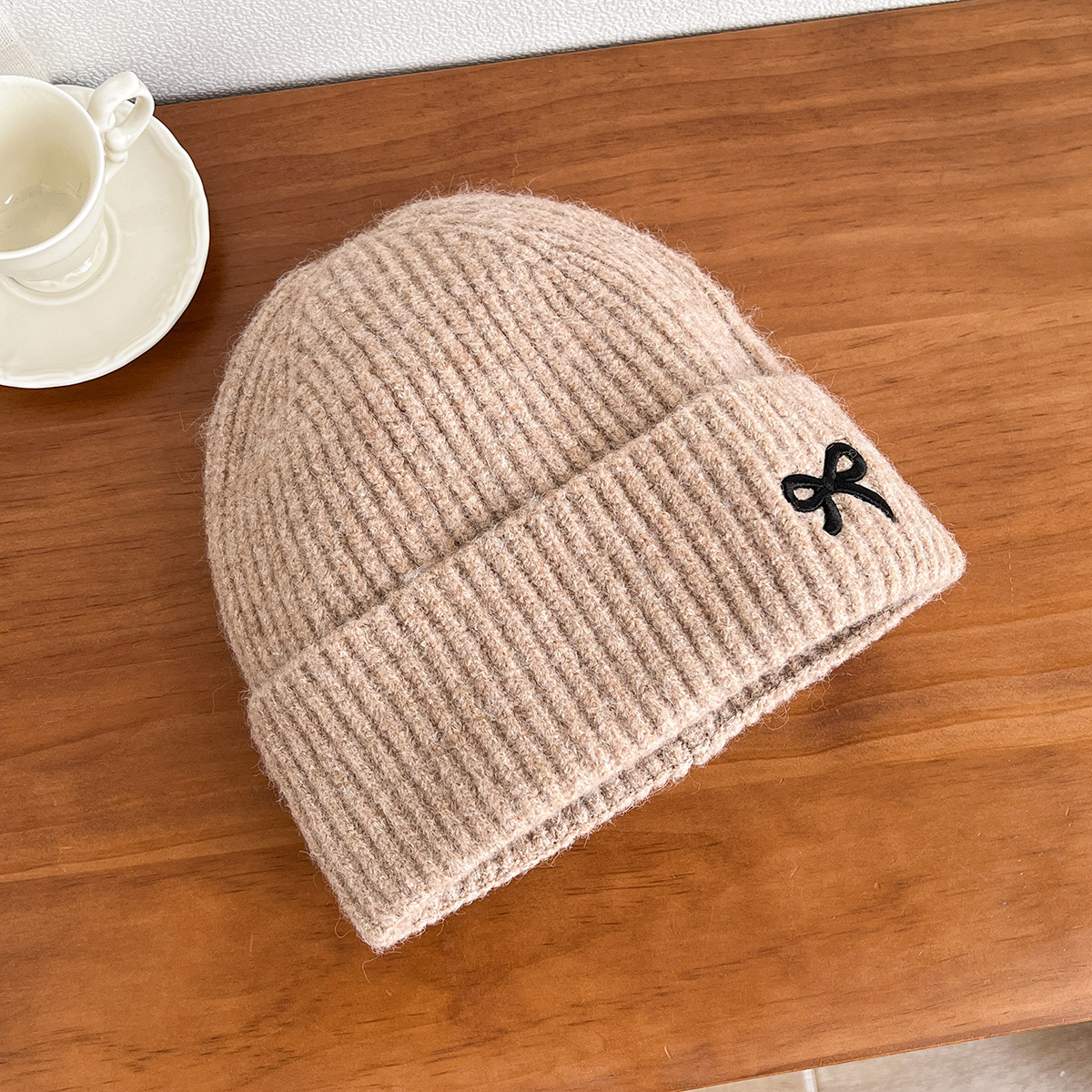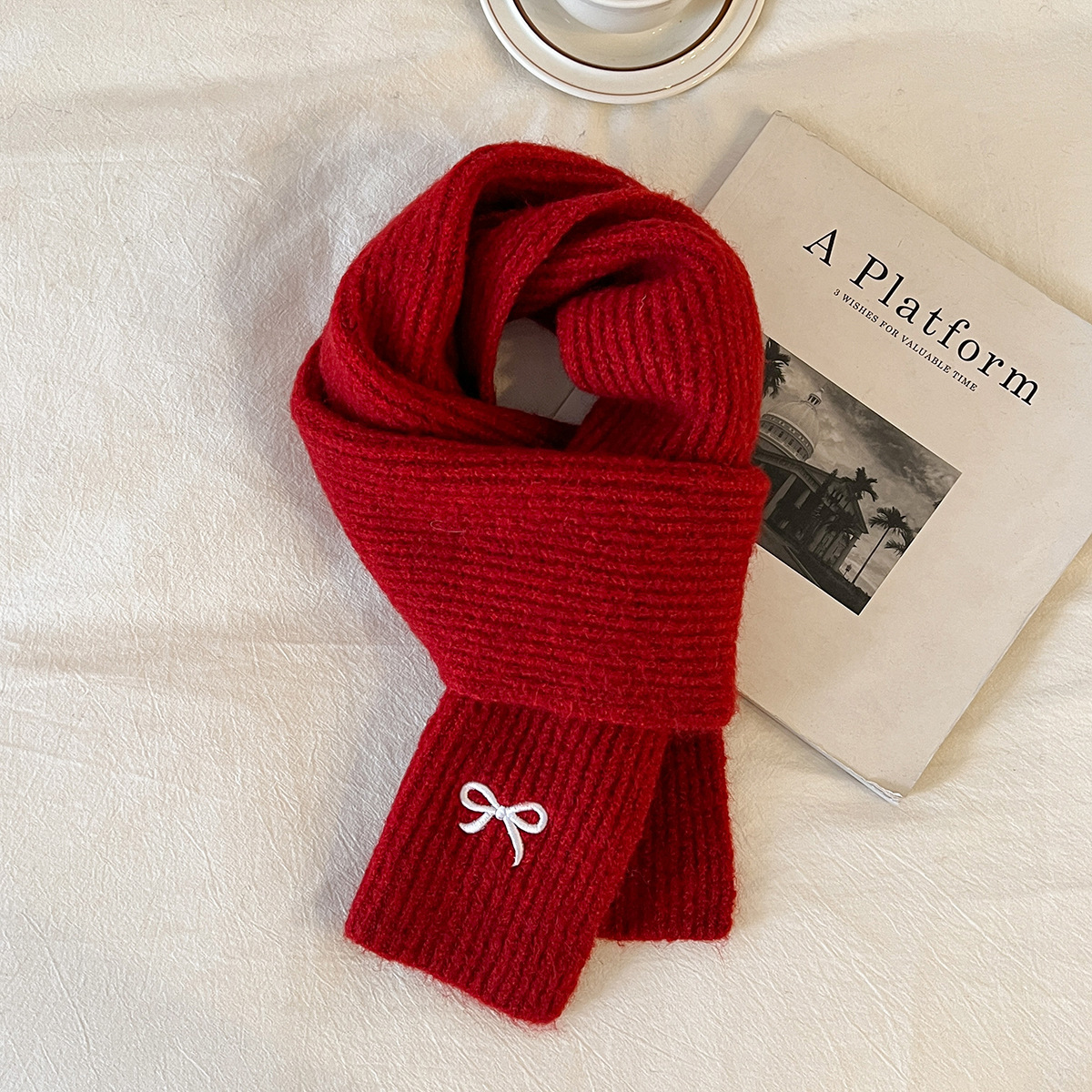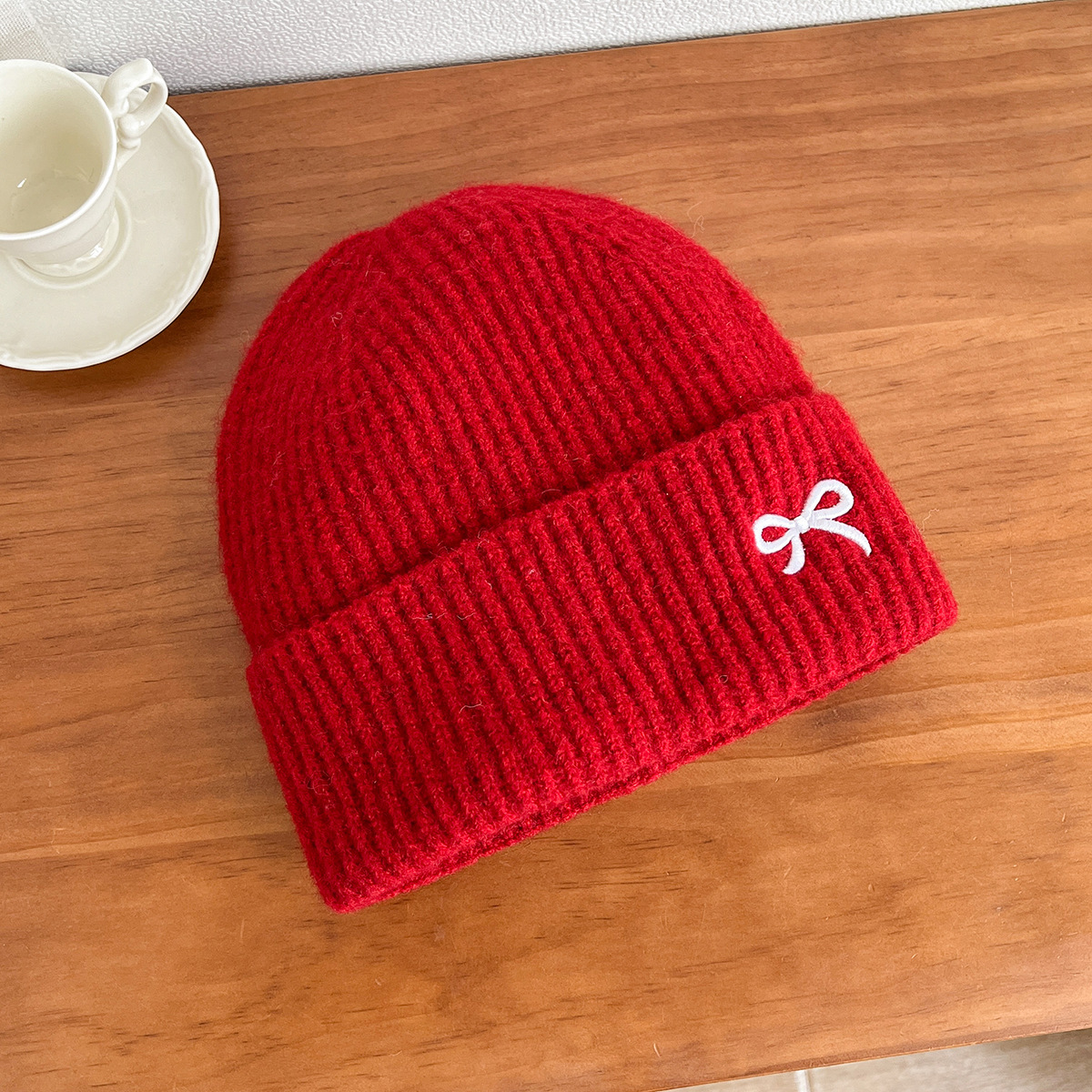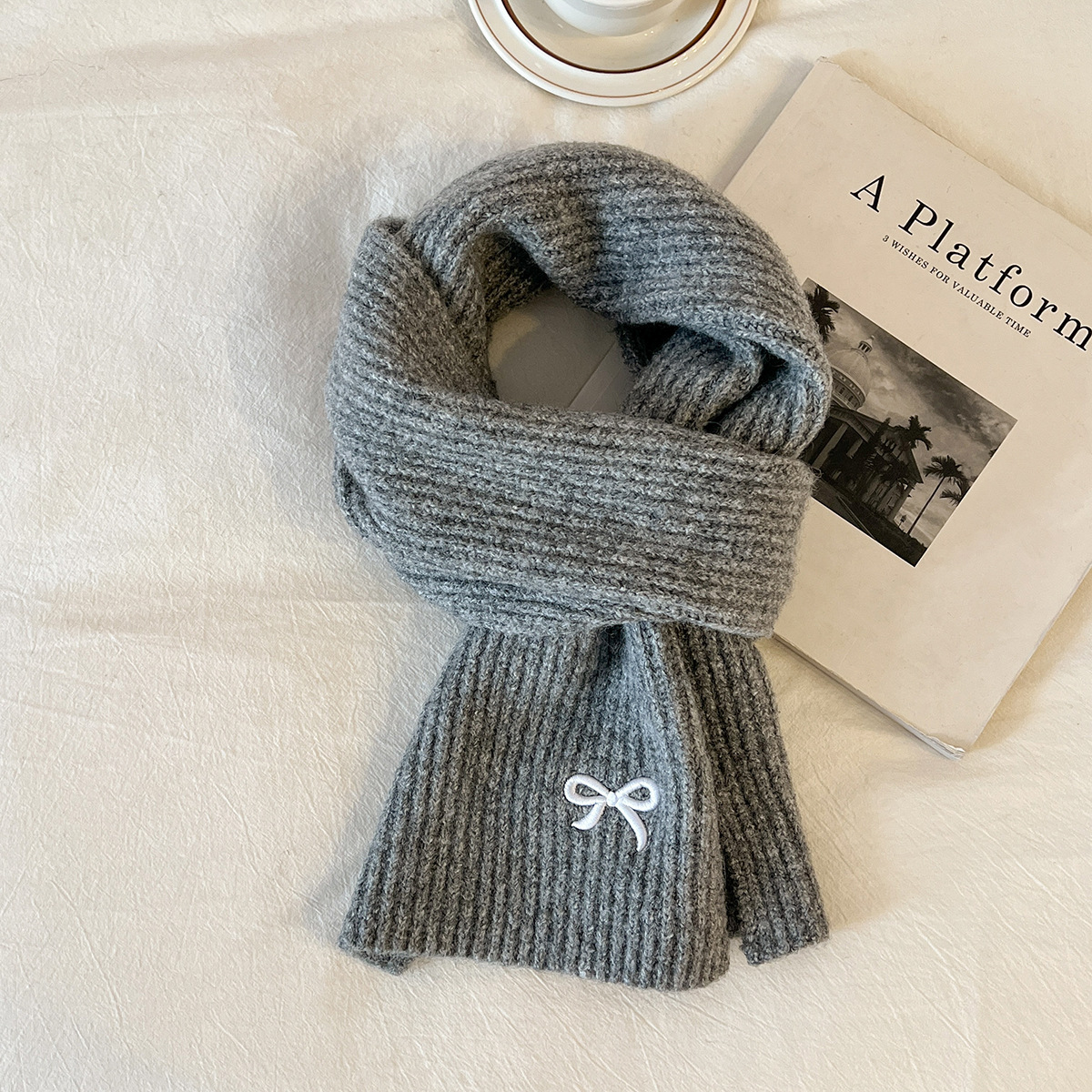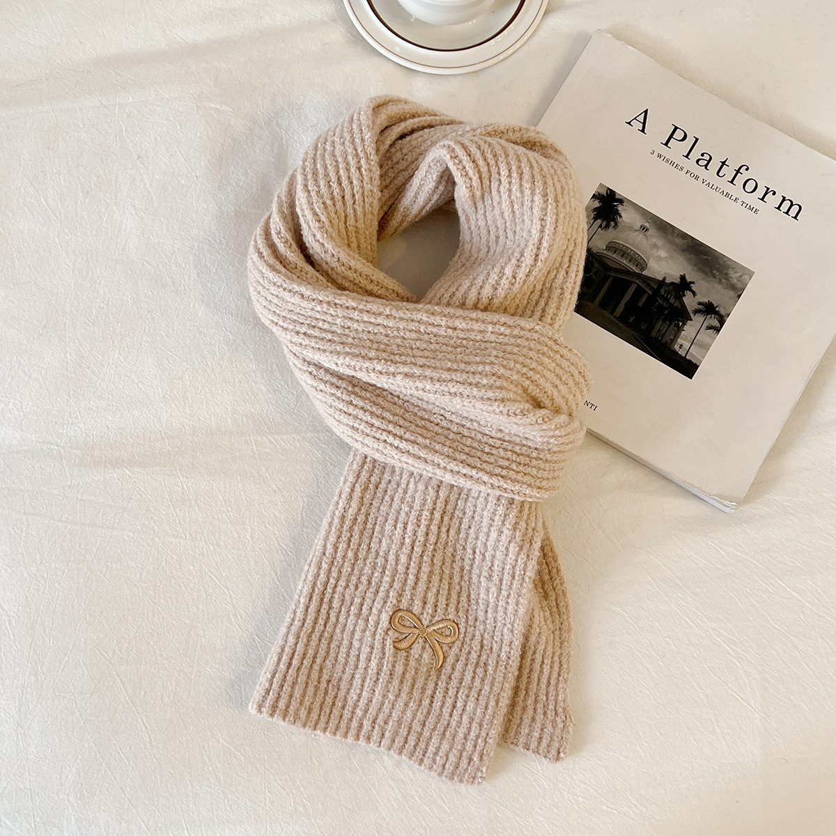 가을과 겨울 부모-자식 모자 스카프 투피스 세트 어린이 자수 단색 활 니트 울 따뜻한