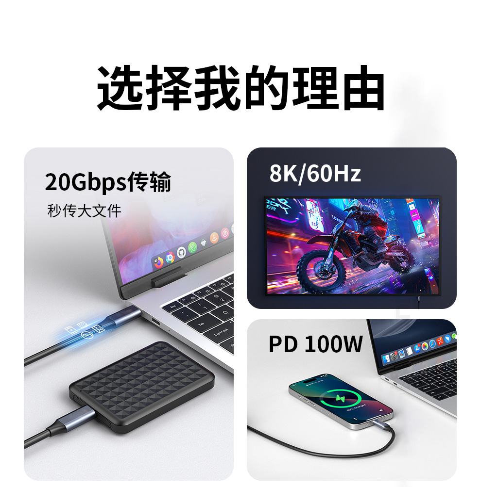 양방향 TYPEC 전 기능 데이터 케이블 USB3.2 GEN2*2 모바일 하드 드라이브 케이블 PD240W 원 라인 스크린 프로젝션스토어 가기