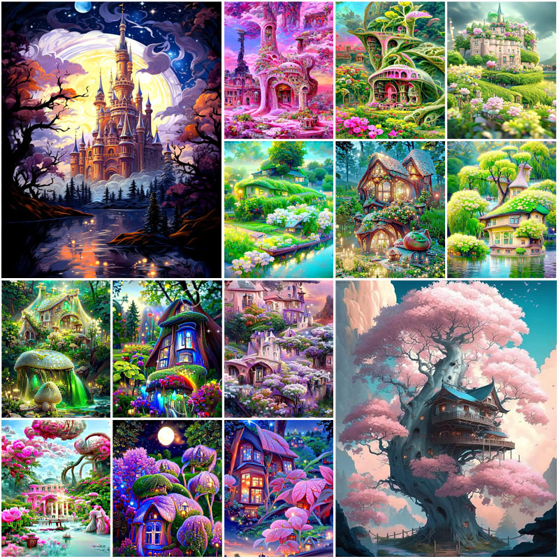 공장 도매 5d 다이아몬드 그림 전체 다이아몬드 성 벽돌 diy 다이아몬드 자수 장식 그림 장식품 거실 풍경 대외 무역스토어 가기