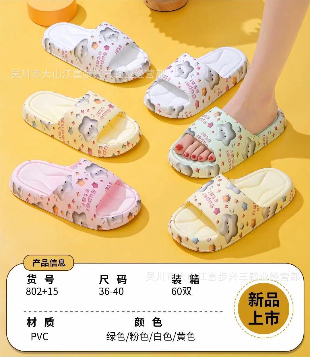 2024 여름 새로운 인쇄 된 두꺼운 소녀 슬리퍼 똥은 가정용 미끄럼 방지 탈취제 슬리퍼 도매스토어 가기