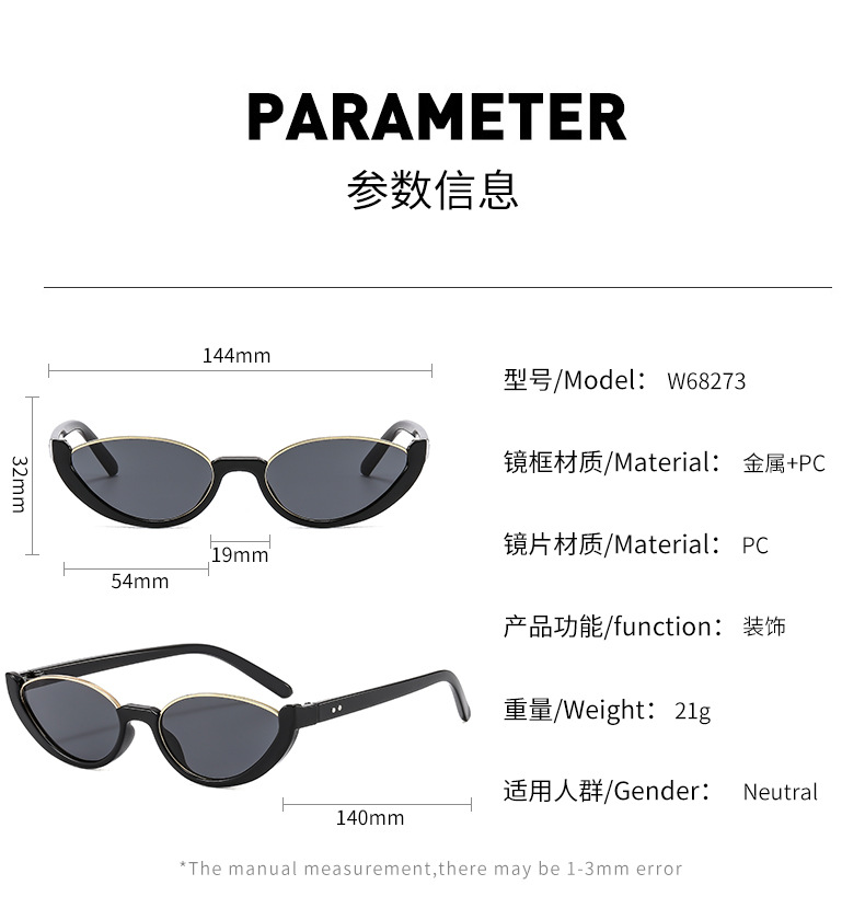 국경 반 프레임 고양이 눈 선글라스 여성 유럽과 미국 패션 온라인 인기 선글라스 개성 전위 패션 착용 안경