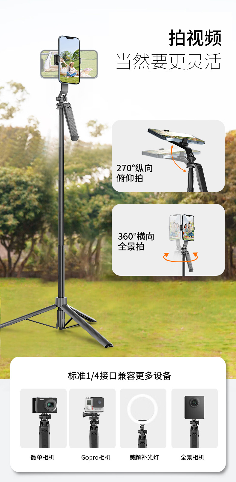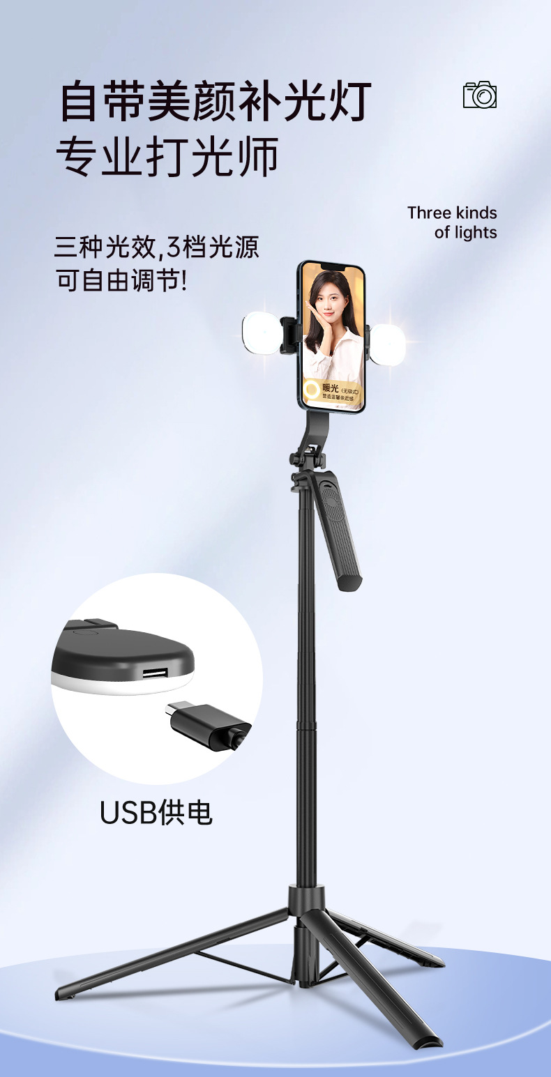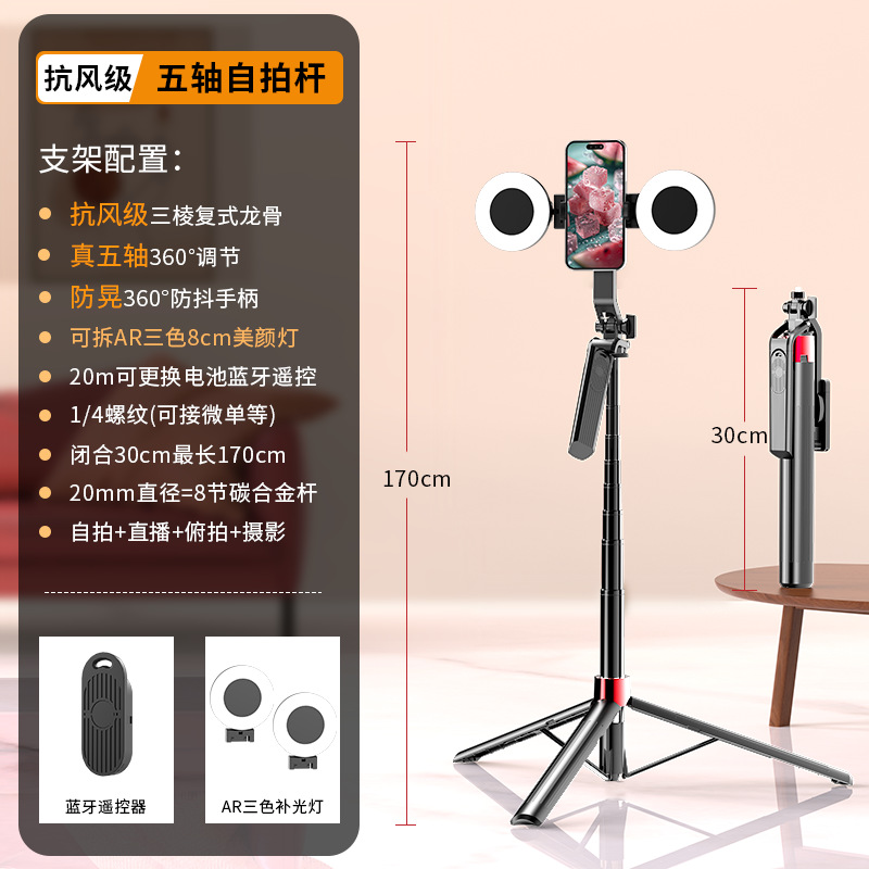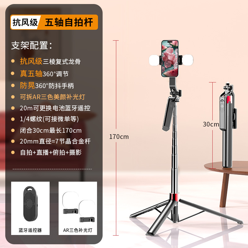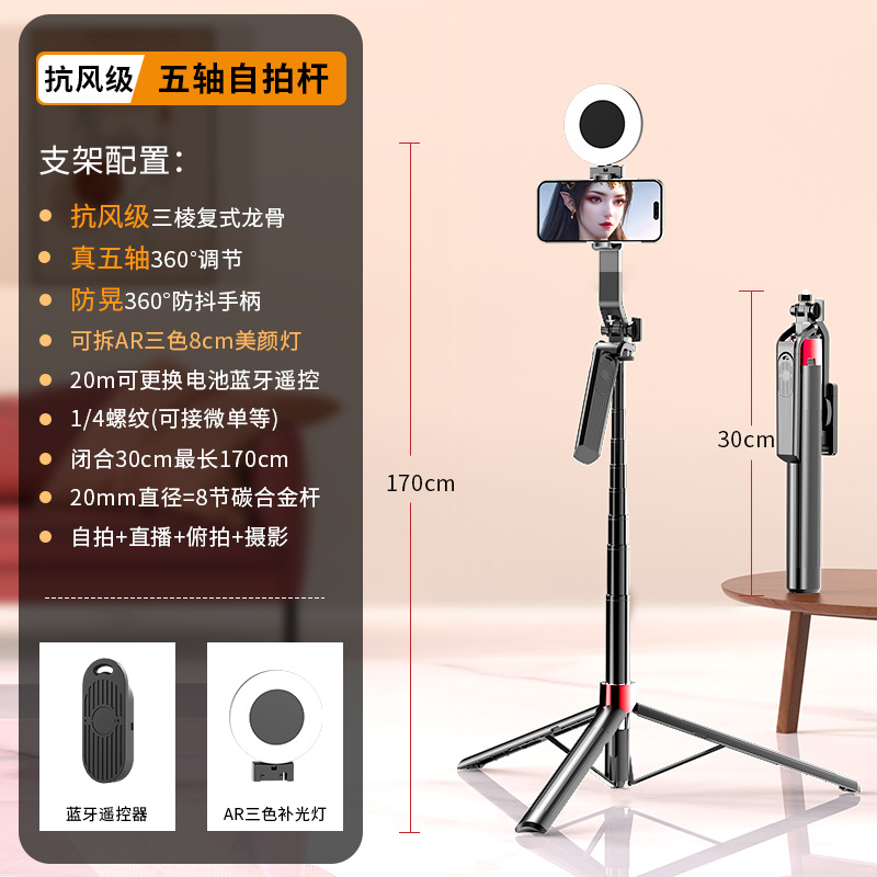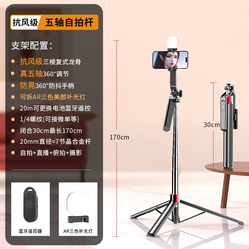 蓝牙加长抖音直播三脚架一体式落地支架补光灯手机五轴自拍杆