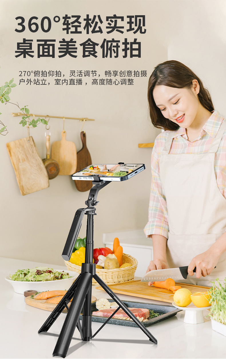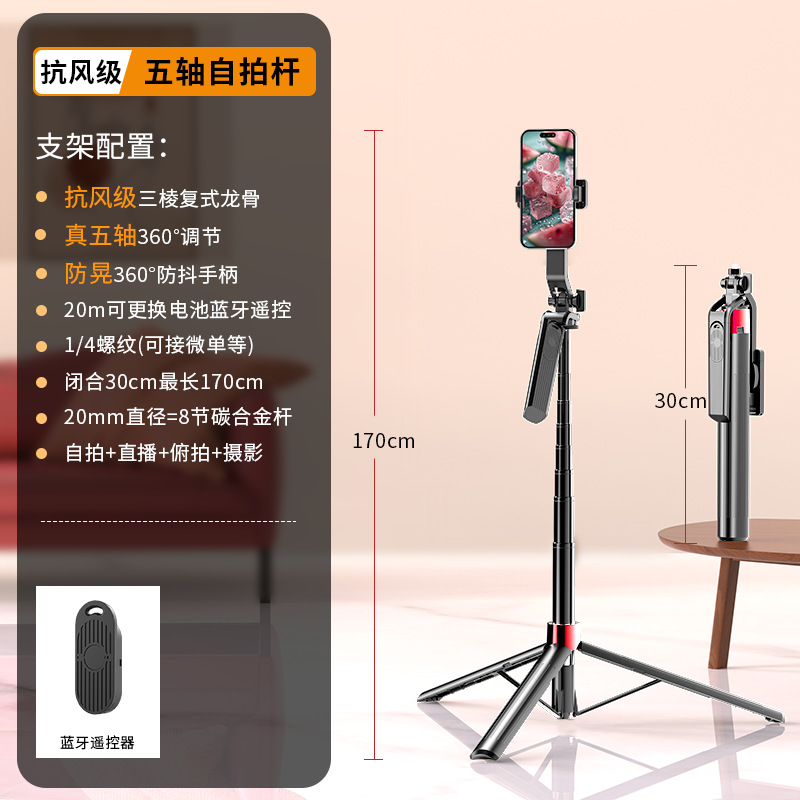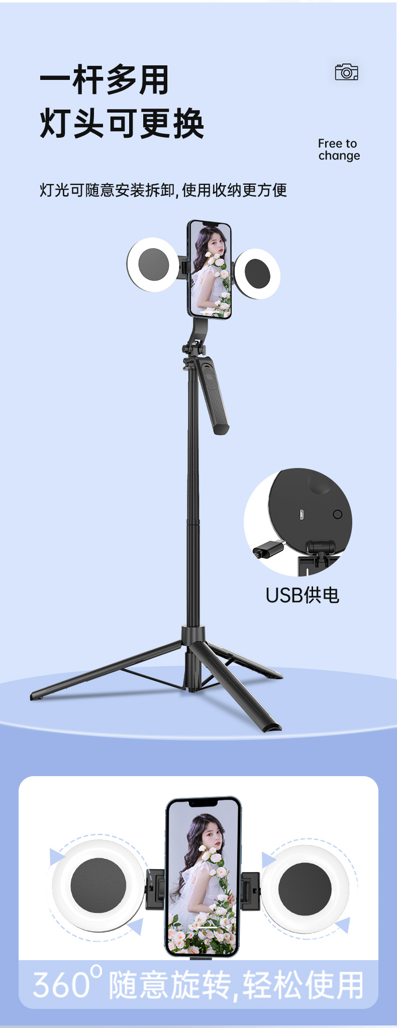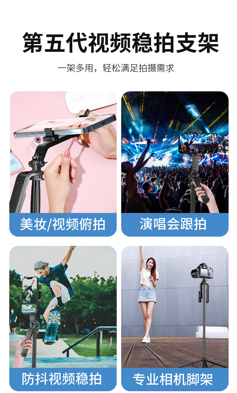 蓝牙加长抖音直播三脚架一体式落地支架补光灯手机五轴自拍杆