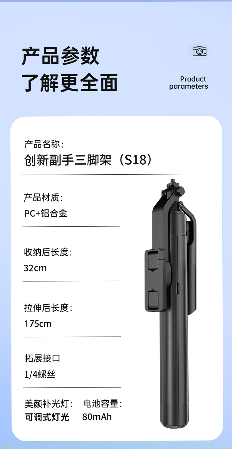• S18 로커 셀카봉 스테인레스 스틸 단일 소형 조명