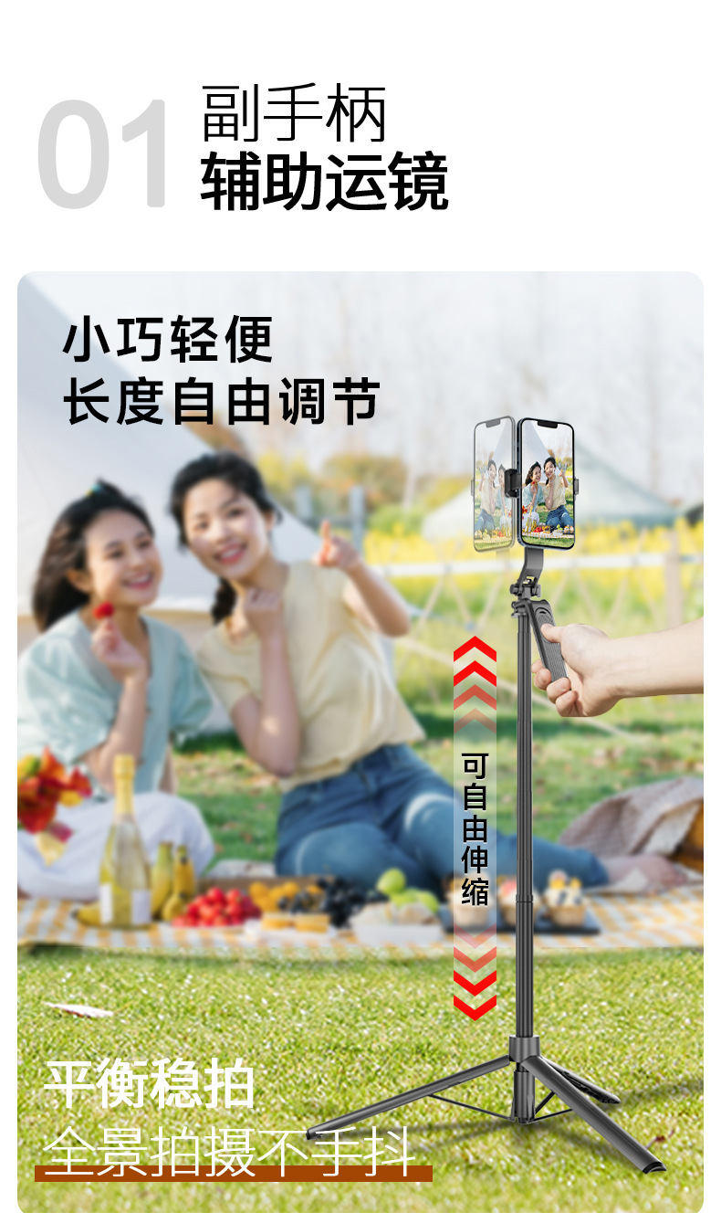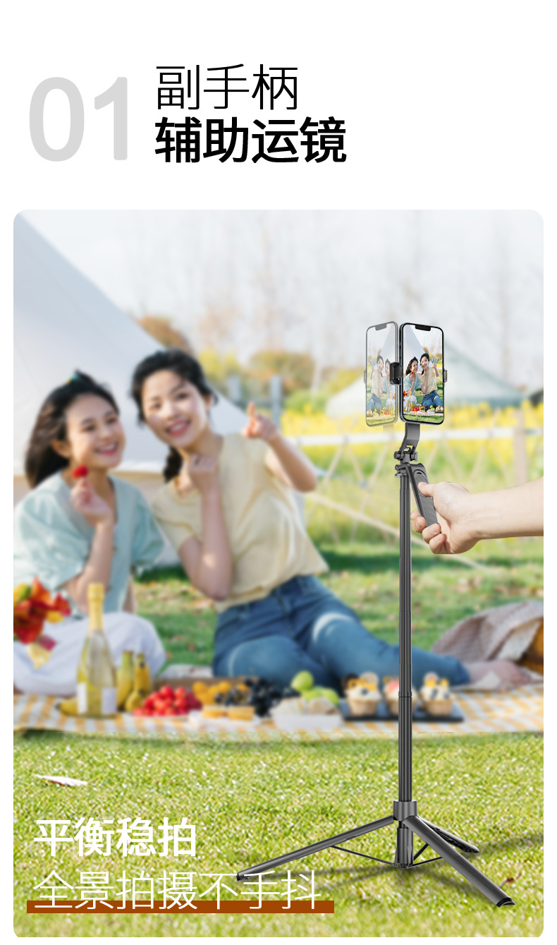 • S18 로커 셀카봉 스테인레스 스틸 이중 헤드라이트