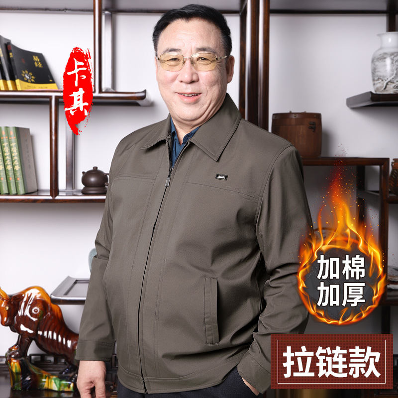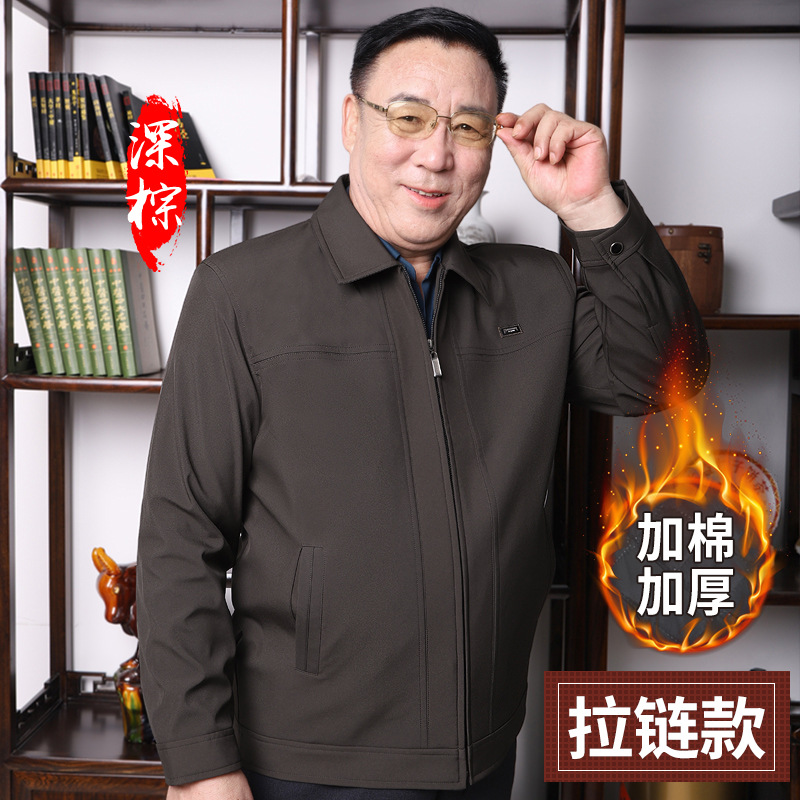 중년 및 노년 아버지용 재킷 70세 할아버지 옷 상의 노인용 가을 겨울 라펠 코트 남성용 보온 두꺼운 재킷스토어 가기