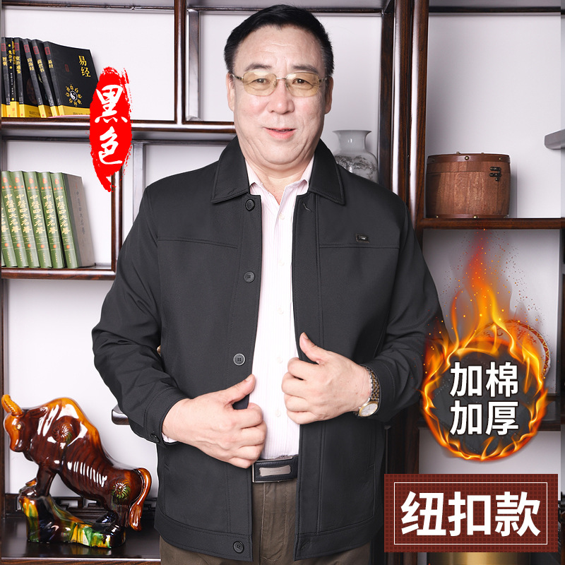중년 및 노년 아버지용 재킷 70세 할아버지 옷 상의 노인용 가을 겨울 라펠 코트 남성용 보온 두꺼운 재킷