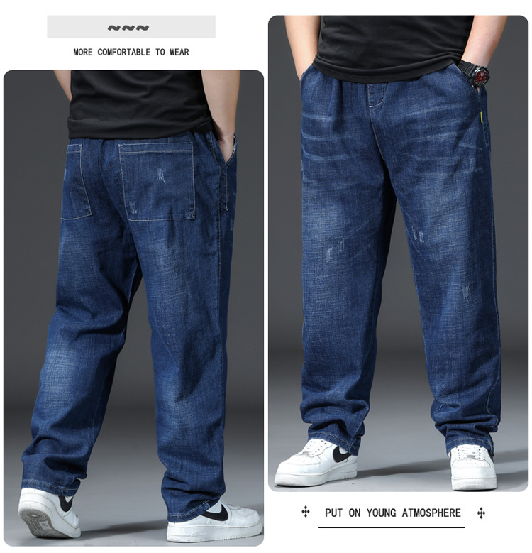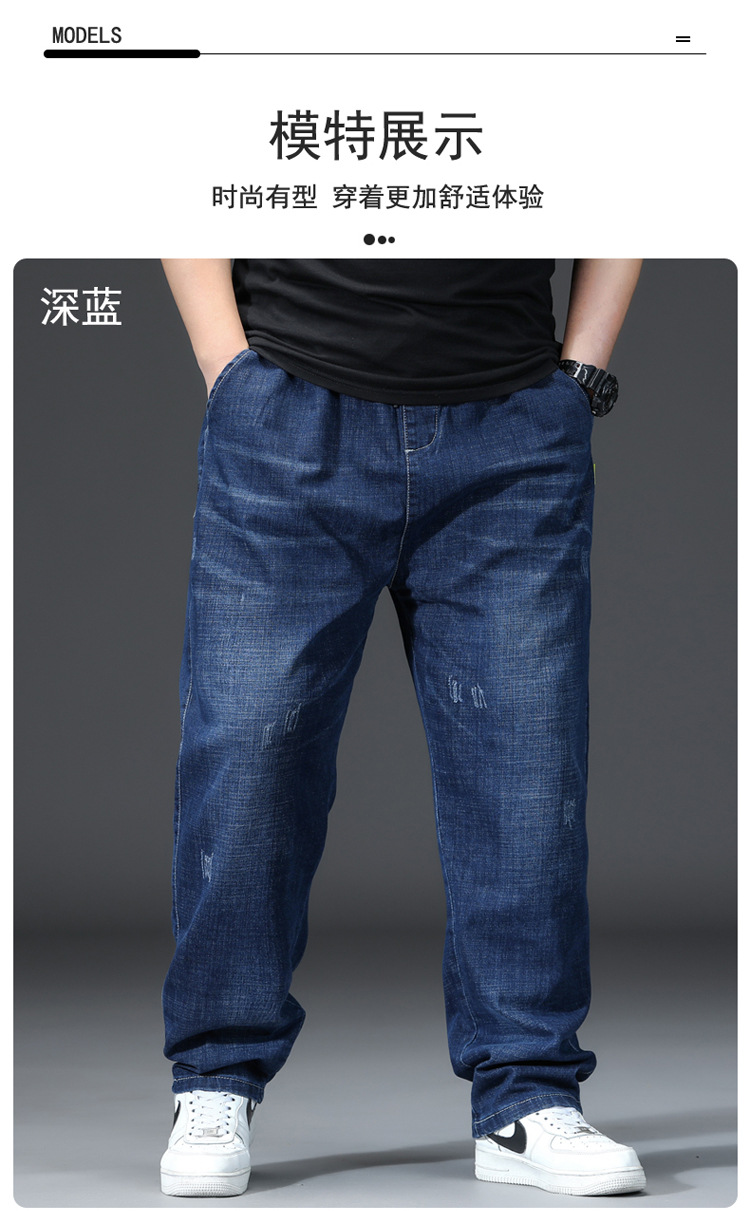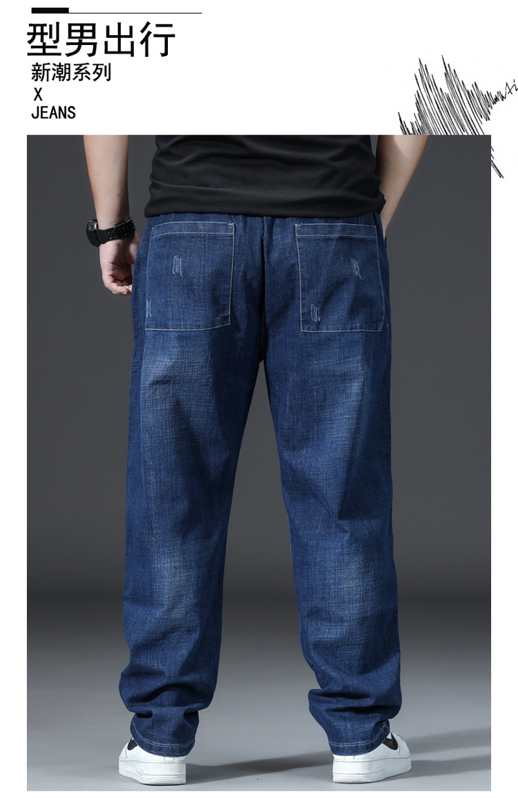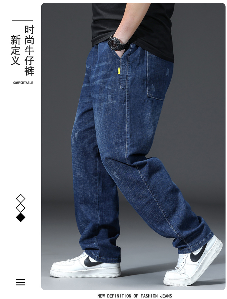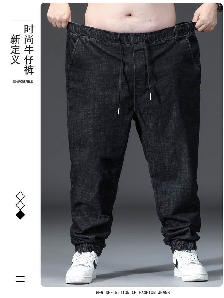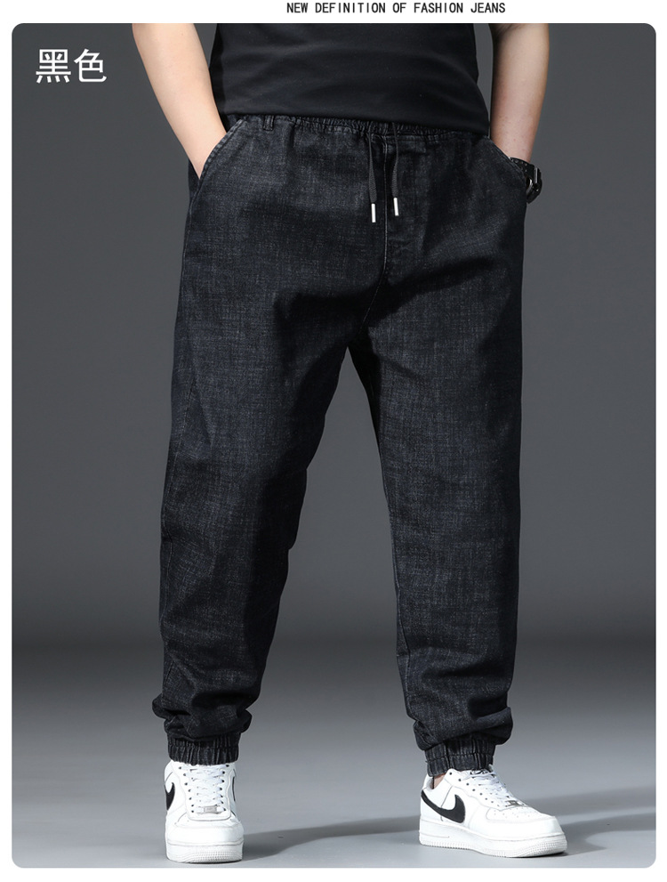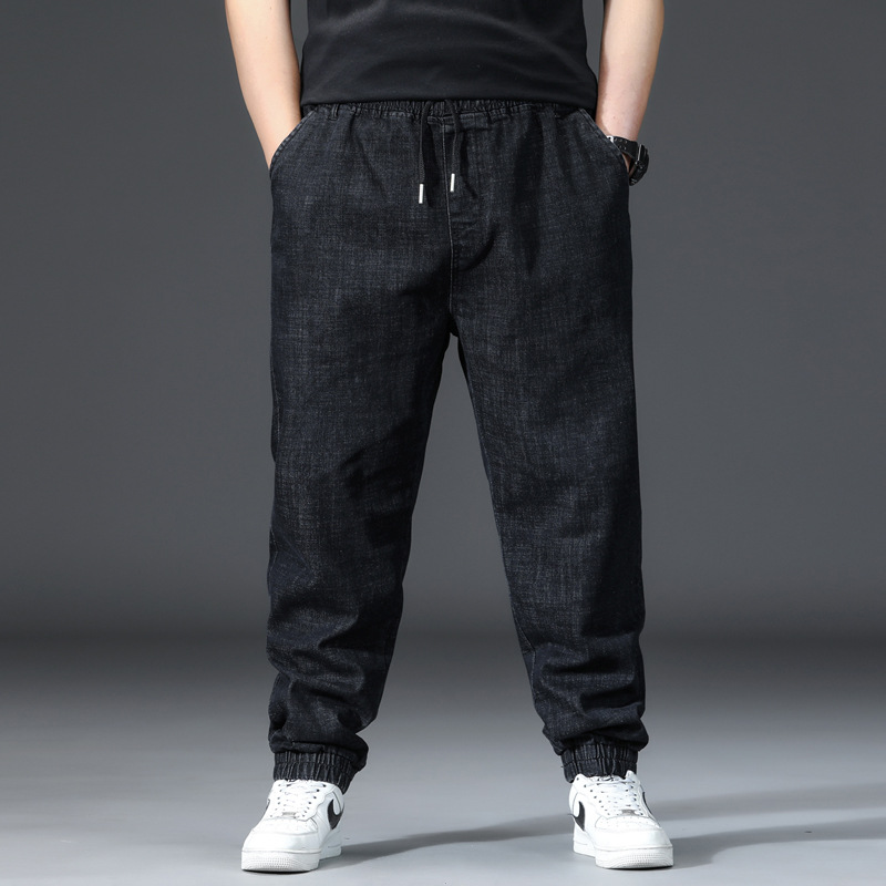 가을과 겨울 청바지 남자의 팔꿈치 느슨한 스트레이트 튜브 뚱뚱한 남자 하렘 바지 초대형 블랙 트렌디스토어 가기