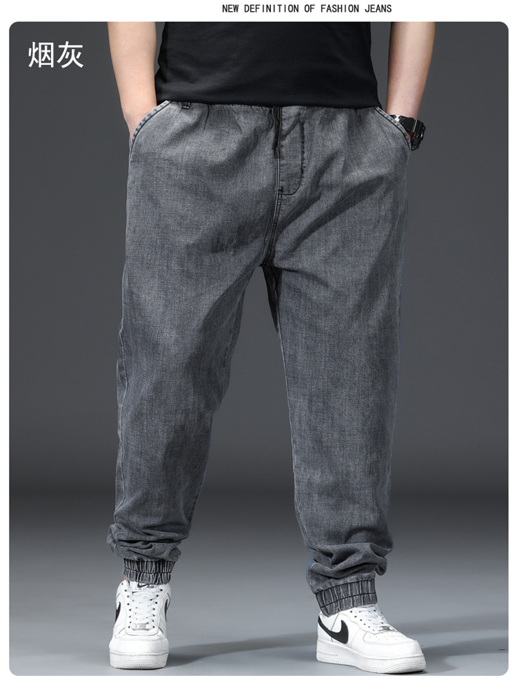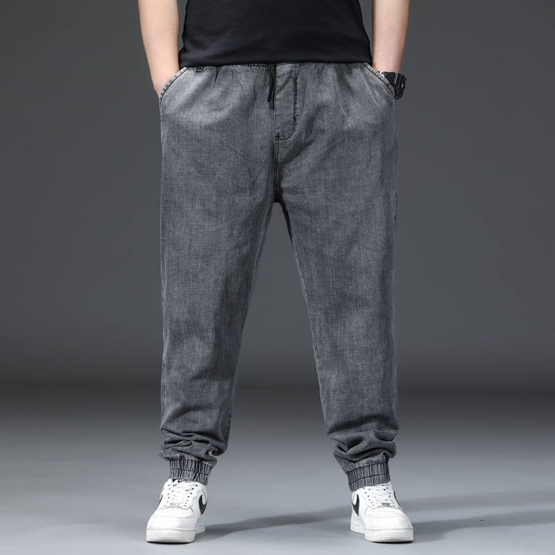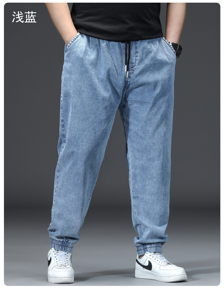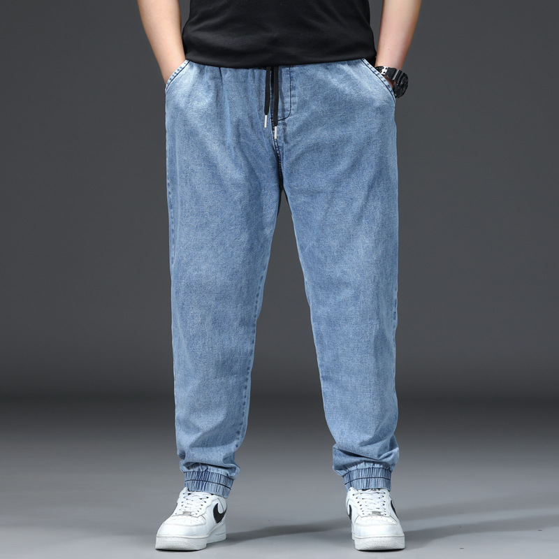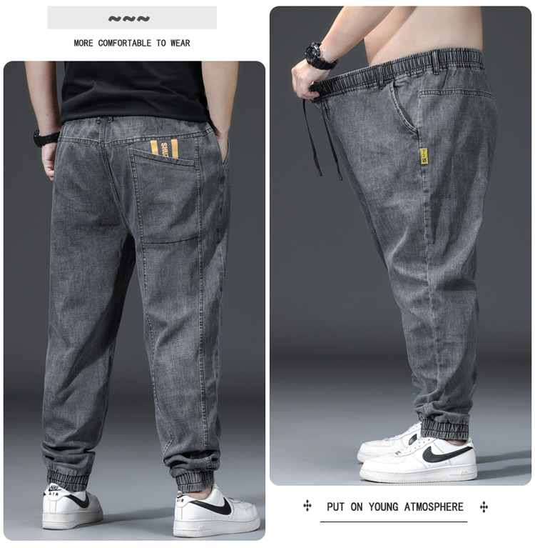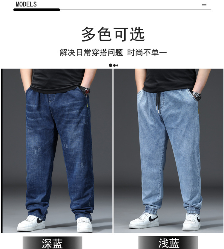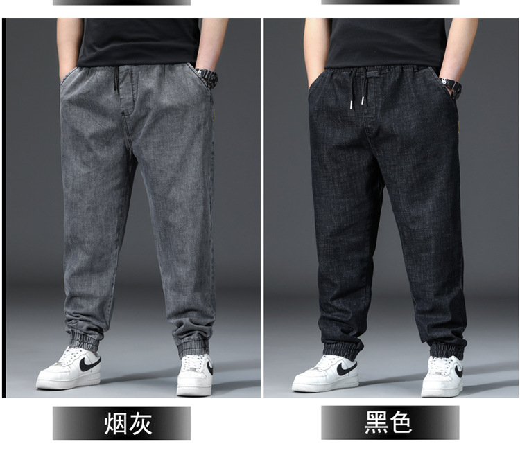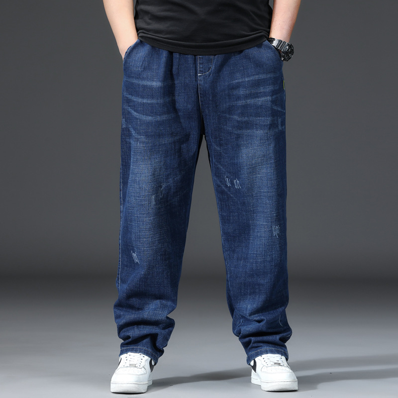 가을과 겨울 청바지 남자의 팔꿈치 느슨한 스트레이트 튜브 뚱뚱한 남자 하렘 바지 초대형 블랙 트렌디스토어 가기