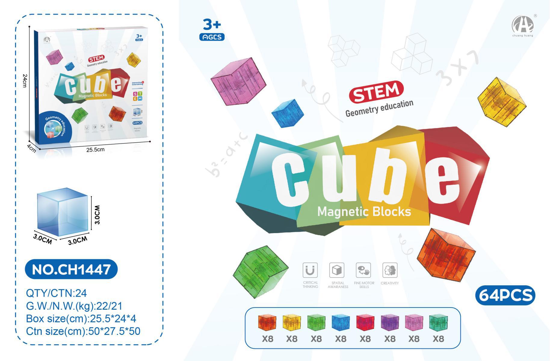 • 3CM 투명 컬러 자석 사각형 빌딩 블록 64PCS