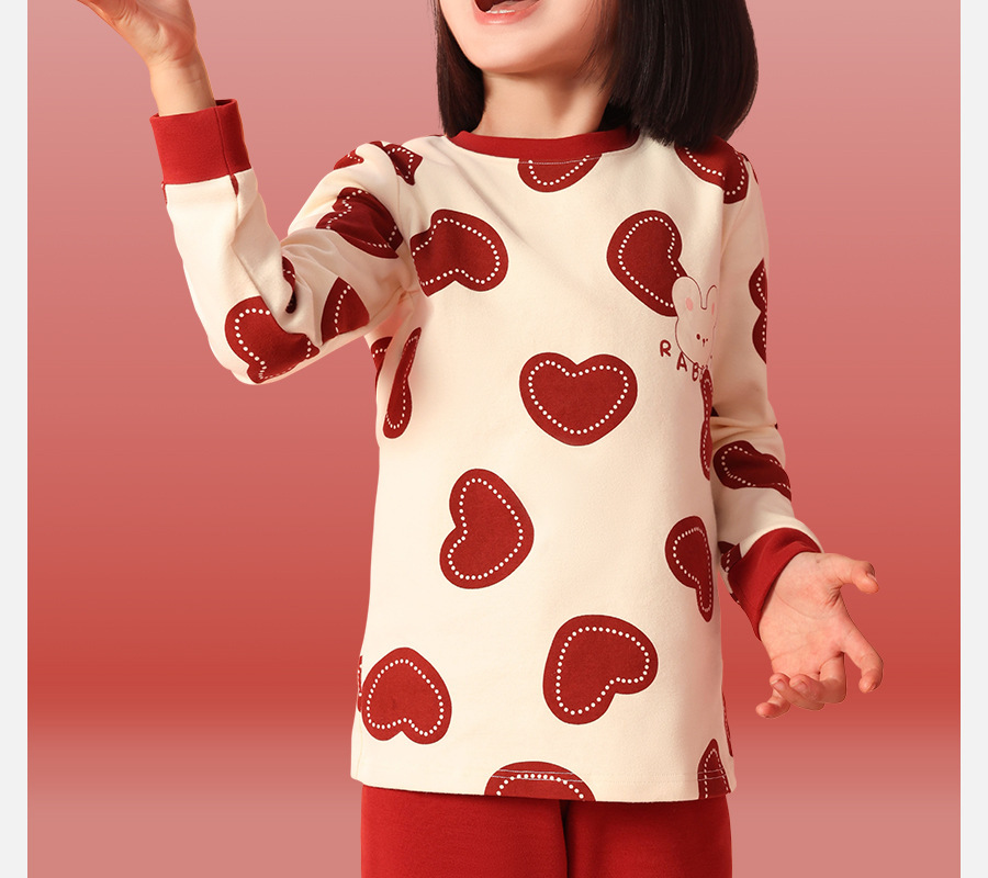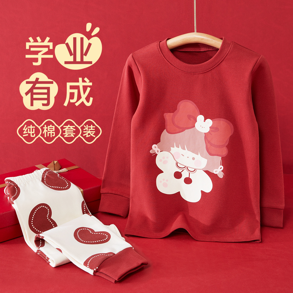 어린이 가을옷 가을바지 콤비네이션 레드 속옷 세트 여자아이의 생년월일 파자마 용의 해 따뜻한 홈웨어스토어 가기