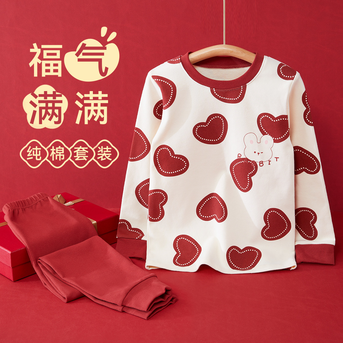어린이 가을옷 가을바지 콤비네이션 레드 속옷 세트 여자아이의 생년월일 파자마 용의 해 따뜻한 홈웨어