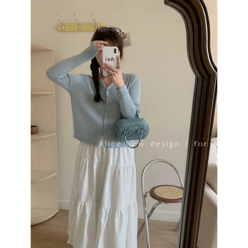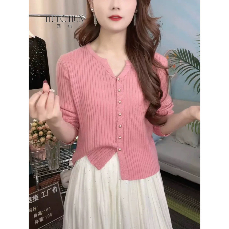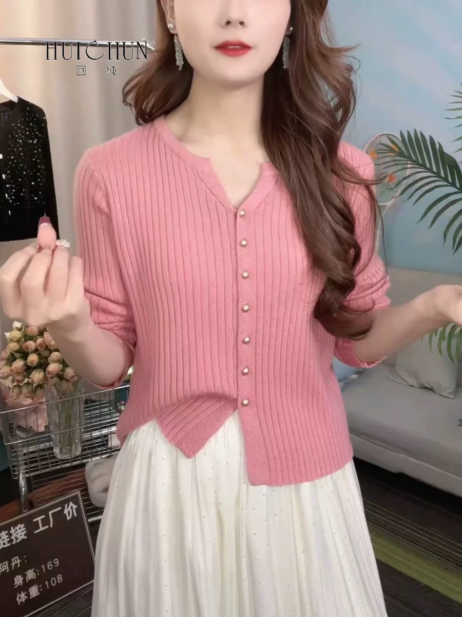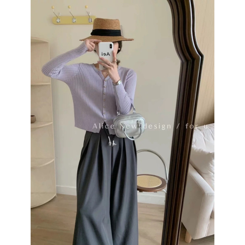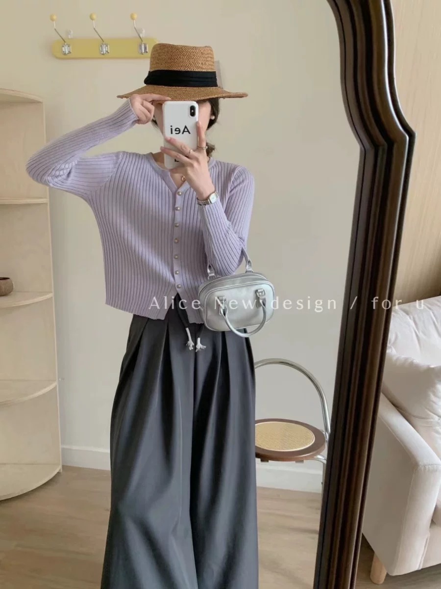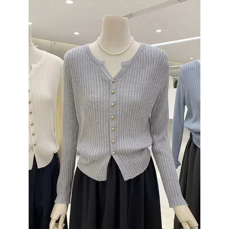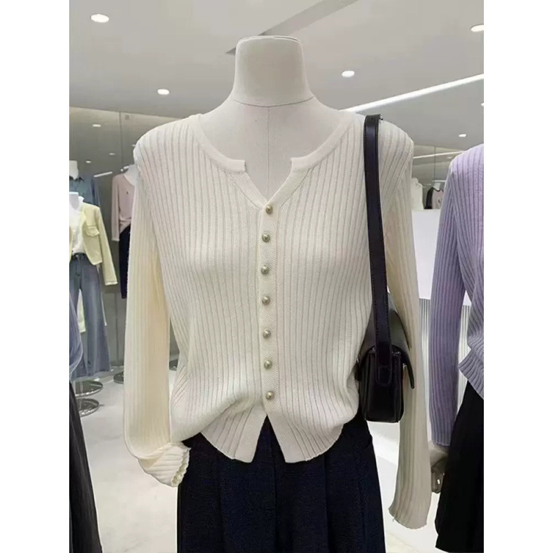 한국 스타일 부드러운 우아한 V 넥 긴팔 니트 카디건 여자 가을 하이 엔드 슬림 핏 슬리밍 캐주얼 올 매치 탑스토어 가기