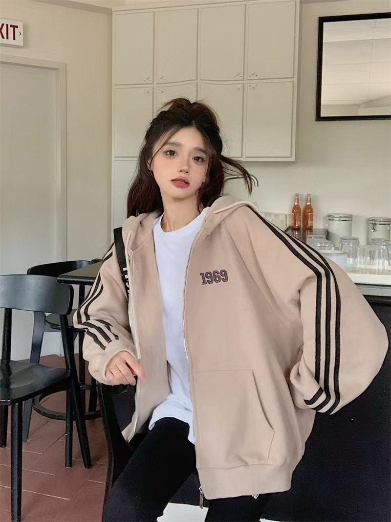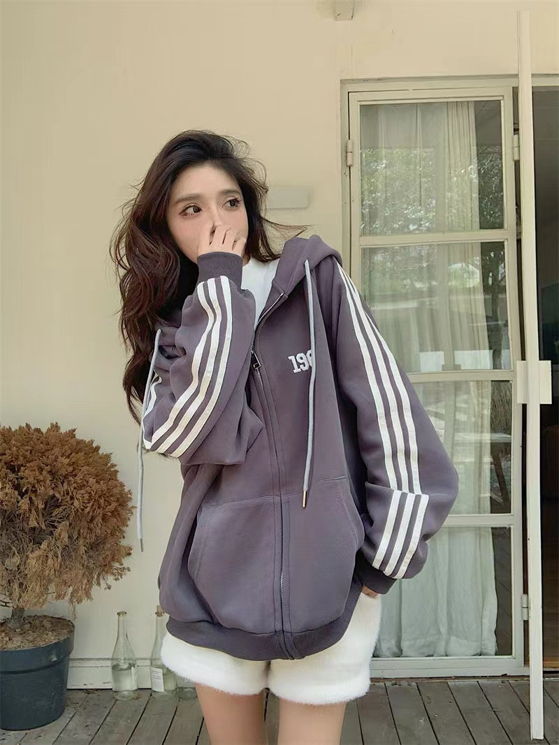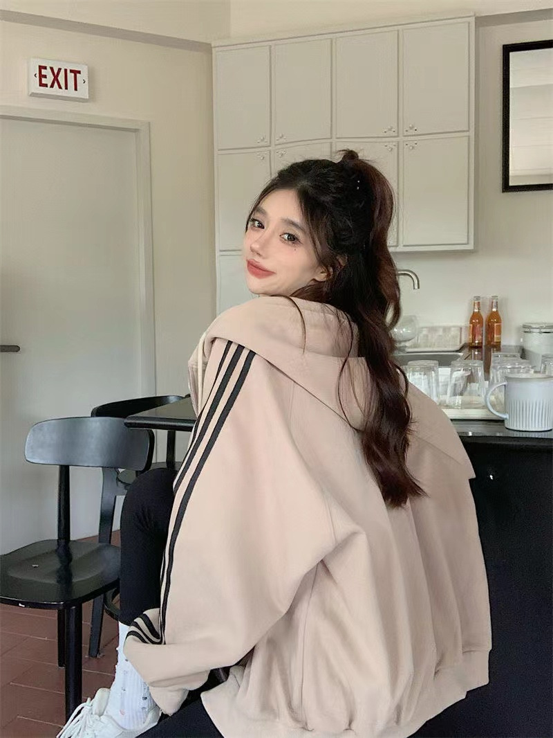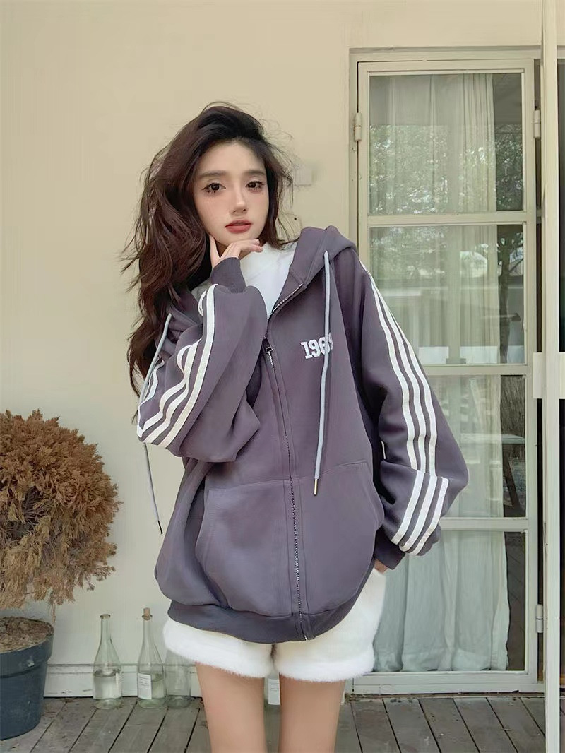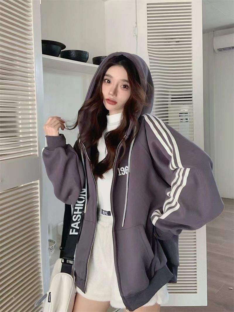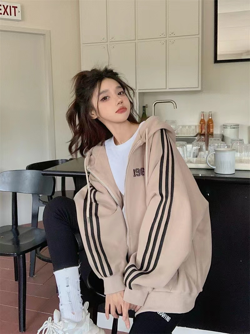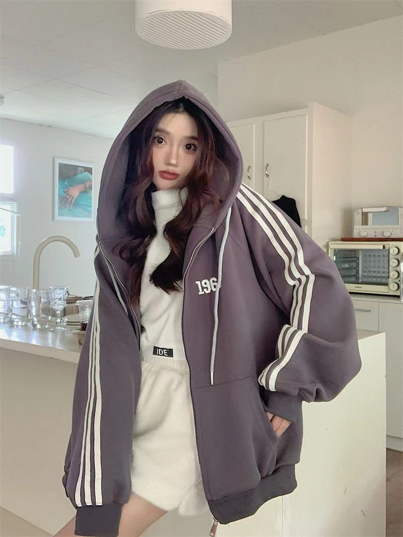 기모 두꺼운 미국 야구 세트 대비 컬러 스웨터 레트로 느슨한 BF 재킷 코트 여자 작은 카디건 국경스토어 가기