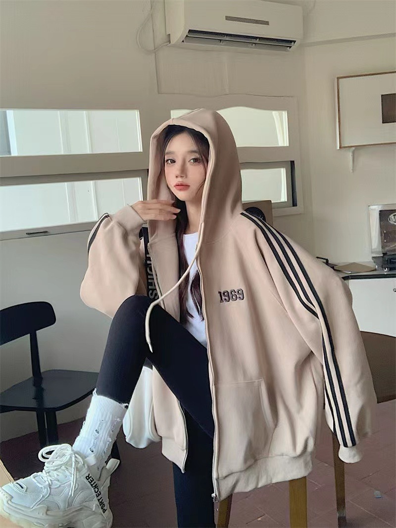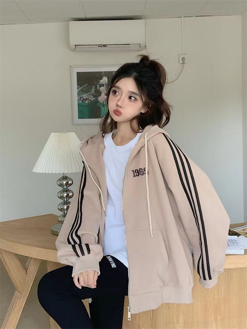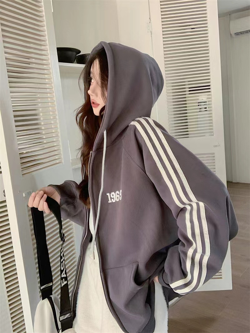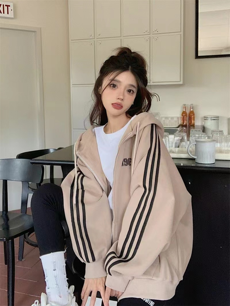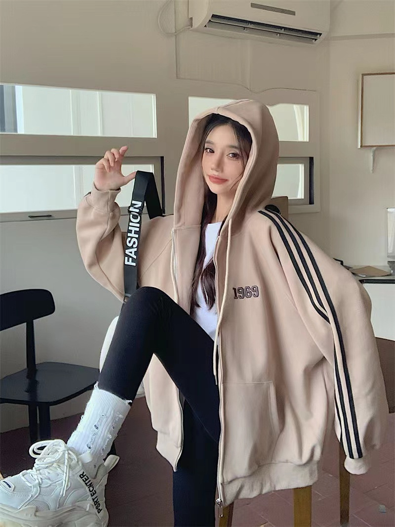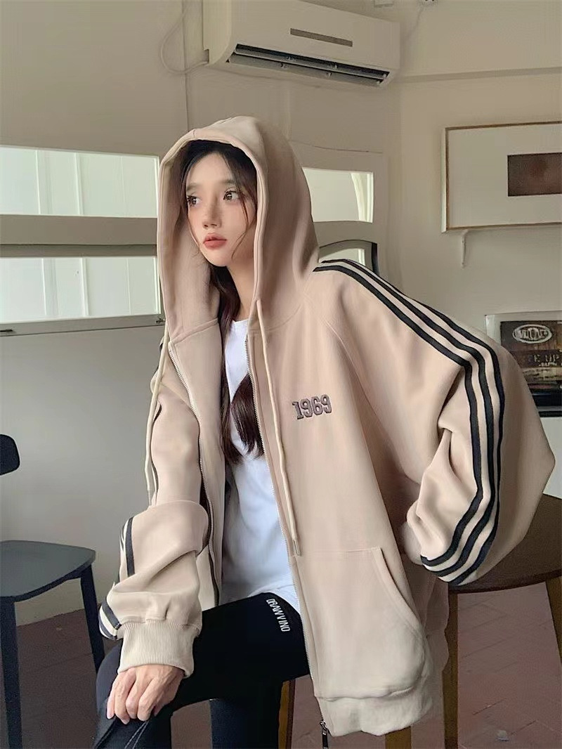 기모 두꺼운 미국 야구 세트 대비 컬러 스웨터 레트로 느슨한 BF 재킷 코트 여자 작은 카디건 국경스토어 가기