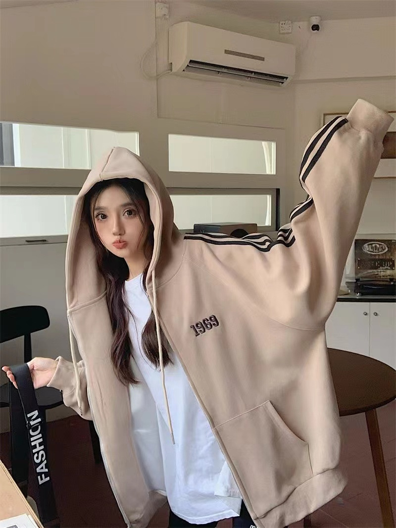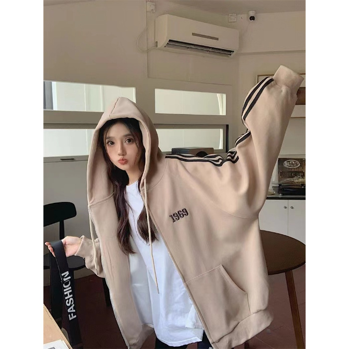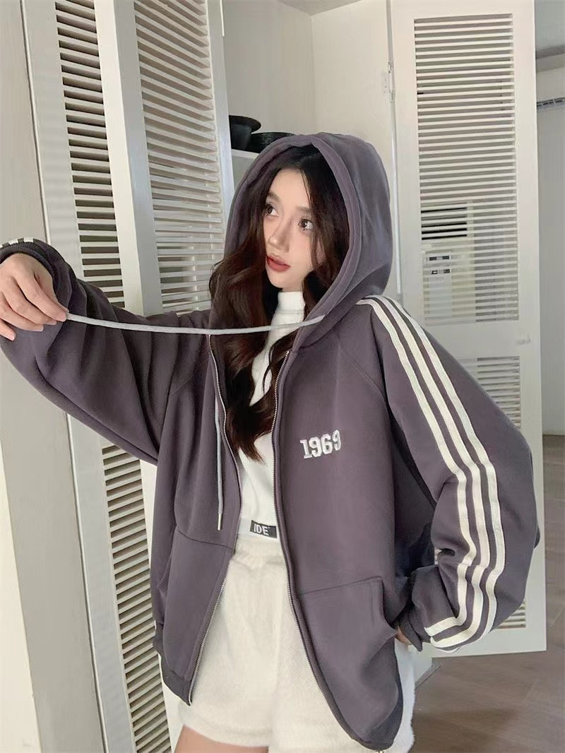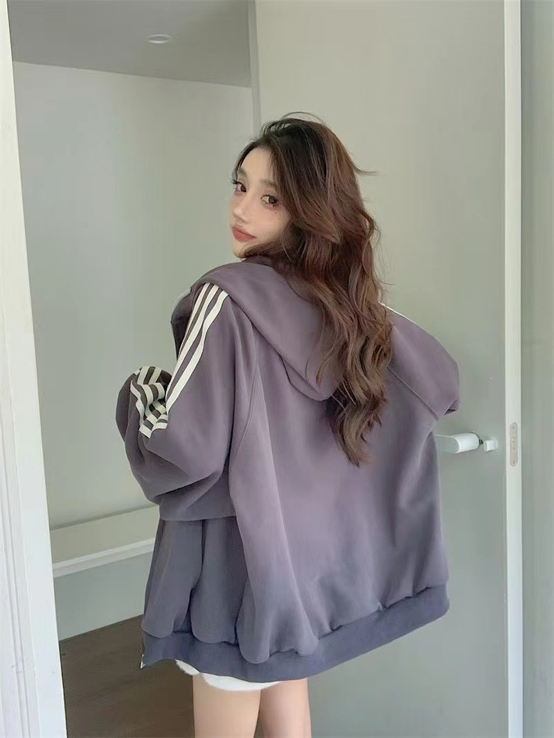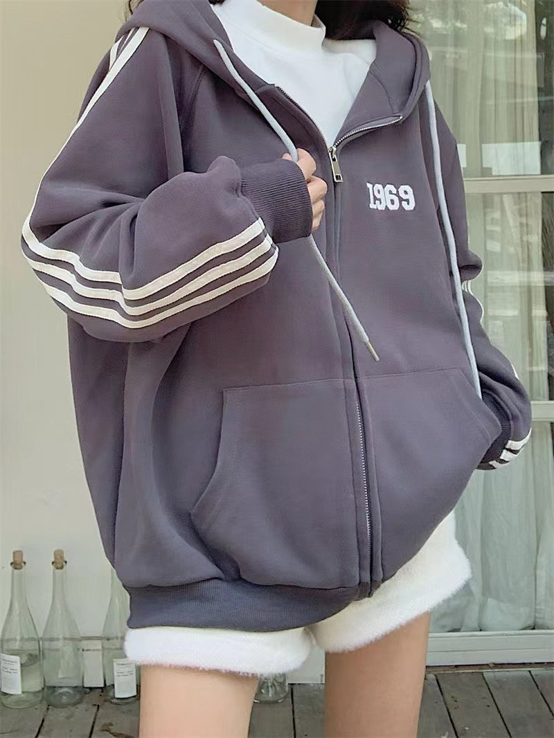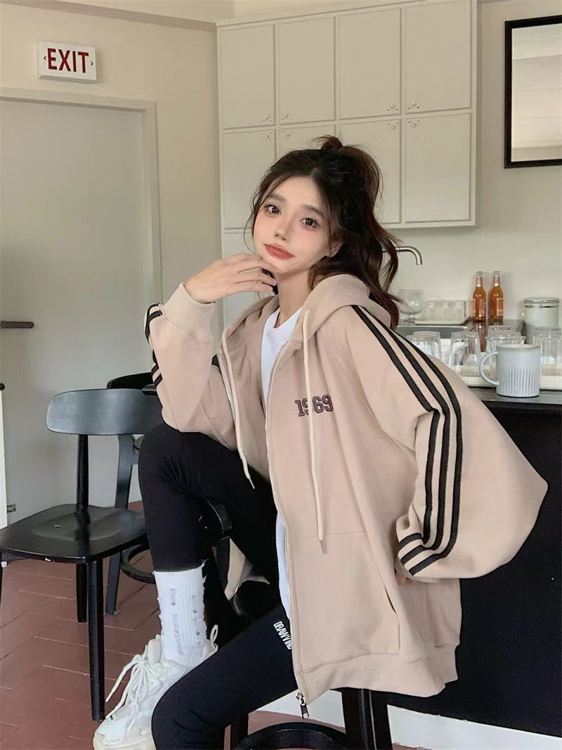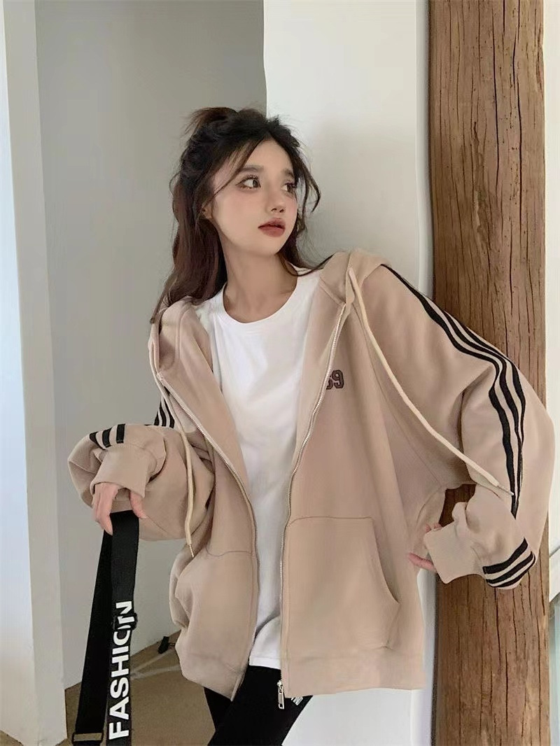 기모 두꺼운 미국 야구 세트 대비 컬러 스웨터 레트로 느슨한 BF 재킷 코트 여자 작은 카디건 국경스토어 가기