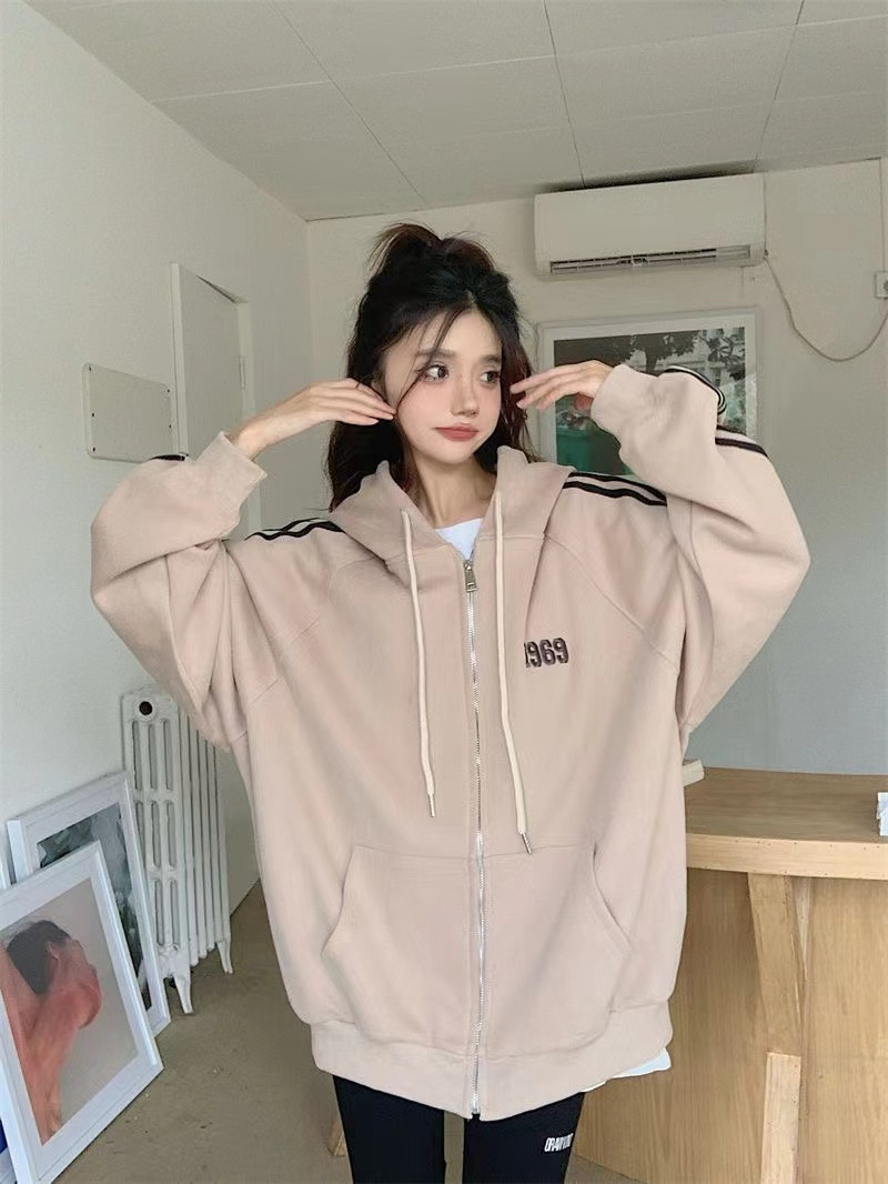 기모 두꺼운 미국 야구 세트 대비 컬러 스웨터 레트로 느슨한 BF 재킷 코트 여자 작은 카디건 국경