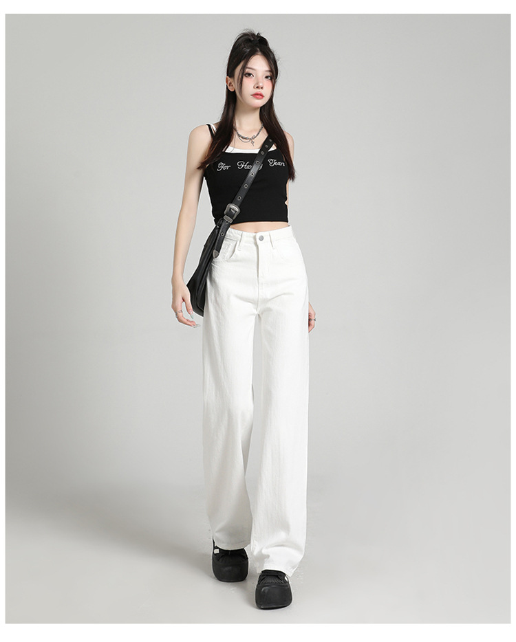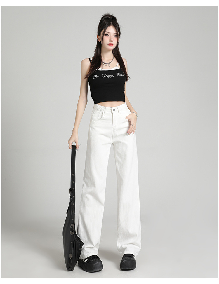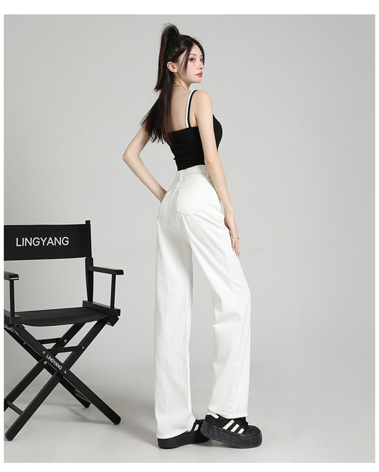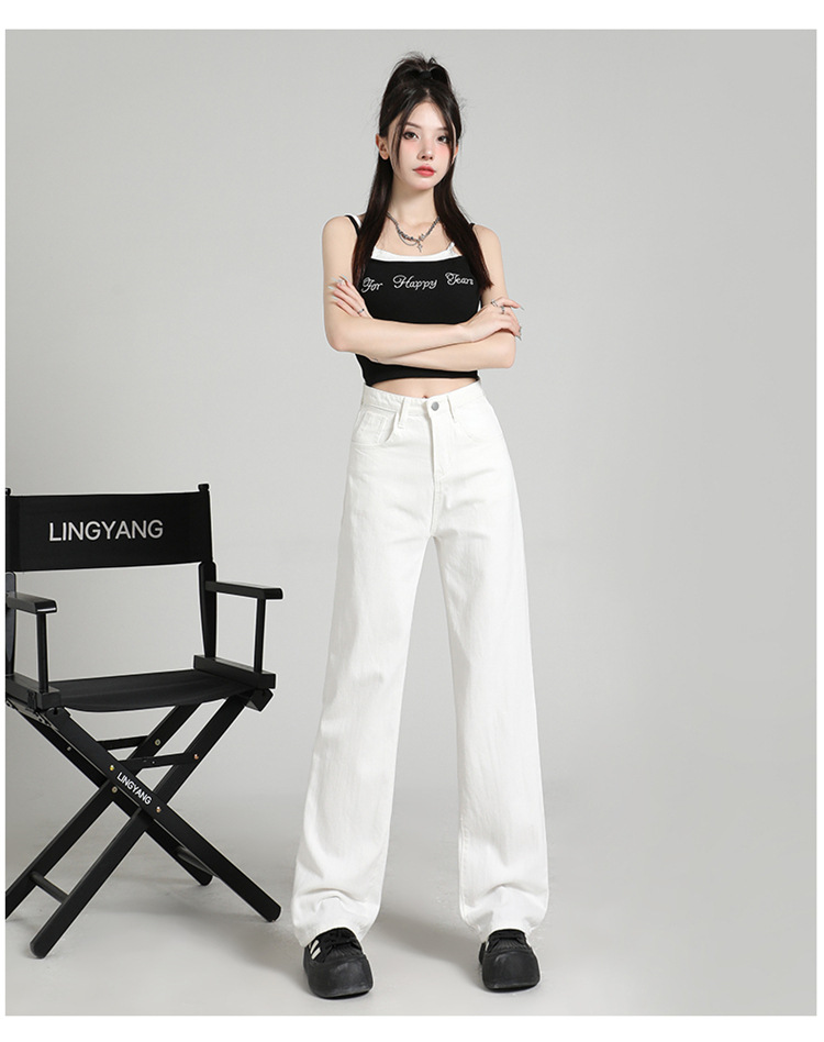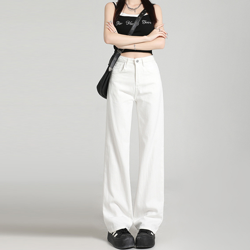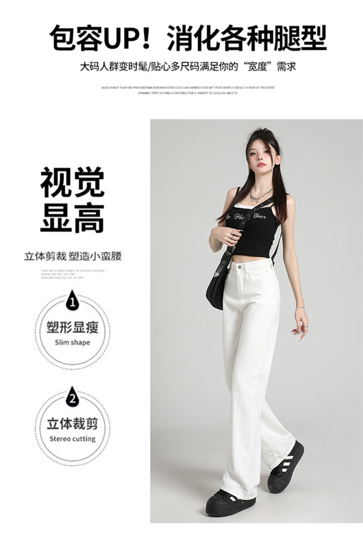 여성용 슬림 스트레이트 화이트 데님 팬츠 2025 봄 여름 하이웨이스트 키 작은 사람들을 위한 바지, 다리를 길어보이게 해주는 캐주얼하고 다용도로 활용 가능한 팬츠