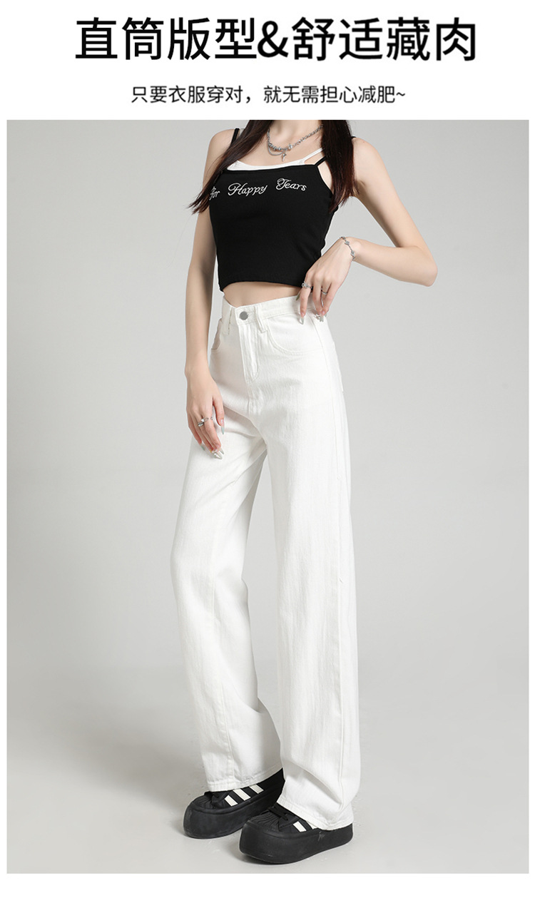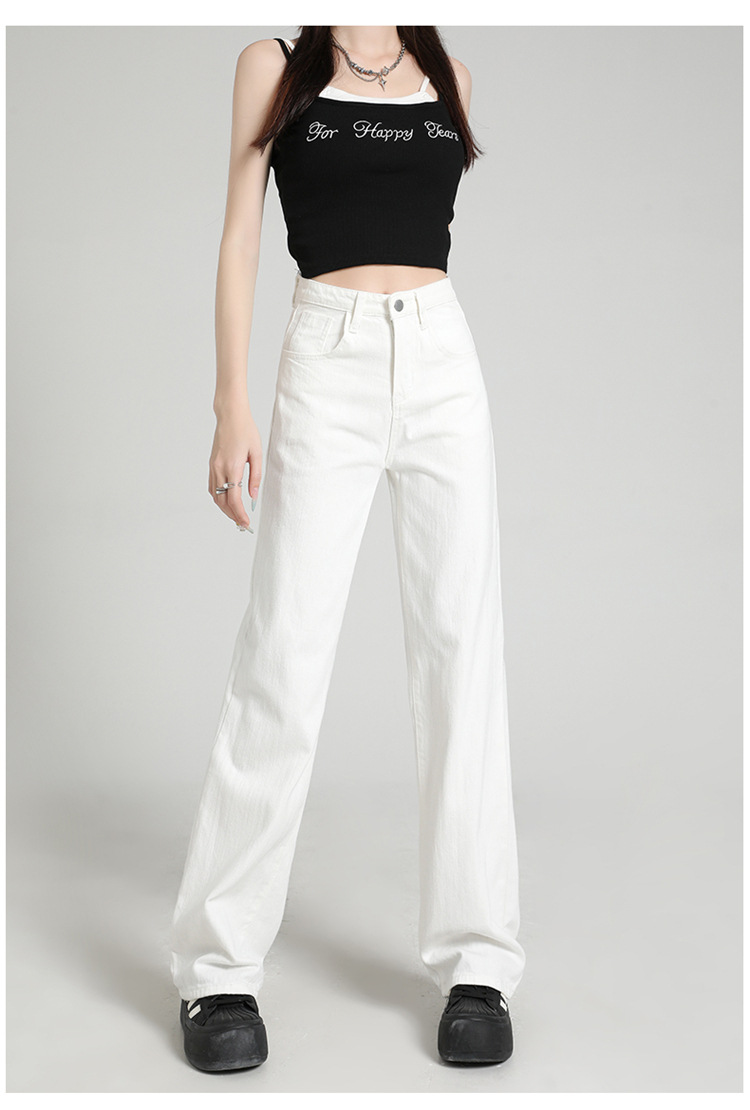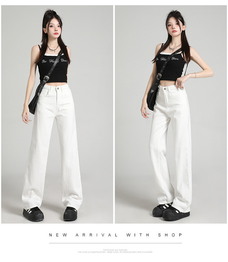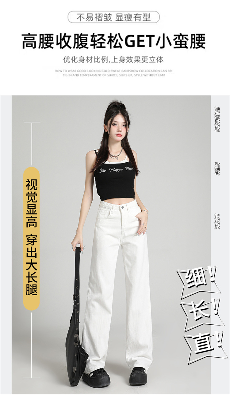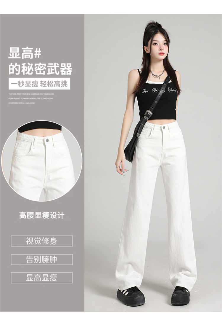 여성용 슬림 스트레이트 화이트 데님 팬츠 2025 봄 여름 하이웨이스트 키 작은 사람들을 위한 바지, 다리를 길어보이게 해주는 캐주얼하고 다용도로 활용 가능한 팬츠스토어 가기