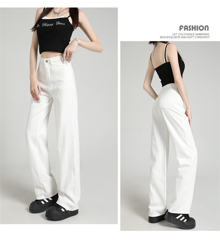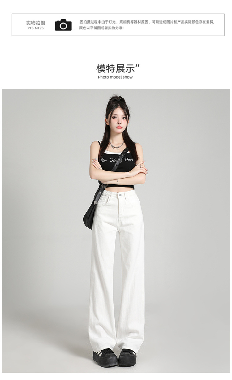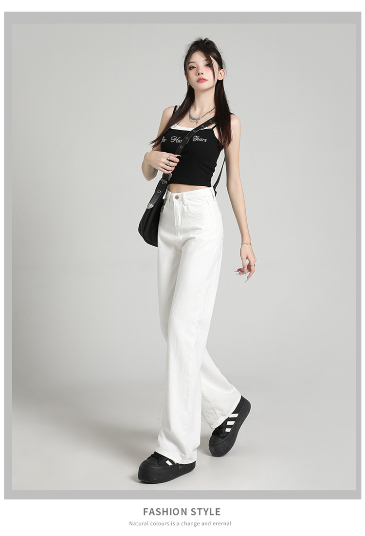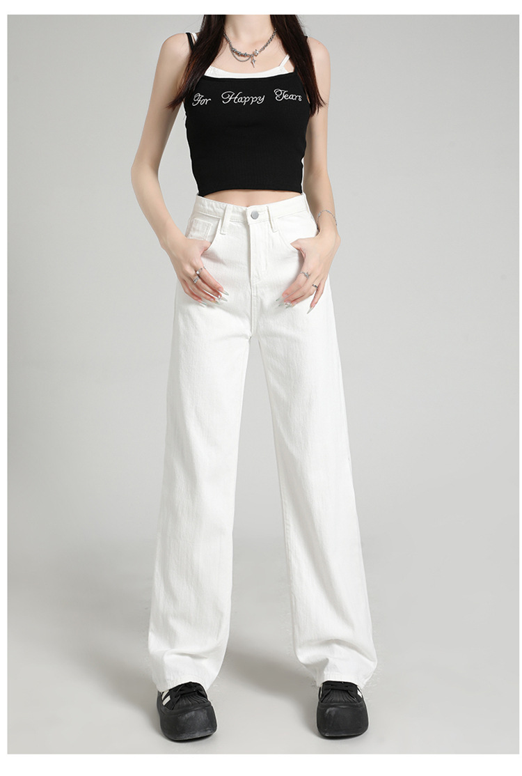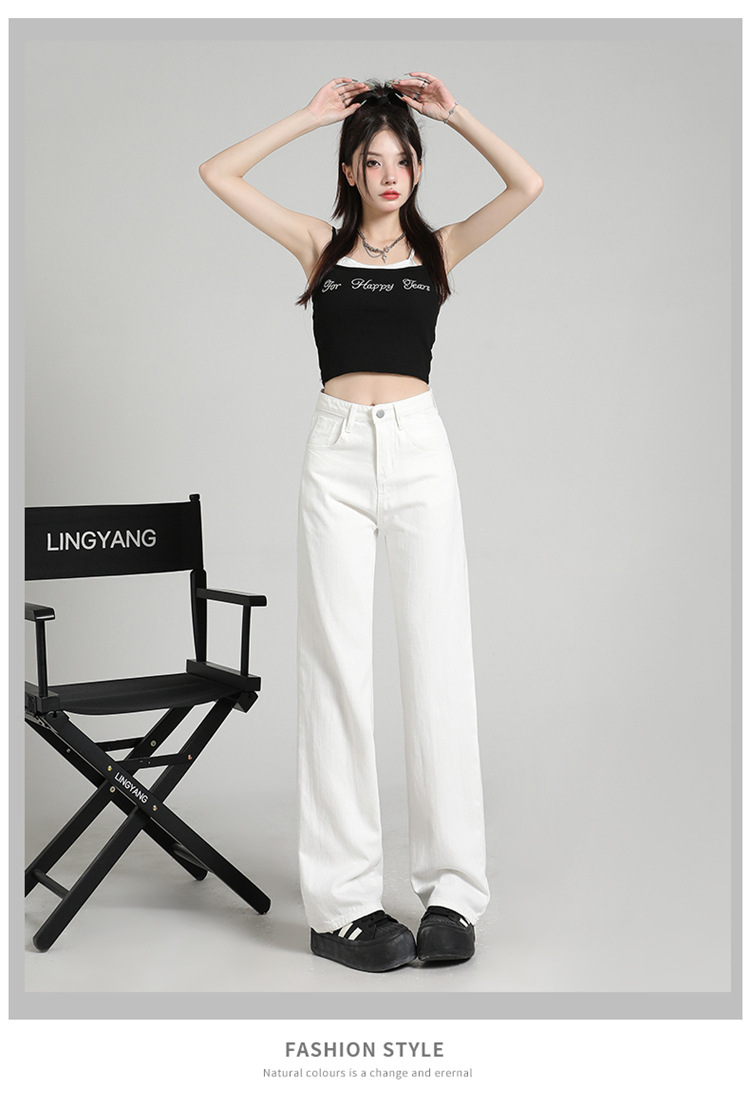 여성용 슬림 스트레이트 화이트 데님 팬츠 2025 봄 여름 하이웨이스트 키 작은 사람들을 위한 바지, 다리를 길어보이게 해주는 캐주얼하고 다용도로 활용 가능한 팬츠스토어 가기
