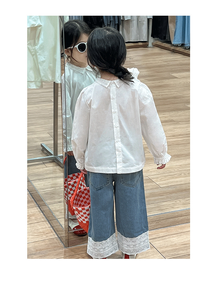 소녀의 봄과 가을 세트 서양식 틈새 우아한 레이스 칼라 베이스 셔츠 유치원 서양식 인형 셔츠스토어 가기