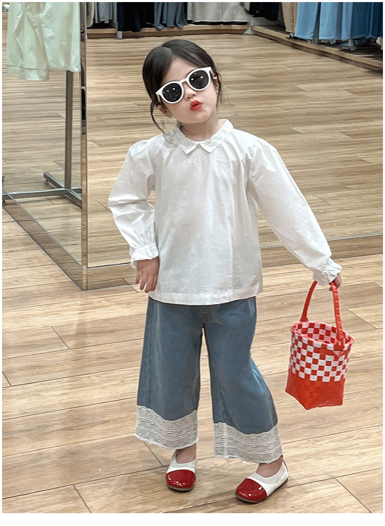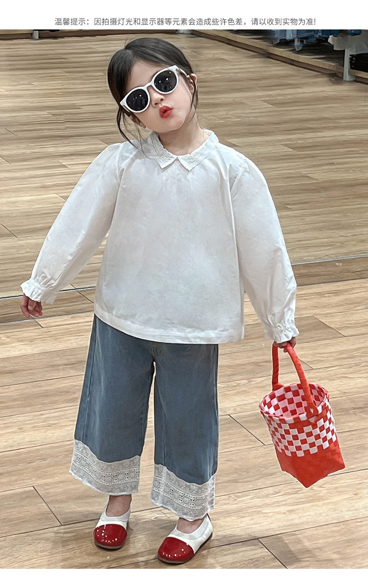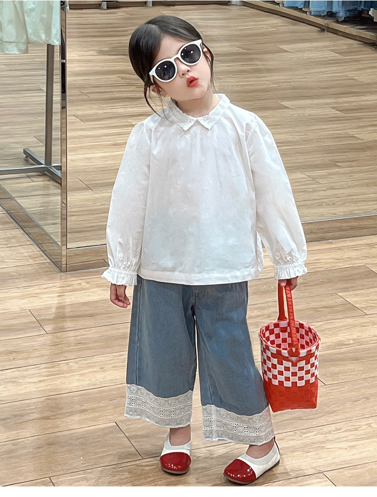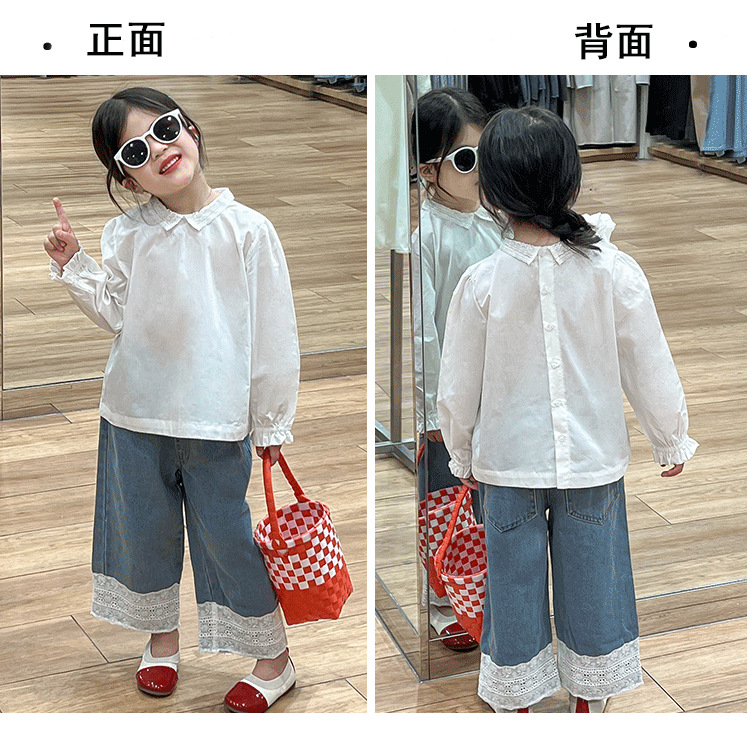 소녀의 봄과 가을 세트 서양식 틈새 우아한 레이스 칼라 베이스 셔츠 유치원 서양식 인형 셔츠