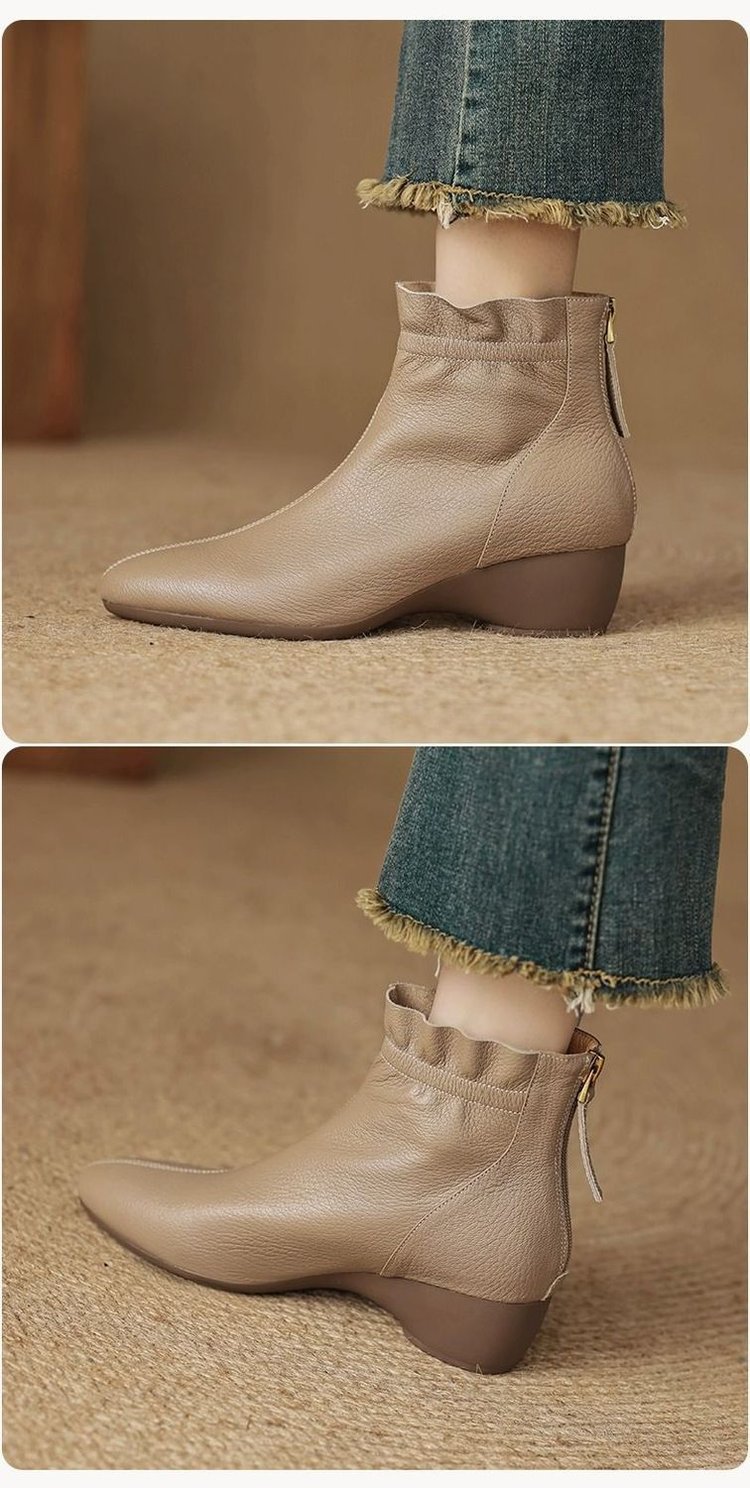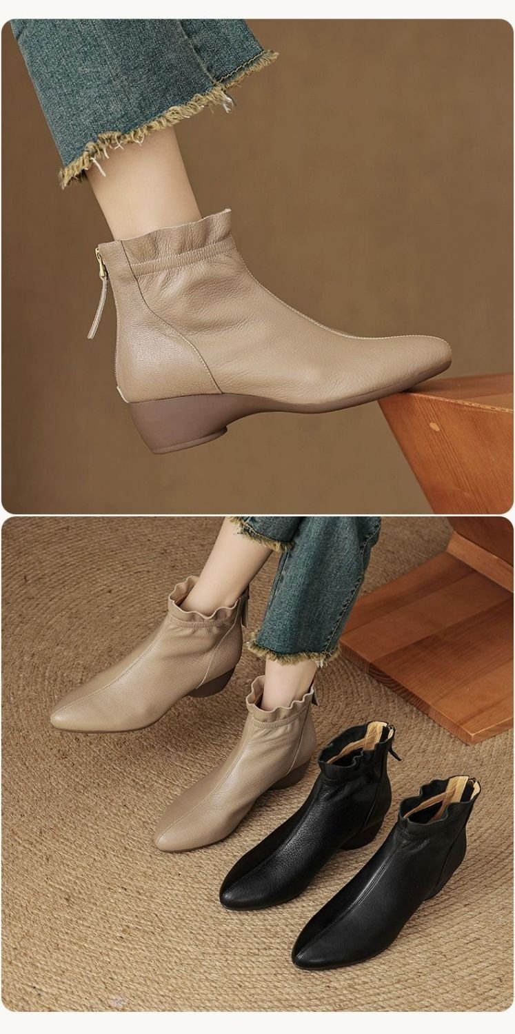 주름진 뾰족한 청키 힐 봄과 가을 하이힐 부츠 패션 플러스 사이즈 2024 년 새 겨울 신발 마틴 부츠 가죽 부츠