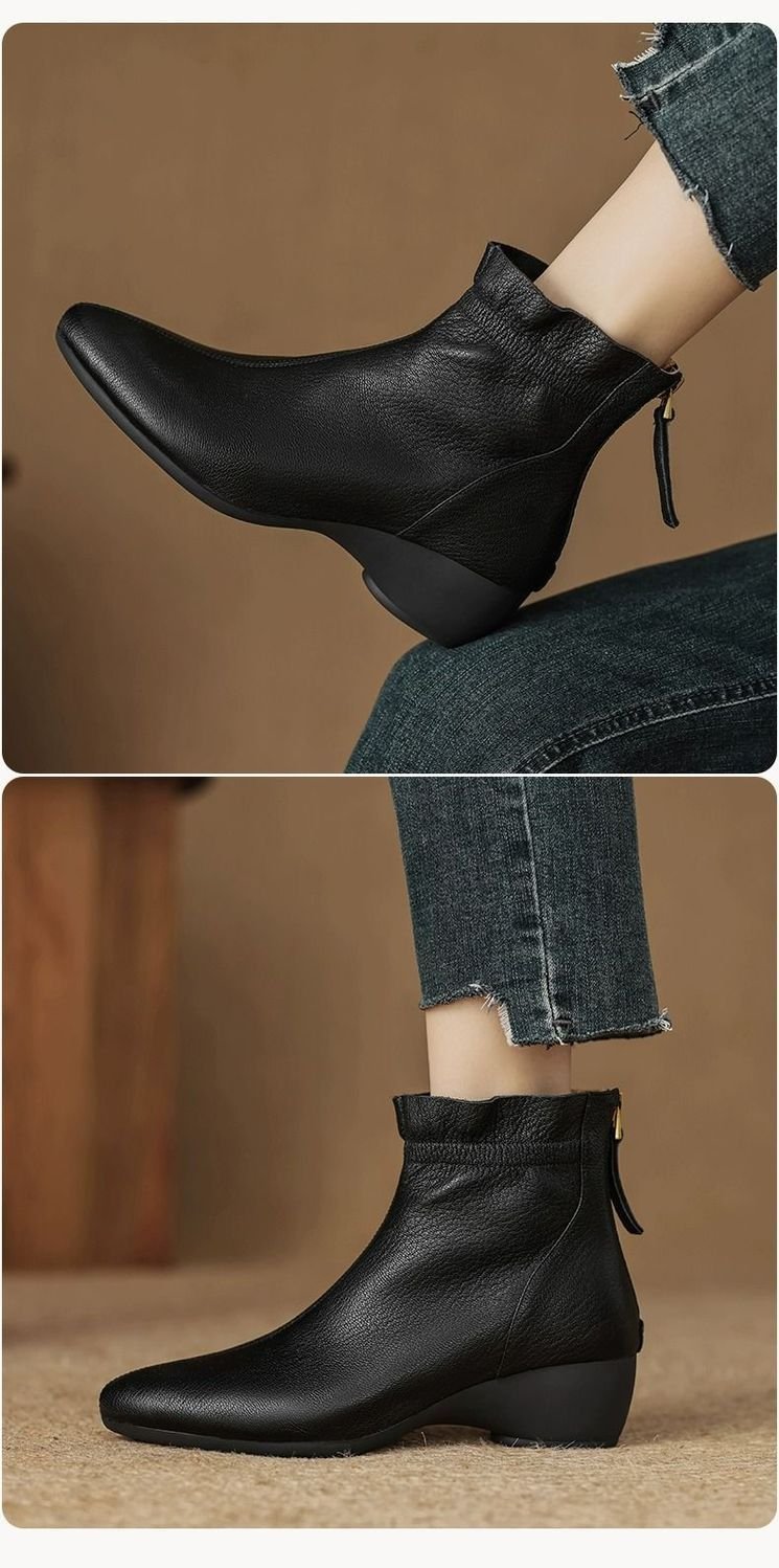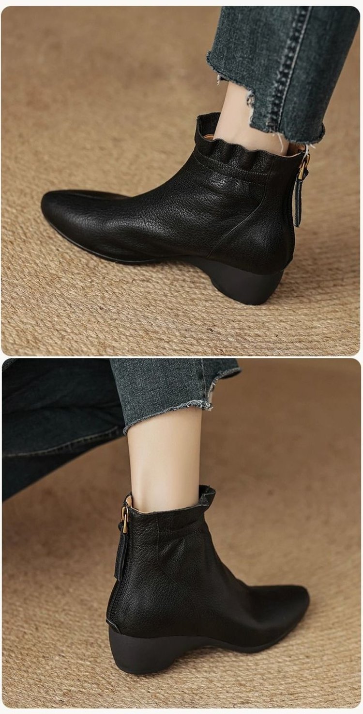 주름진 뾰족한 청키 힐 봄과 가을 하이힐 부츠 패션 플러스 사이즈 2024 년 새 겨울 신발 마틴 부츠 가죽 부츠스토어 가기