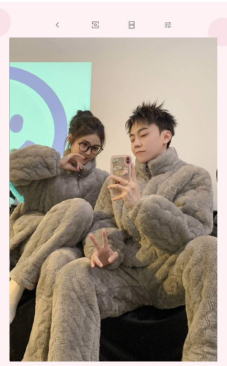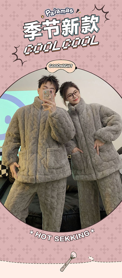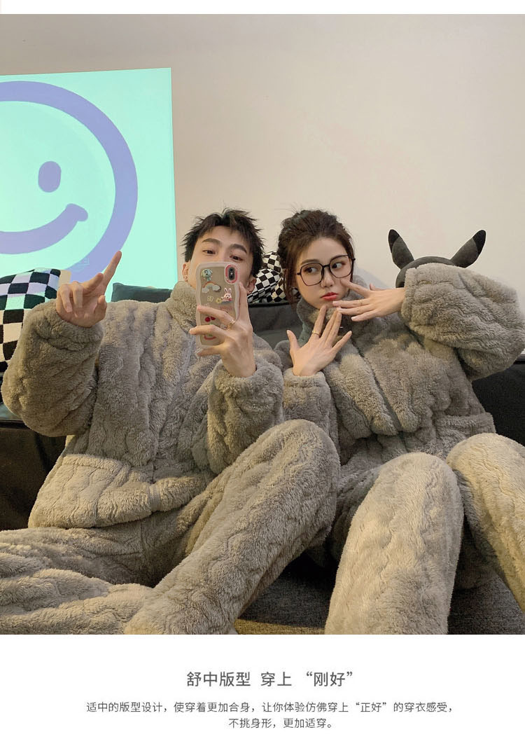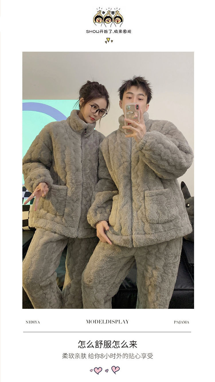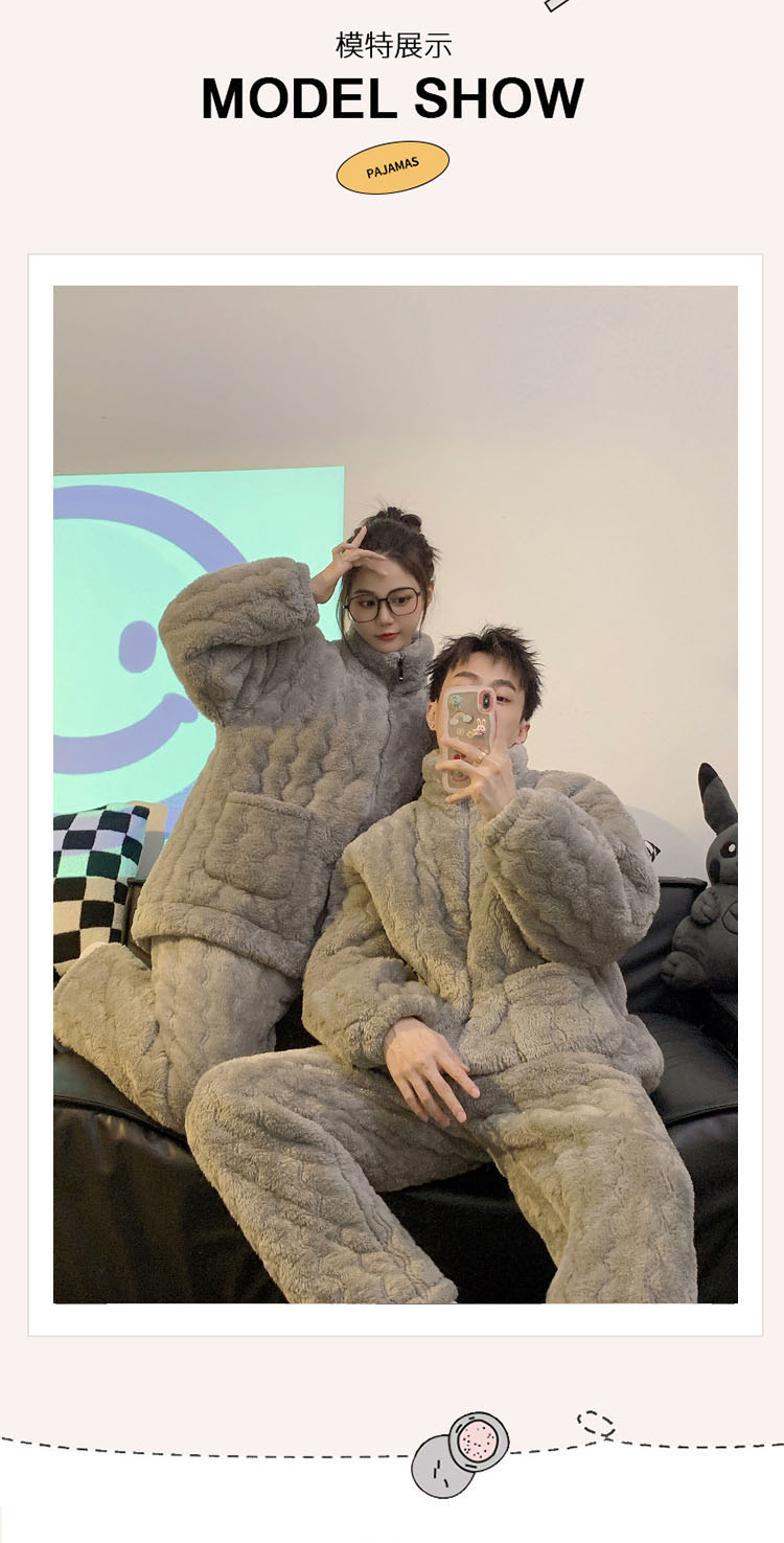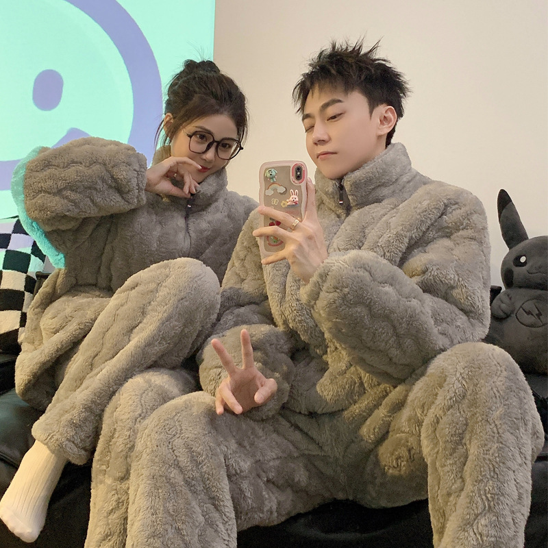 3 층 퀼트 산호 양털 커플 잠옷 가을과 겨울 여성 두꺼운 양털 세트 남자 홈 옷스토어 가기