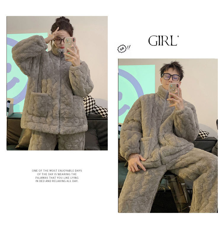 3 층 퀼트 산호 양털 커플 잠옷 가을과 겨울 여성 두꺼운 양털 세트 남자 홈 옷