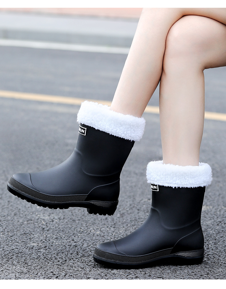 한국식 일본식 패션 장화 여성용 단색 간단한 짧은 장화 방수 미끄럼 방지 외부 착용 주방 물 신발스토어 가기
