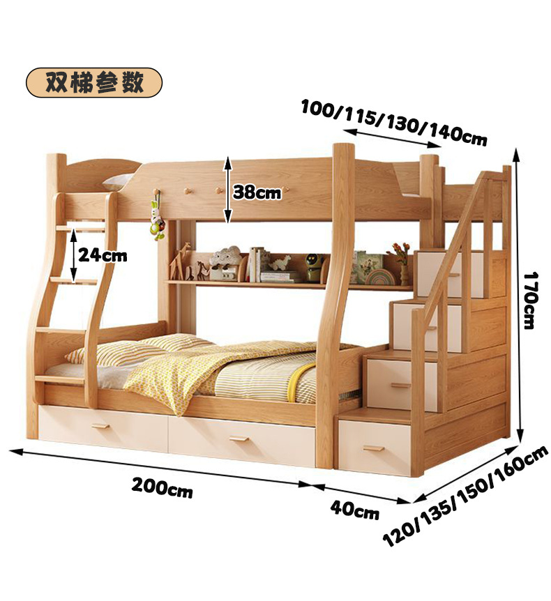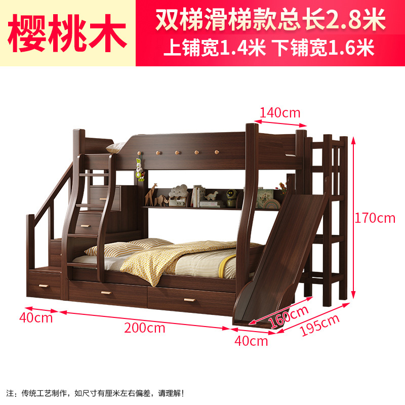 • 이중 사다리 슬라이드 모델 - 상부 침대 너비 1.4m - 하부 침대 너비 1.6m