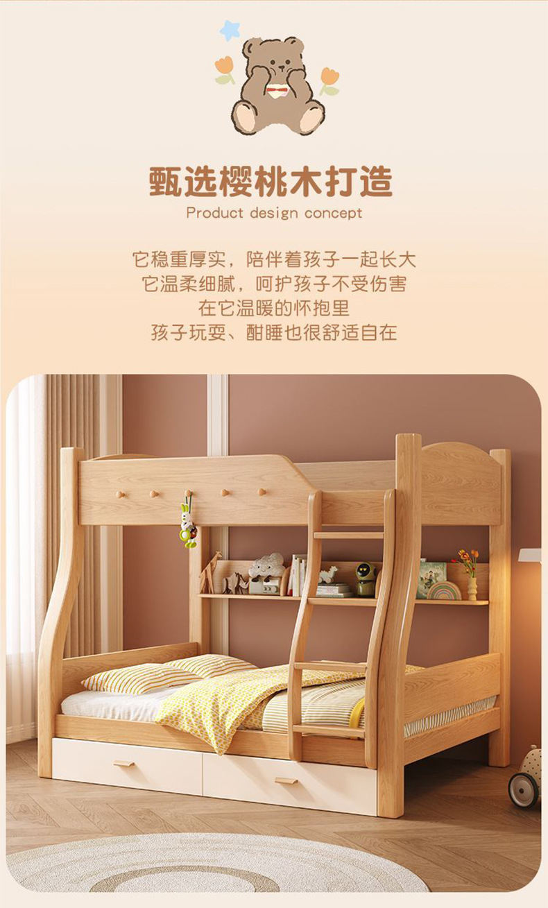 단단한 나무 이층 침대 체리 침대 어린이 침대 높고 낮은 이층 침대 성인 이층 침대 나무 침대스토어 가기