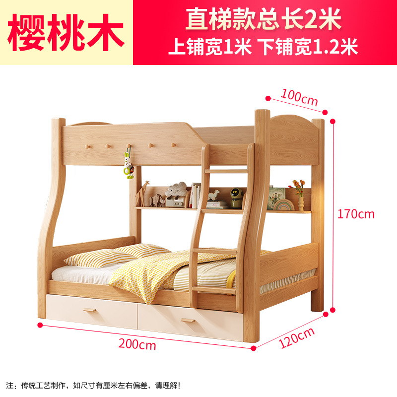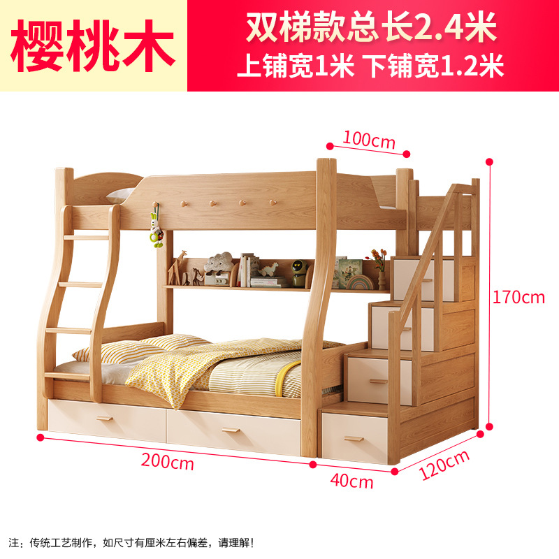 단단한 나무 이층 침대 체리 침대 어린이 침대 높고 낮은 이층 침대 성인 이층 침대 나무 침대