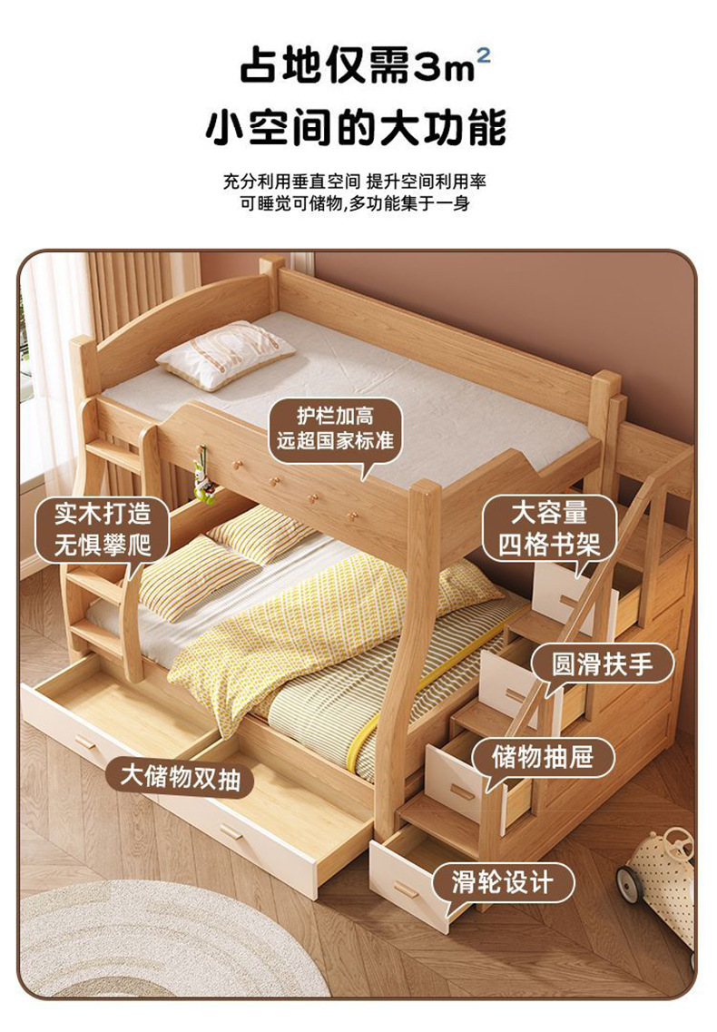 • 이중 사다리 슬라이드 모델 - 상부 침대 너비 1.0m - 하부 침대 너비 1.2m